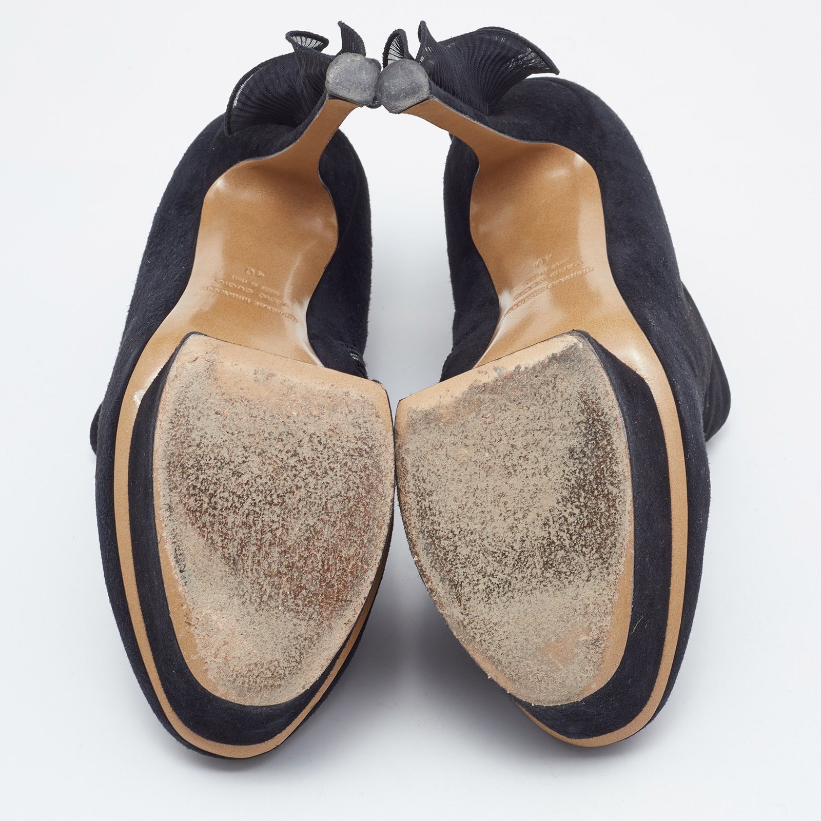 Nicholas Kirkwood Black Suede Ruffle Trimmed Platform Pumps Size 40 - Image 8