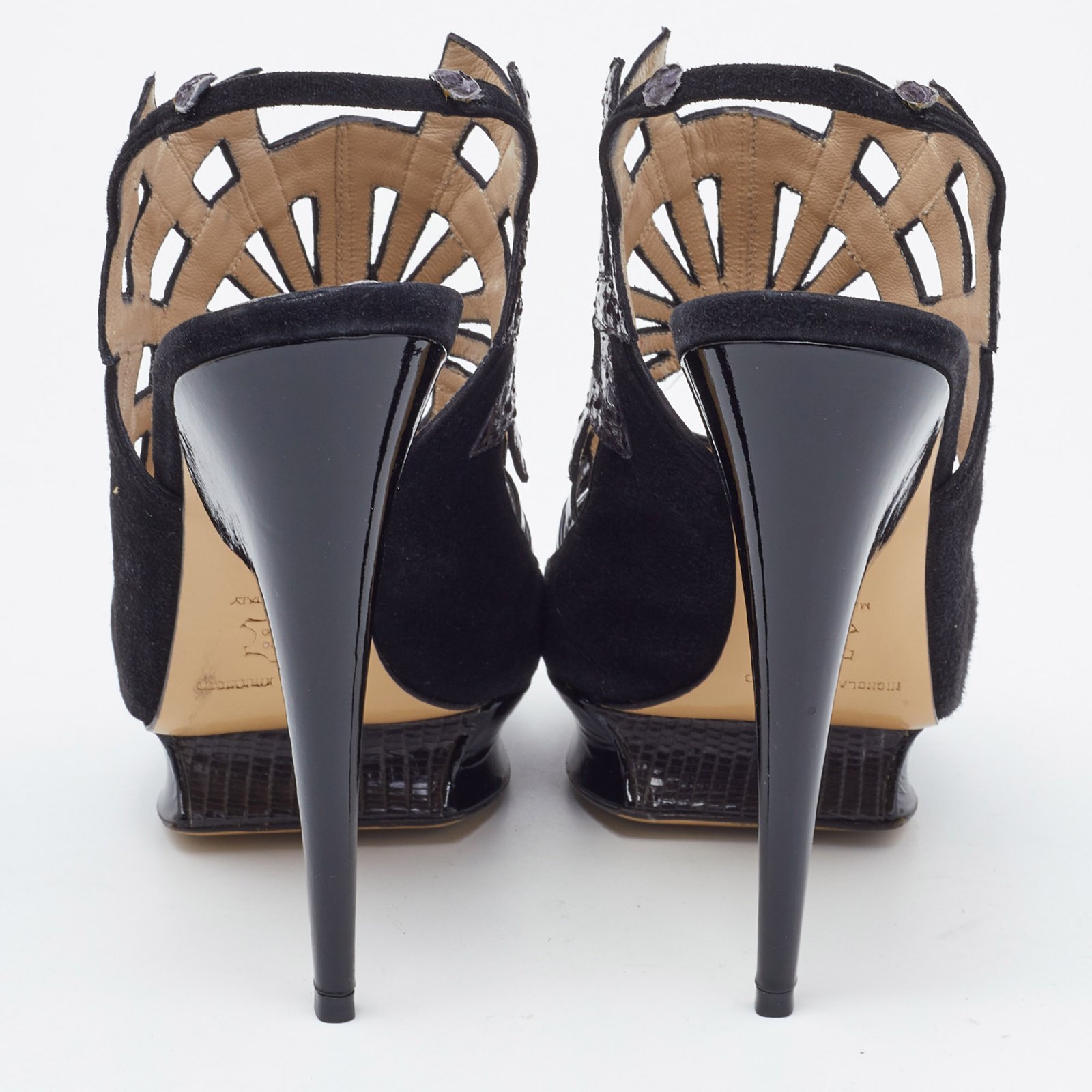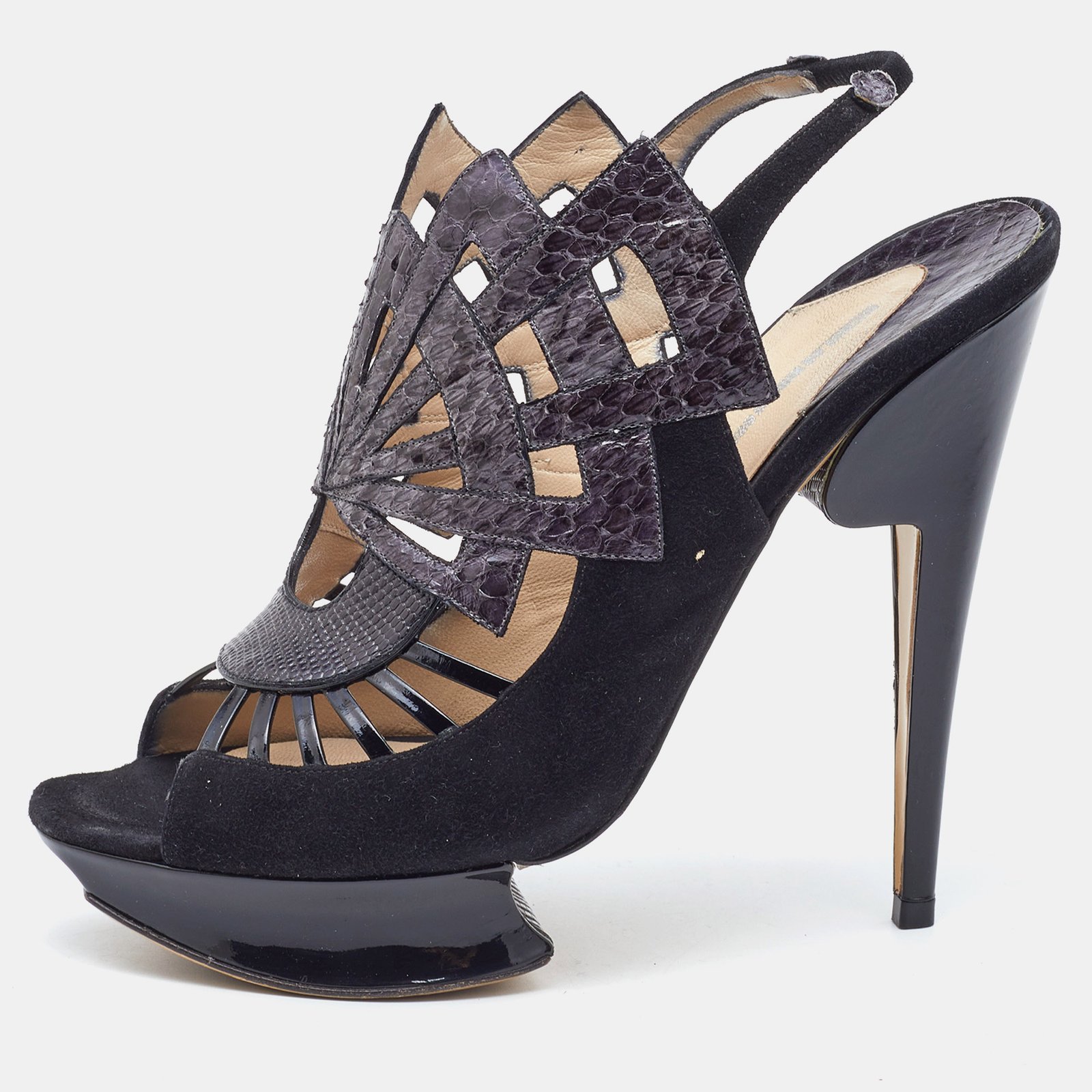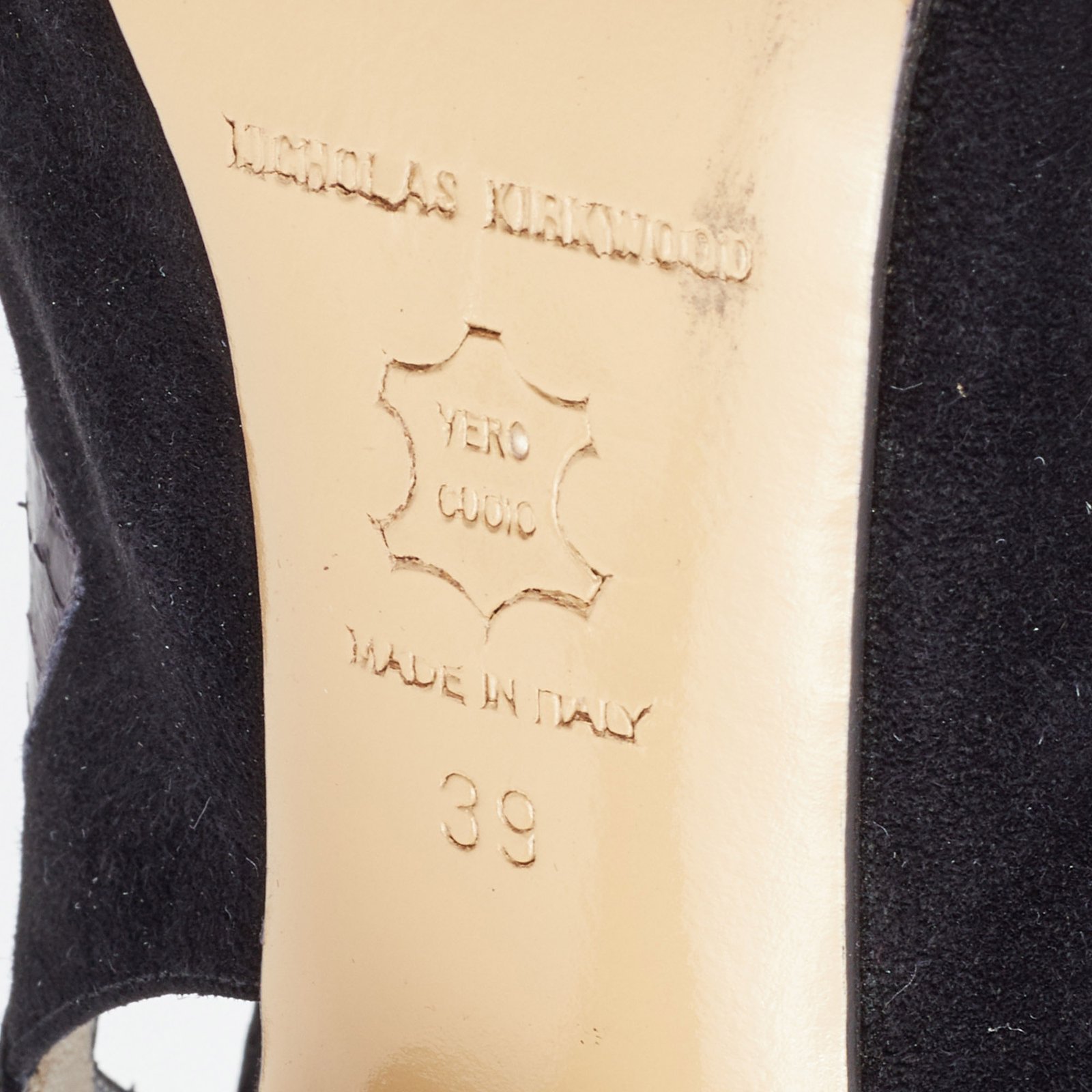 Nicholas Kirkwood Black Watersnake Leather and Suede Slingback Sandals Size 39