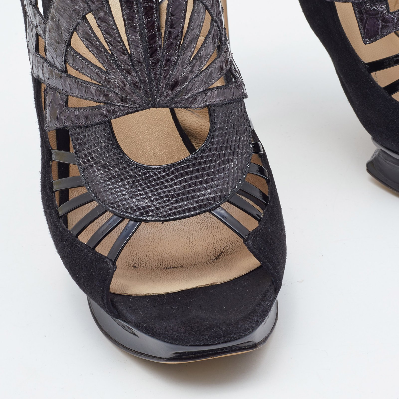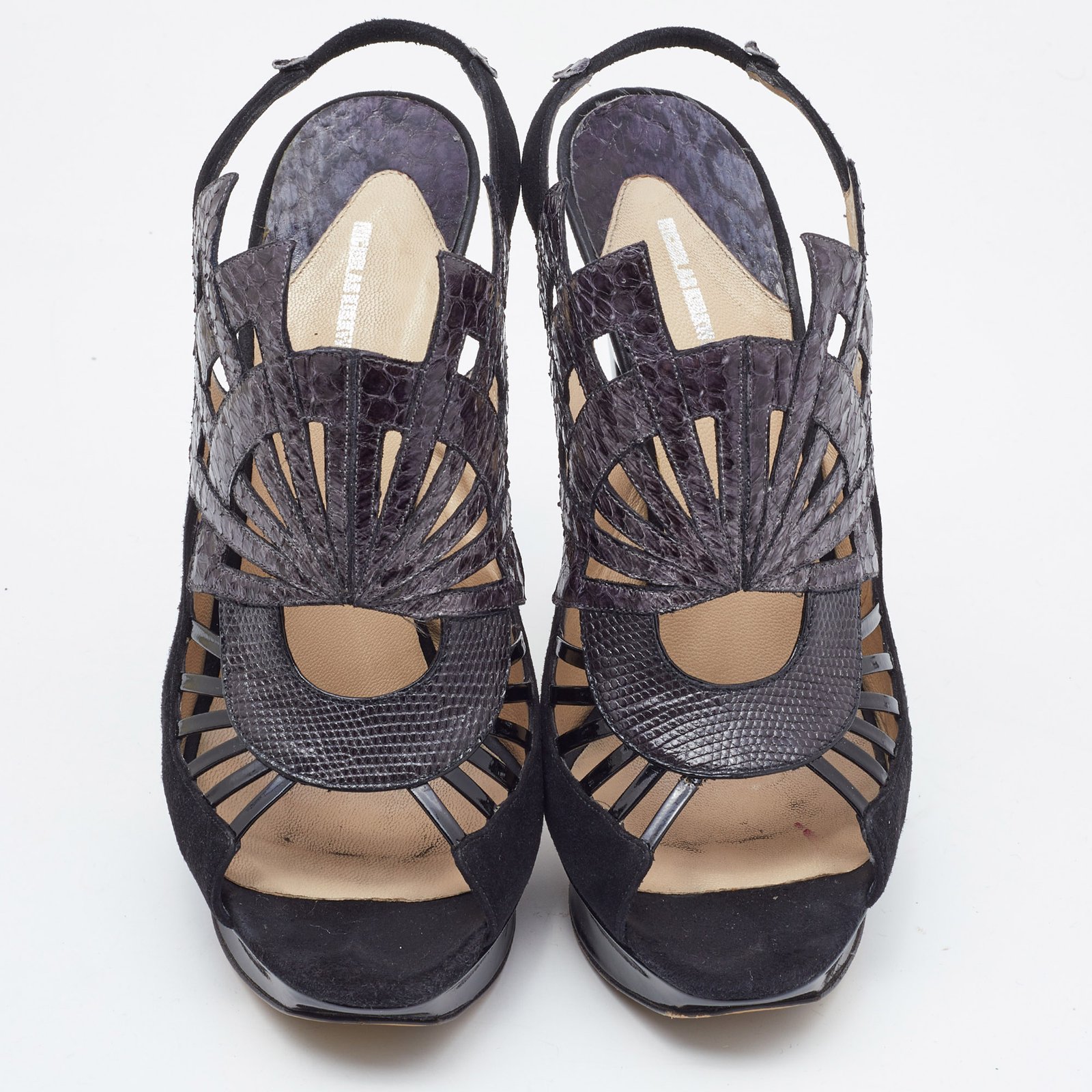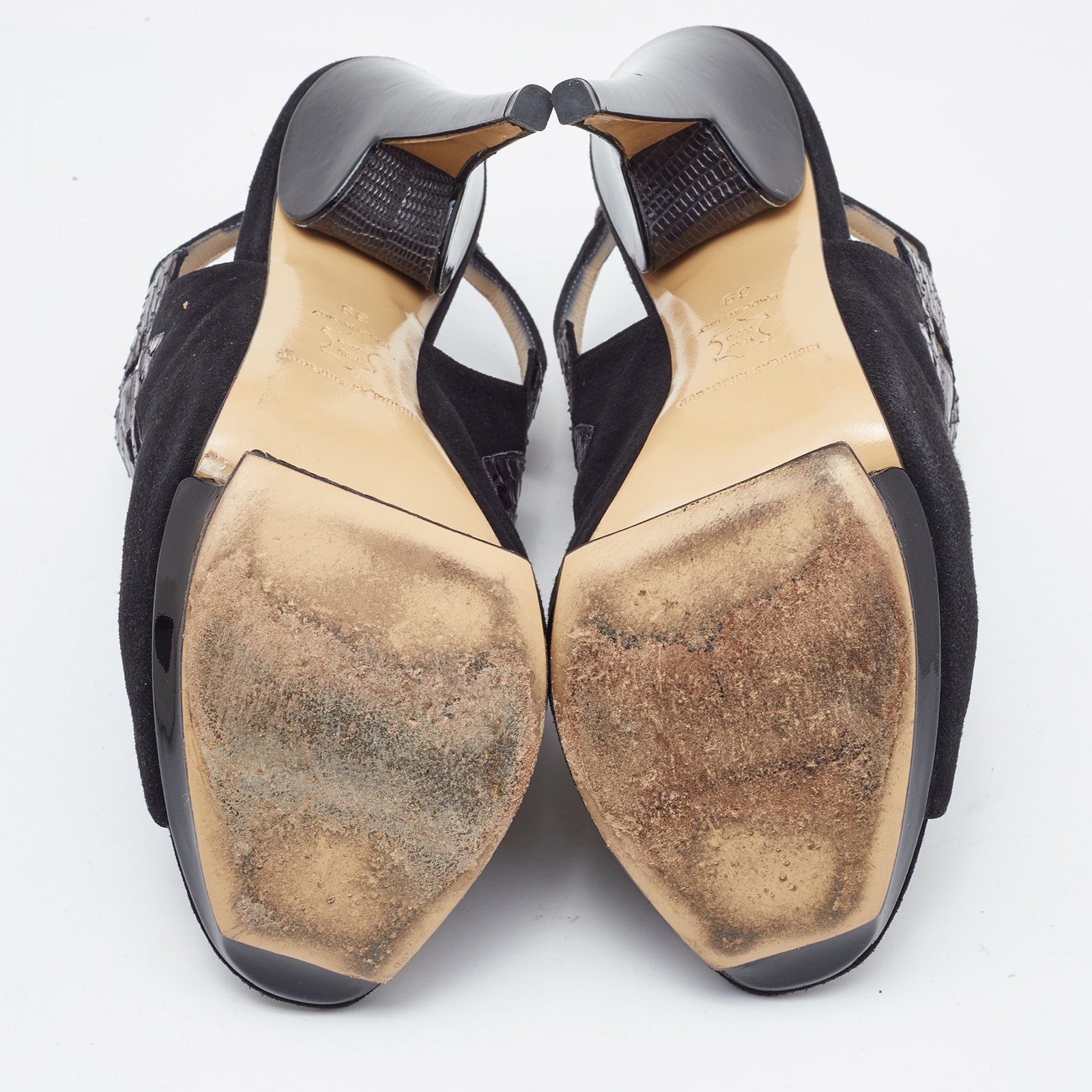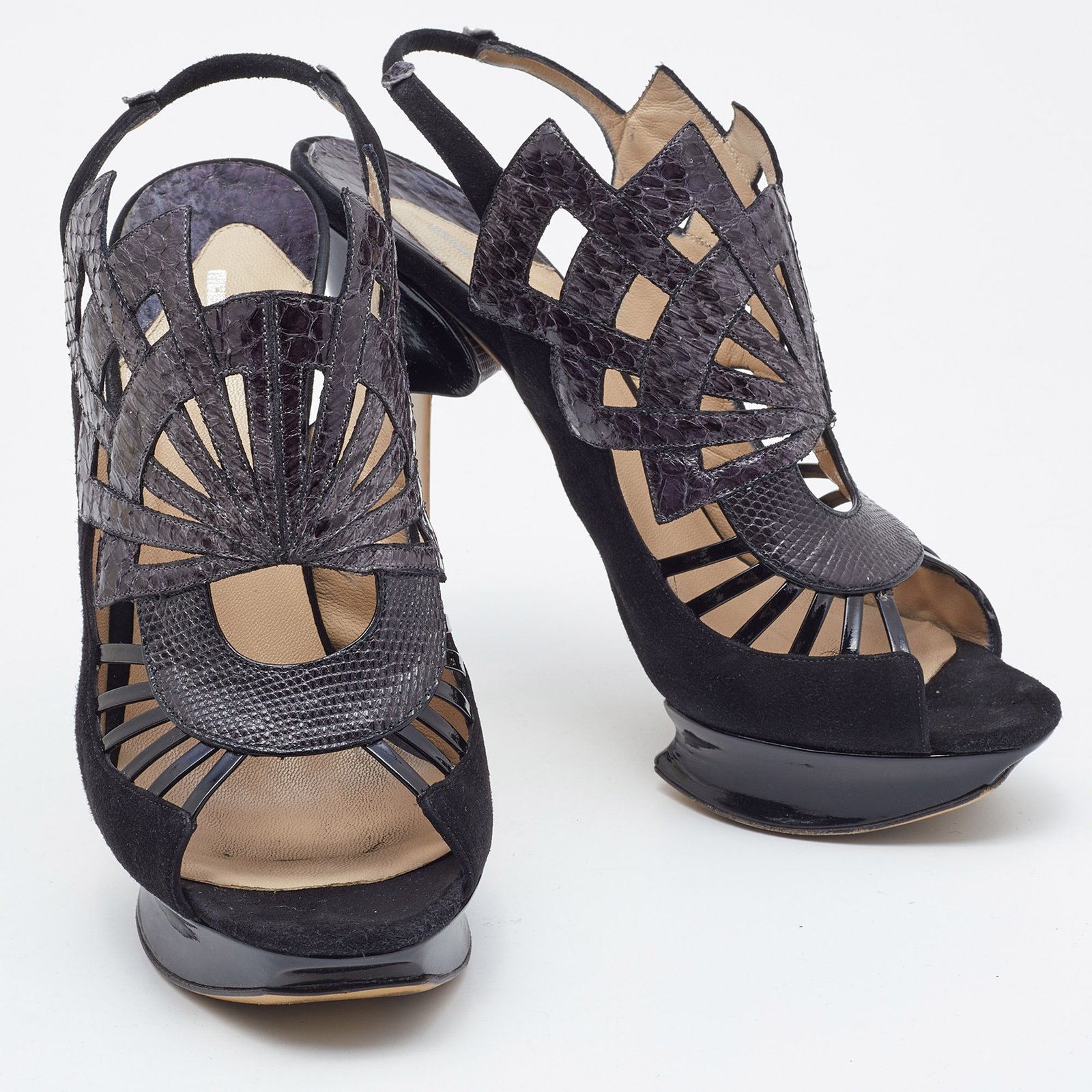Nicholas Kirkwood Black Watersnake Leather and Suede Slingback Sandals Size 39