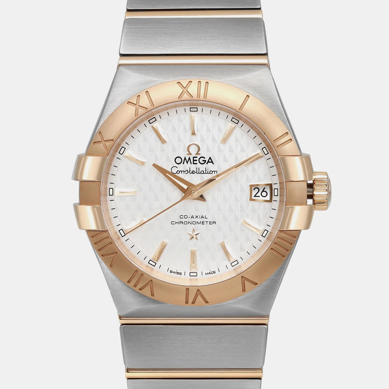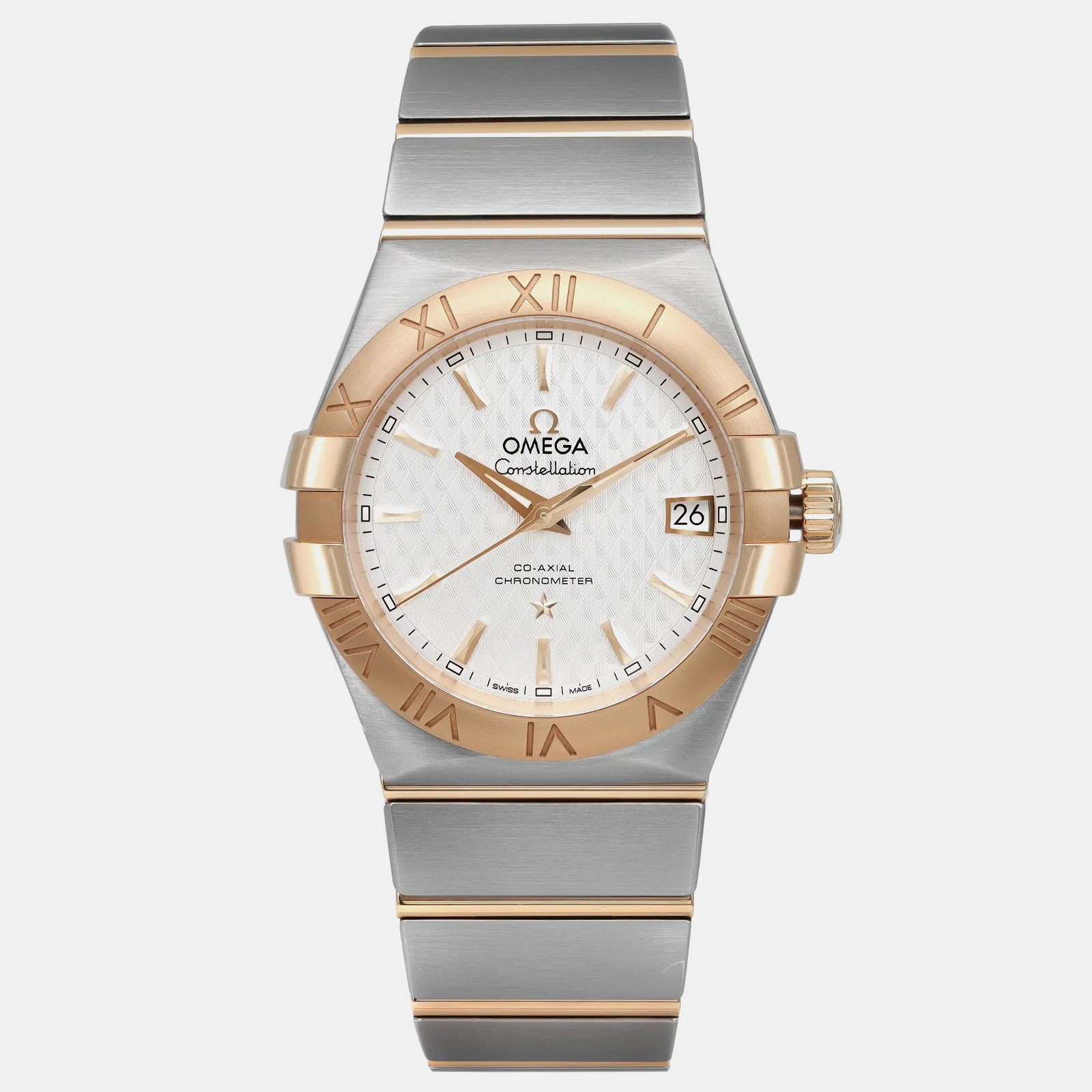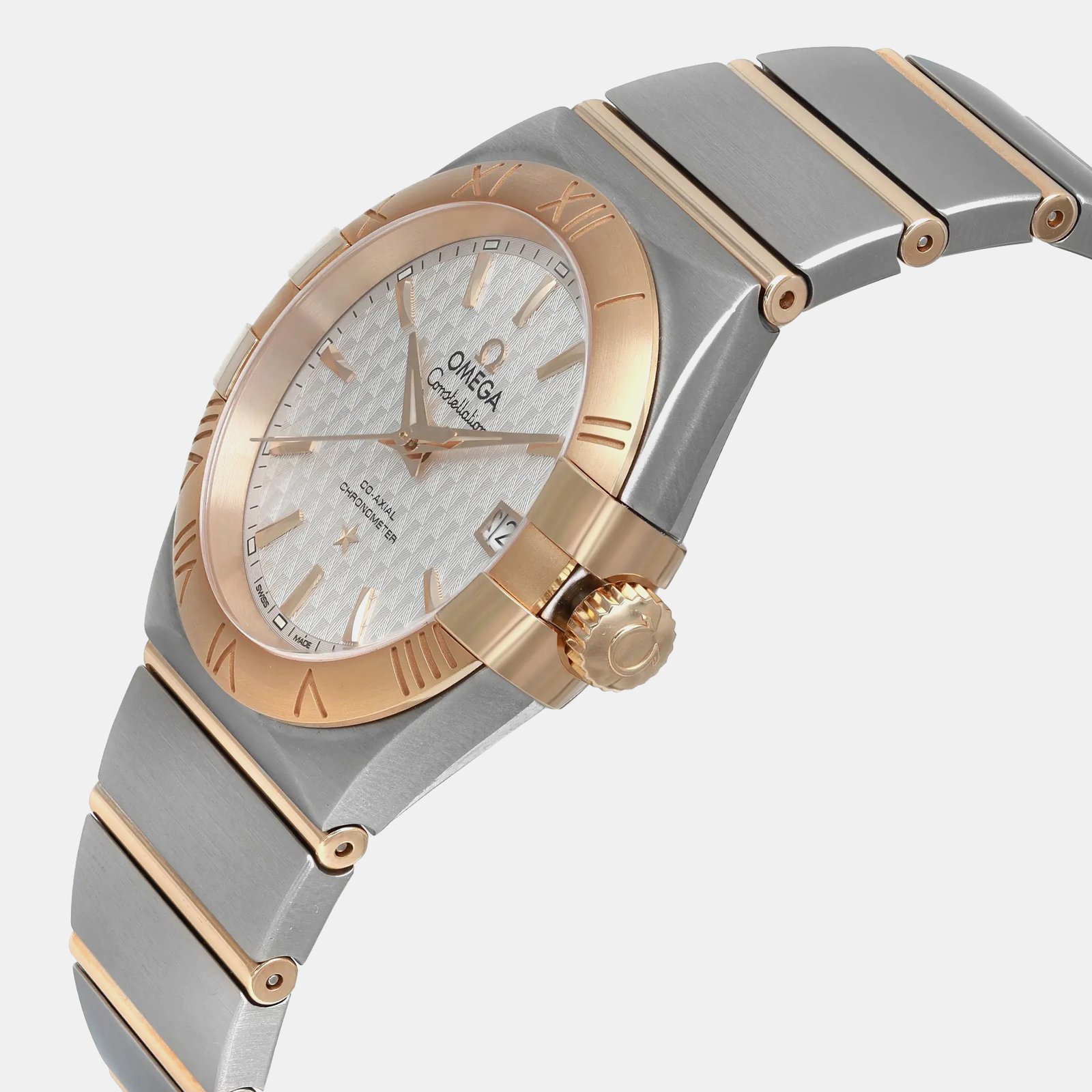 Omega White 18K Gold Stainless Steel Constellation 123.20.35.20.02.006 Automatic Women’s Wristwatch 35mm