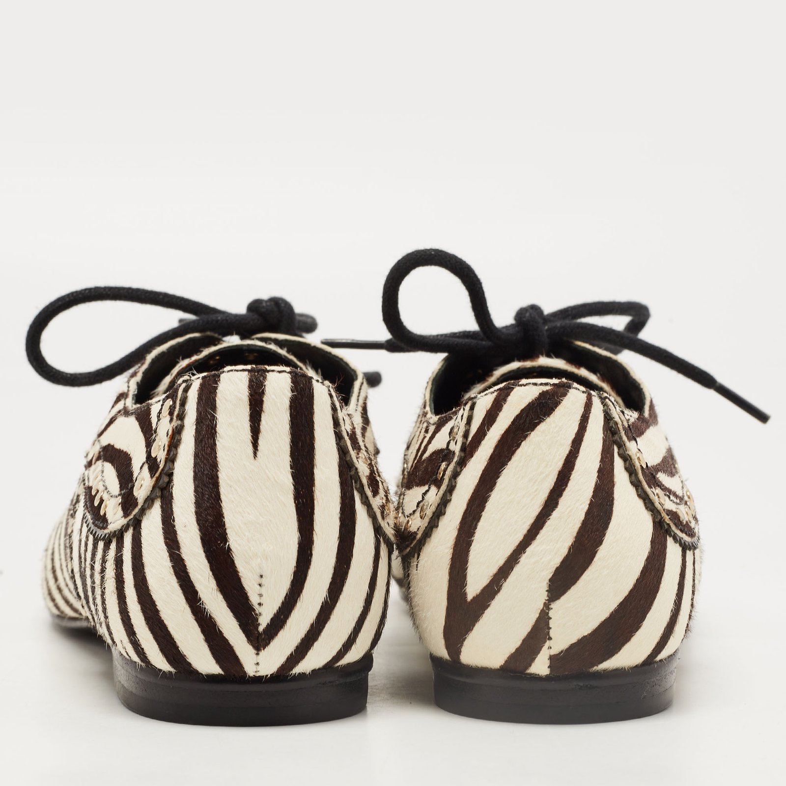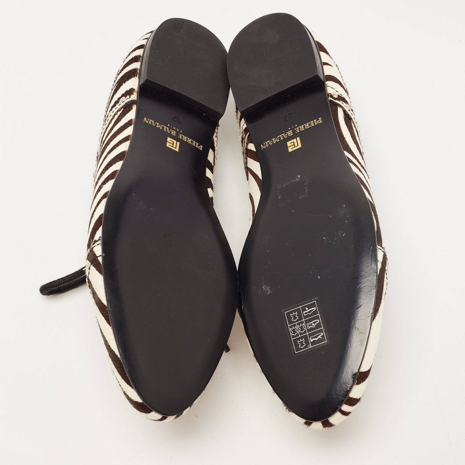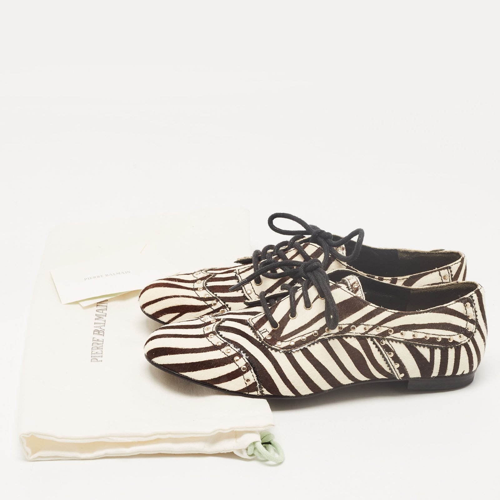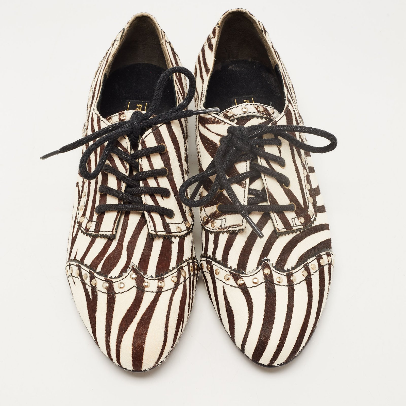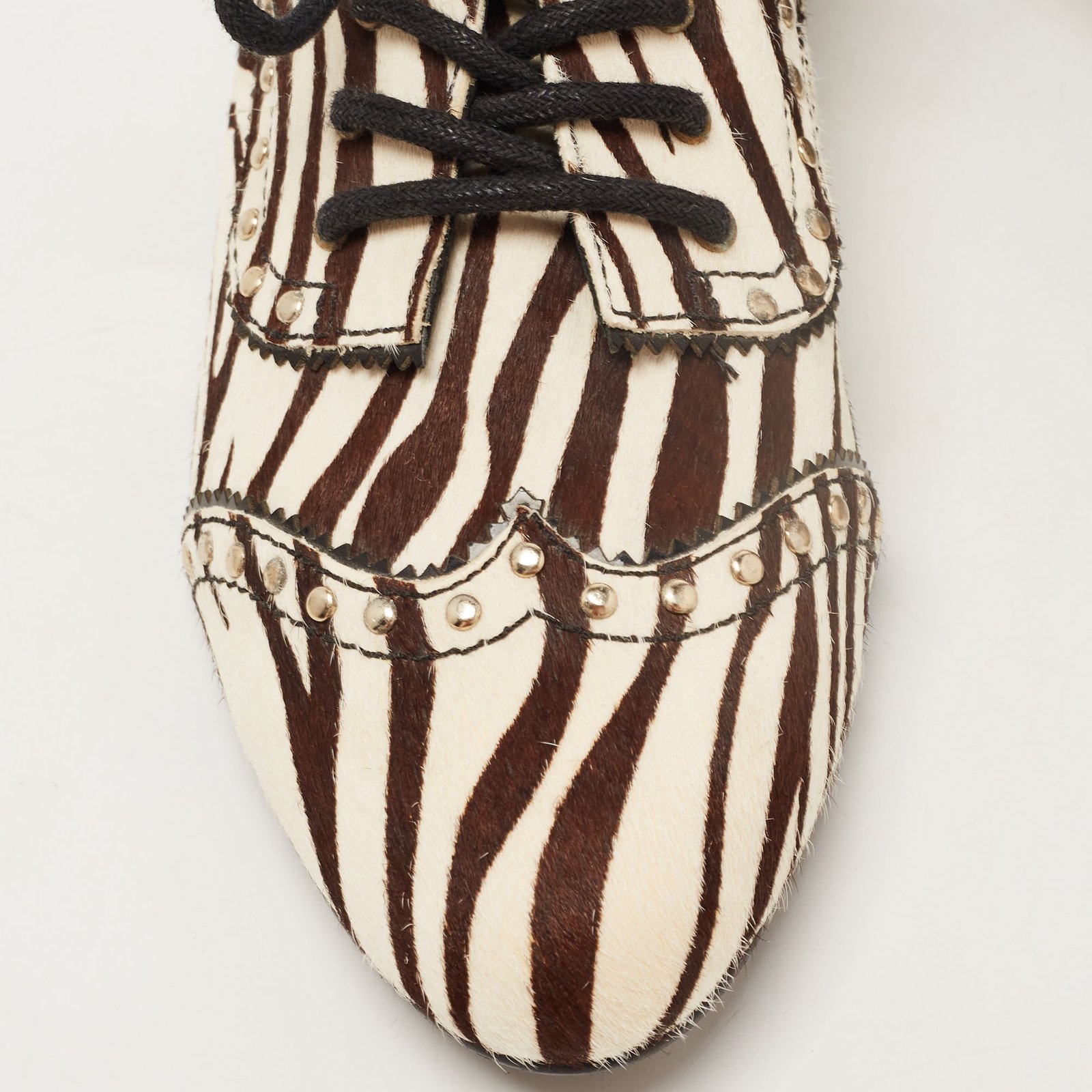 Pierre Balmain Black/ White Zebra Print Pony Hair and Leather Studded Lace Up Oxfords Size 37