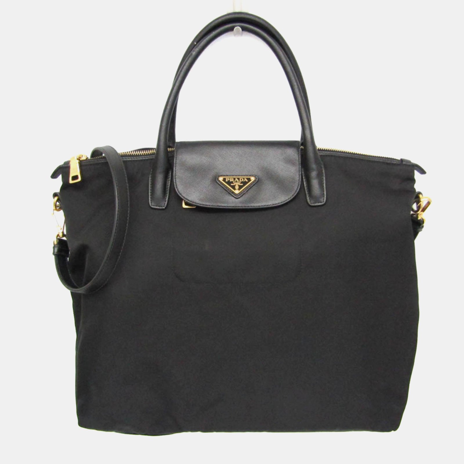 Prada Black Leather, Nylon Shoulder Bag