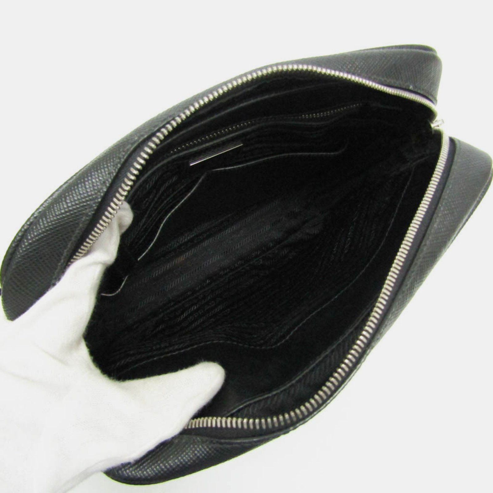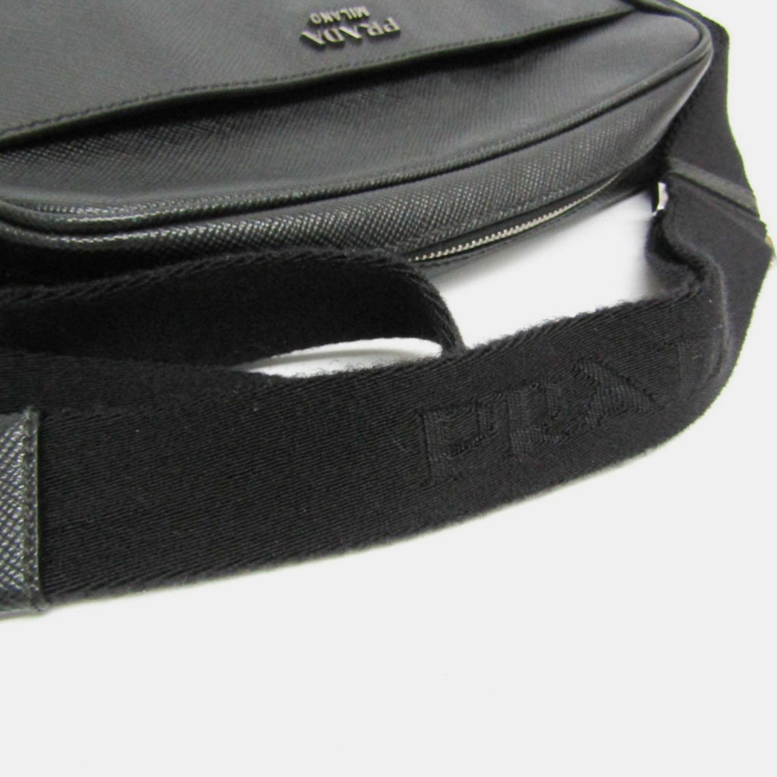 Prada Black Saffiano Leather Small Slit Pocket Messenger Bag
