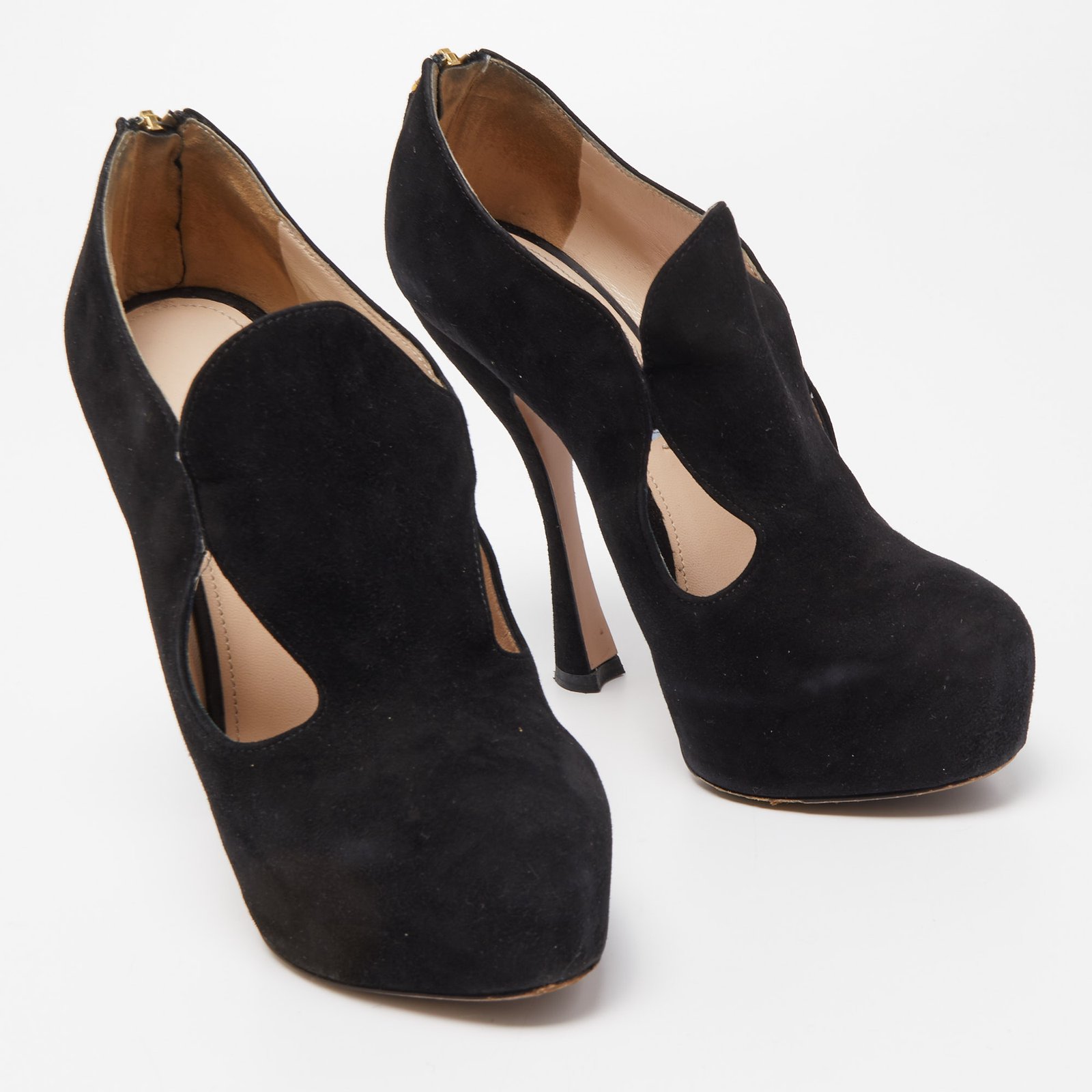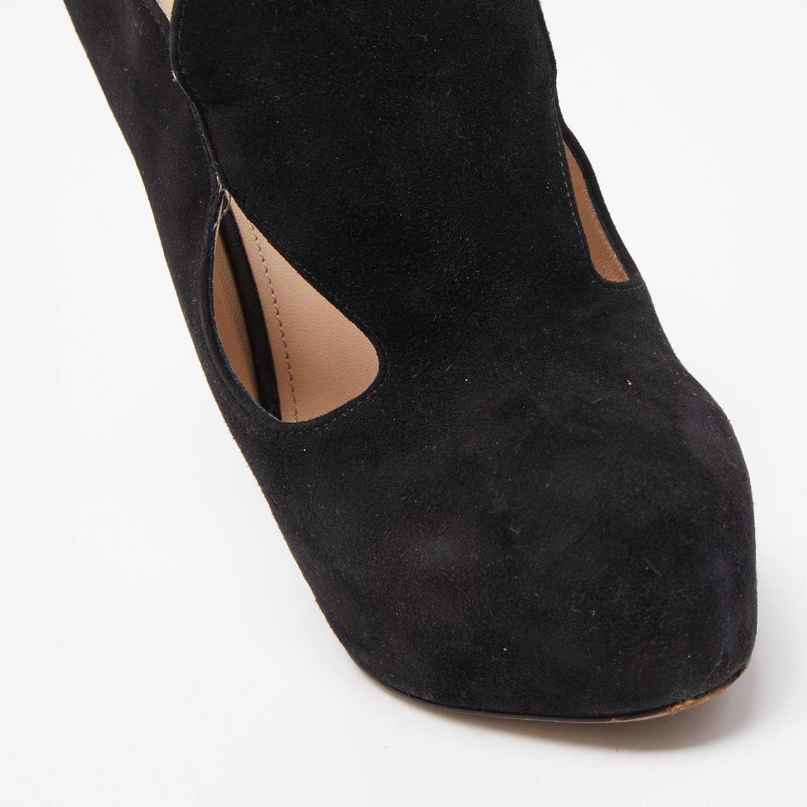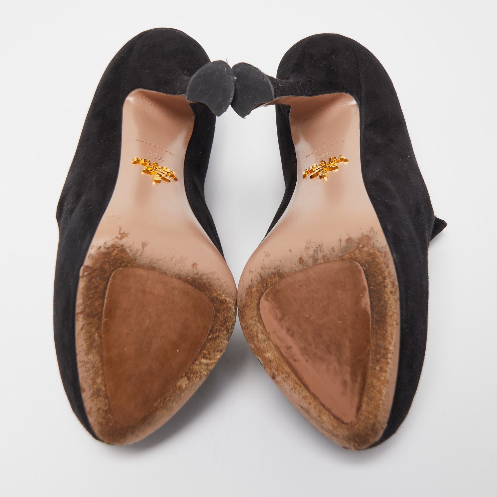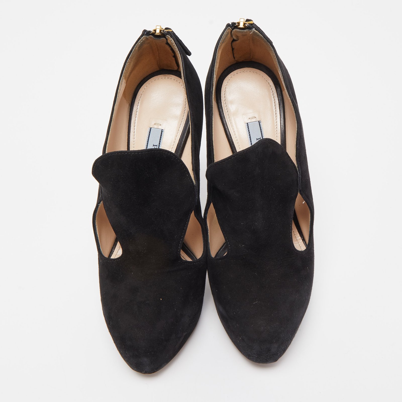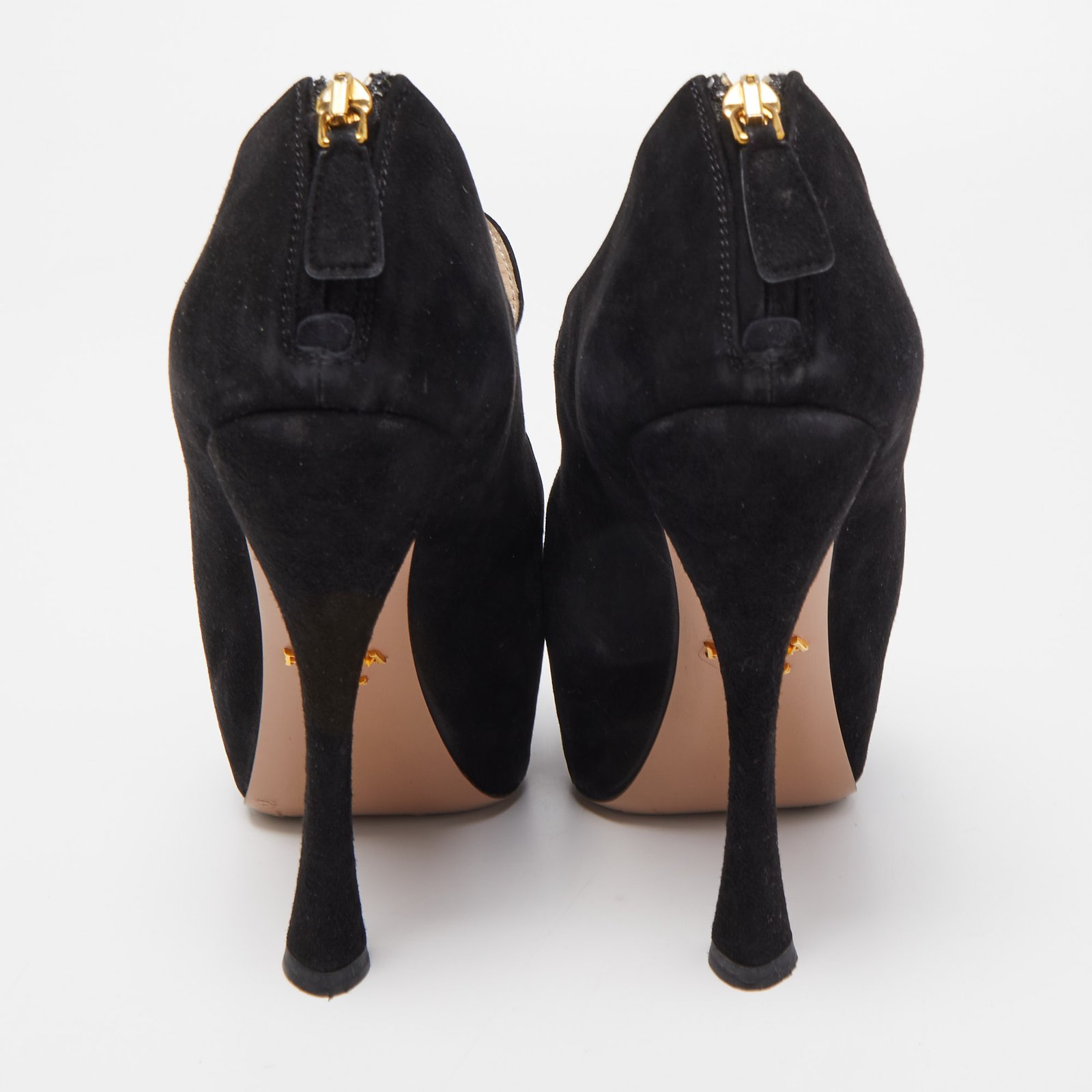 Prada Black Suede Zip detail Cut Out Platform Booties Size 36.5