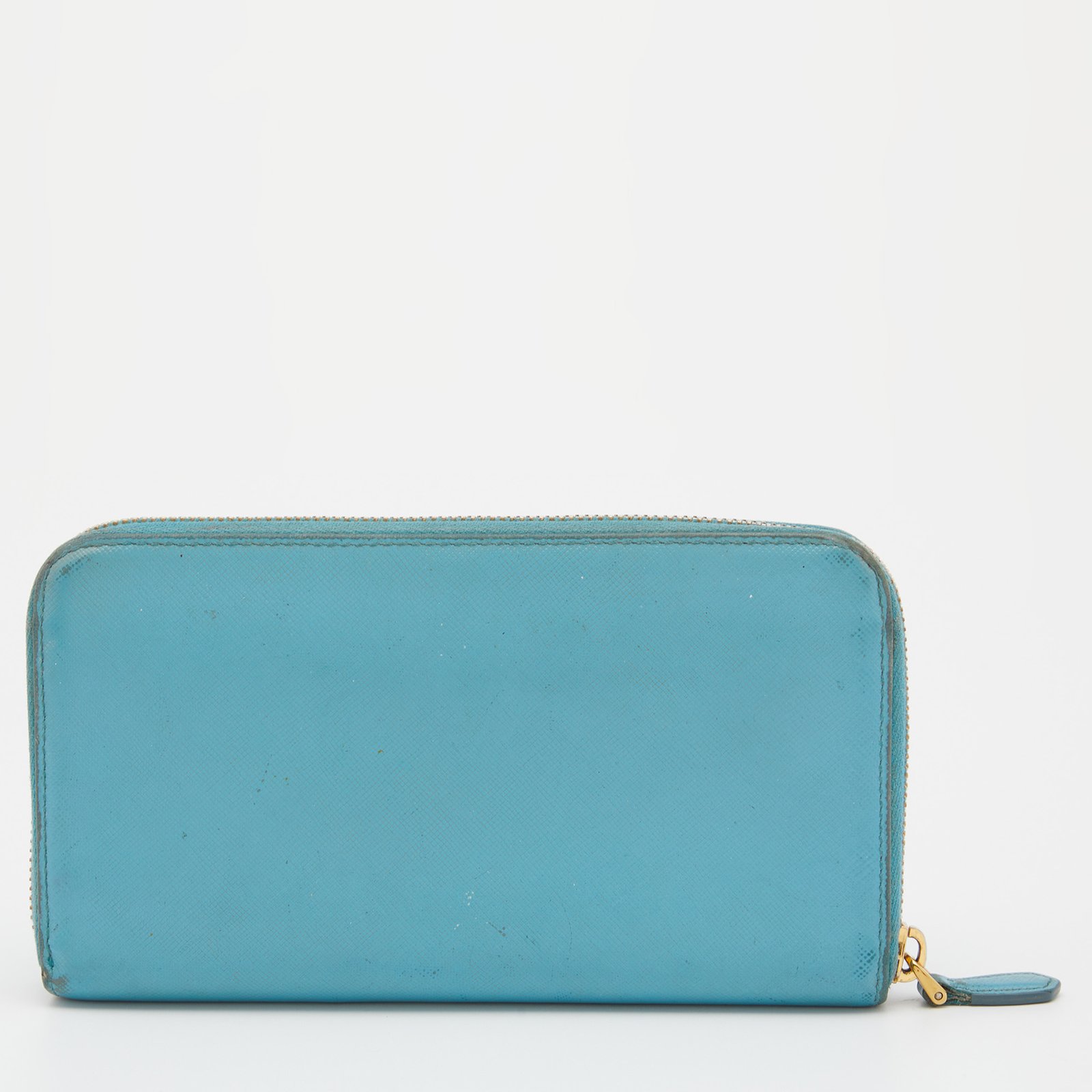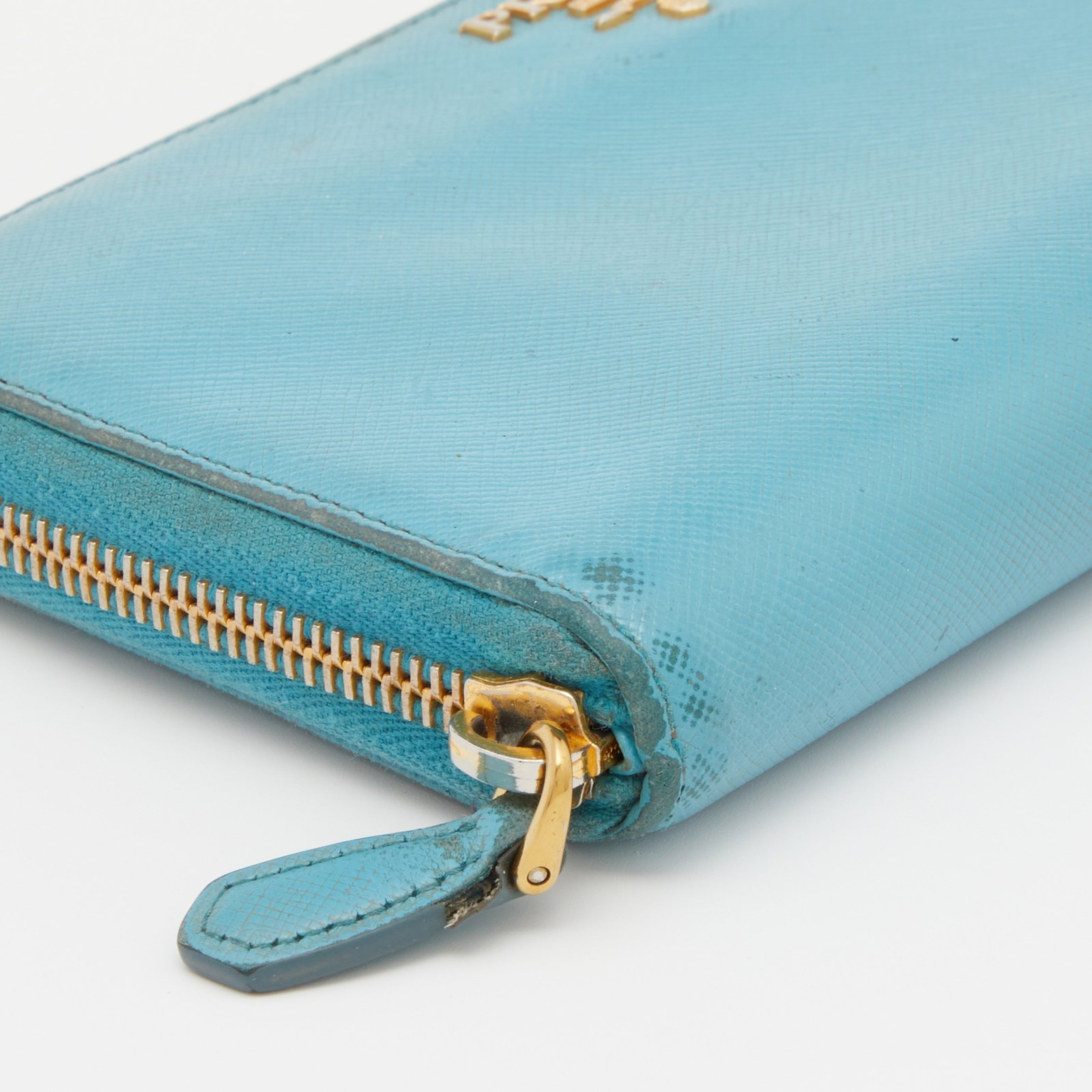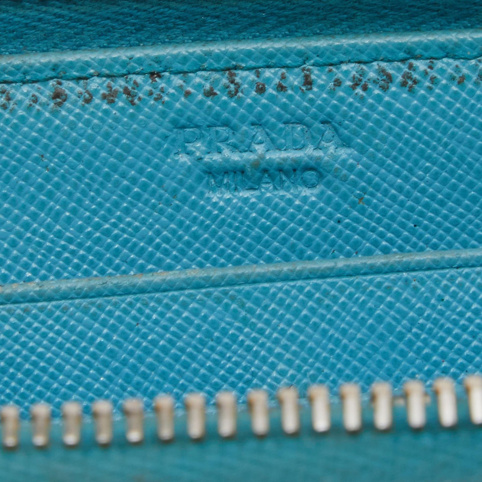 Prada Blue Saffiano Lux Leather Zip Around Wallet