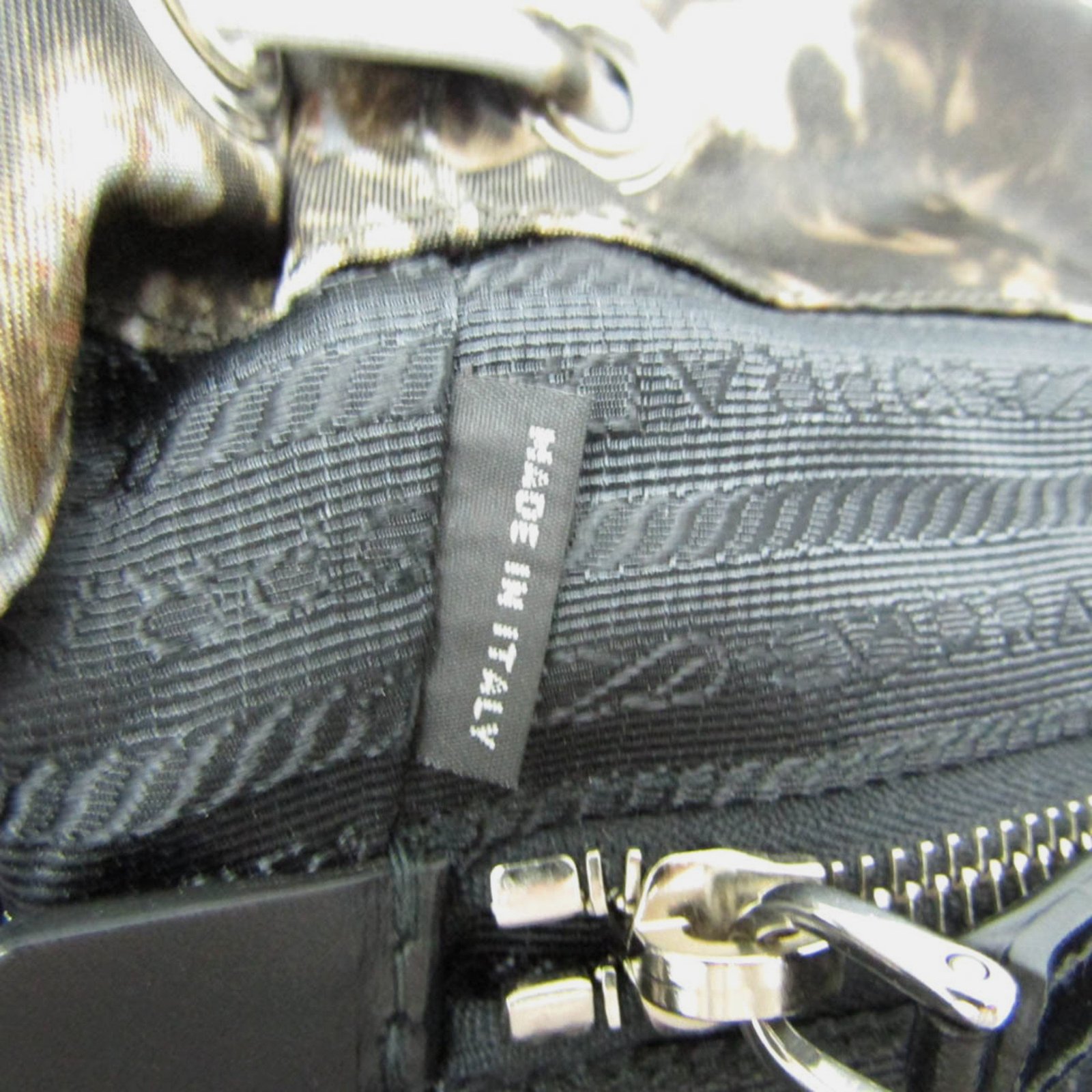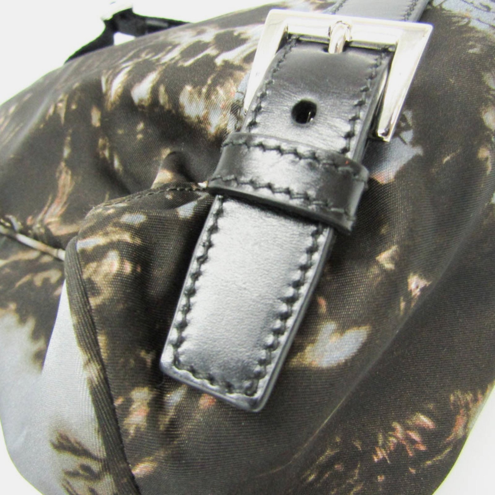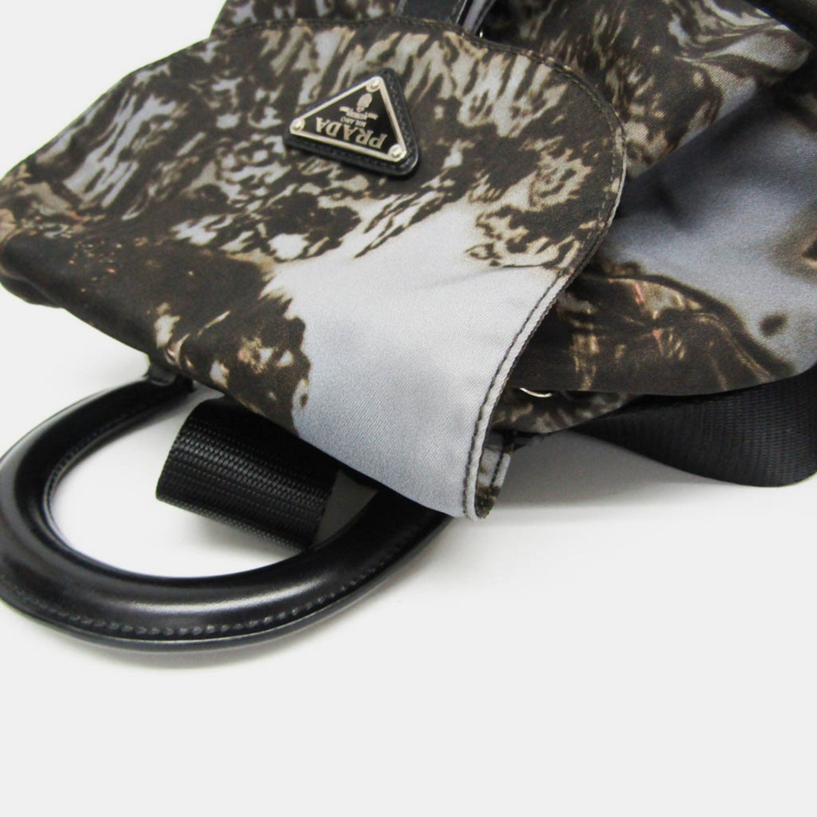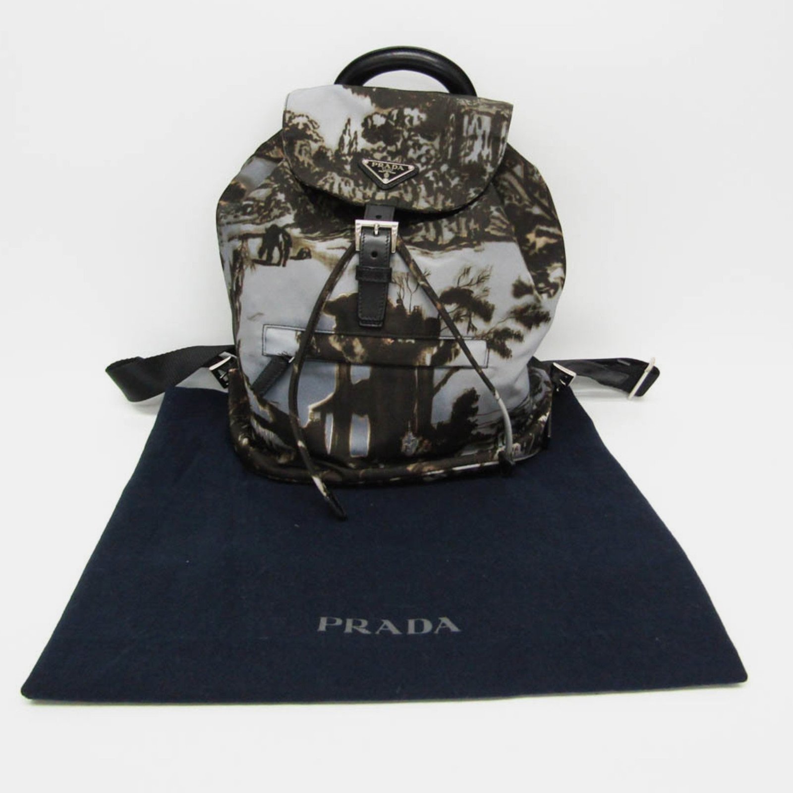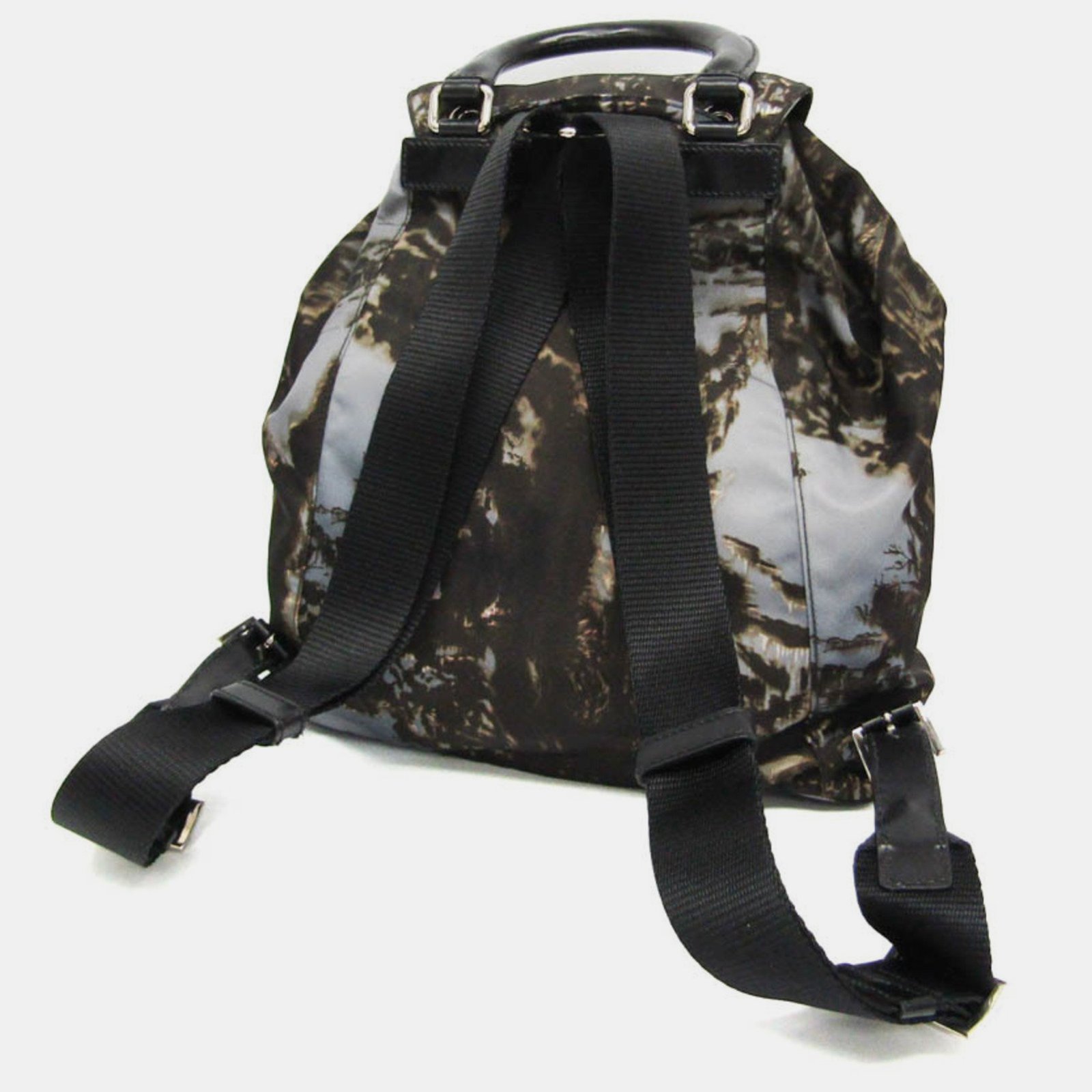 Prada Gray Khaki Brown Nylon Landscape Painting Backpack