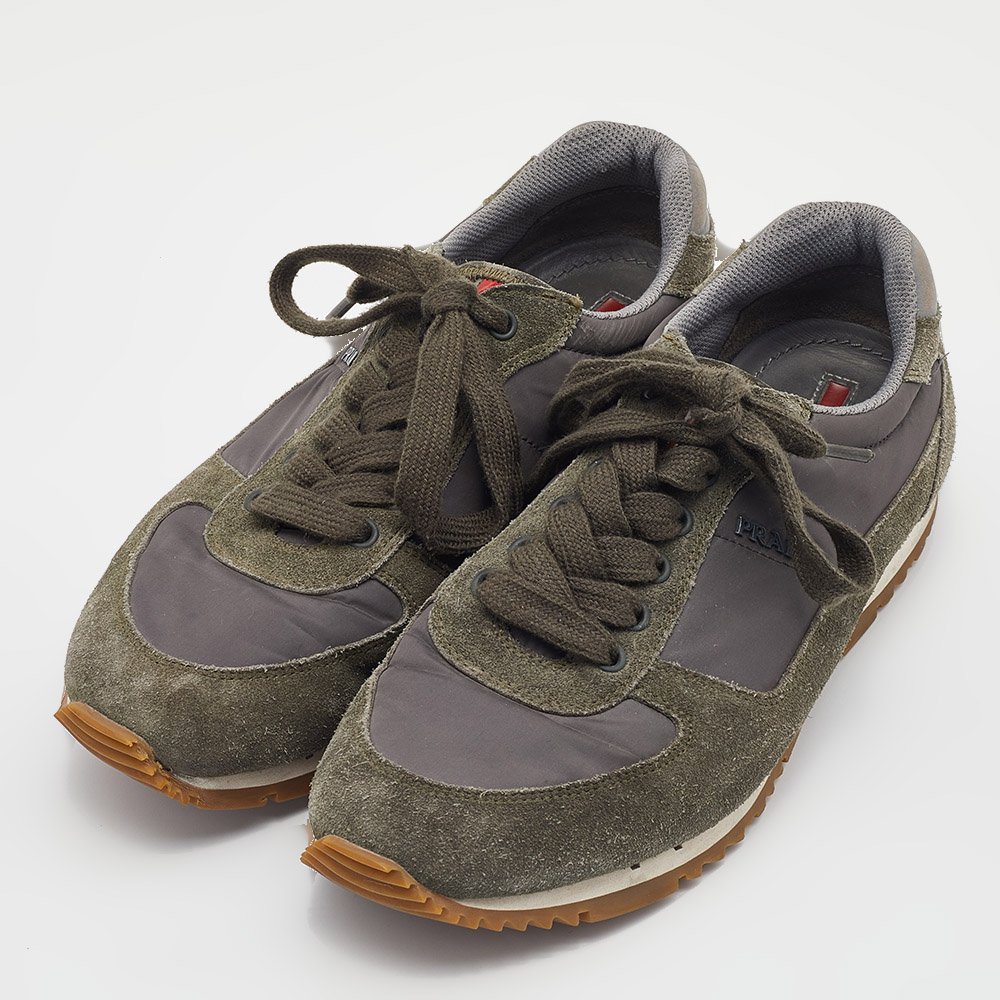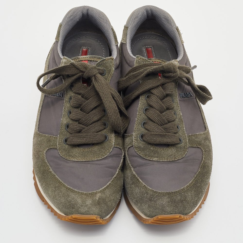 Prada Sport Grey/Green Nylon and Suede Low Top Sneakers Size 39.5