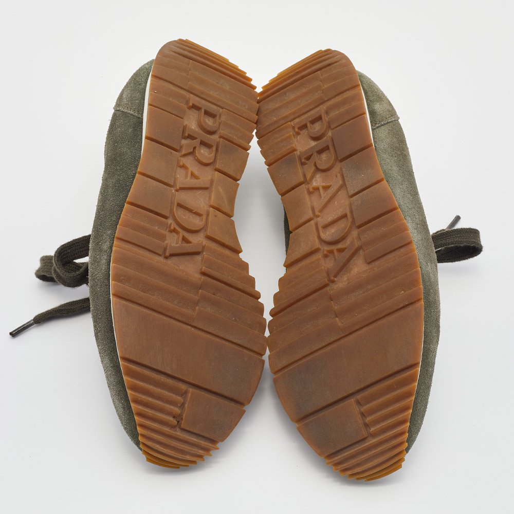 Prada Sport Grey/Green Nylon and Suede Low Top Sneakers Size 39.5 - Image 8