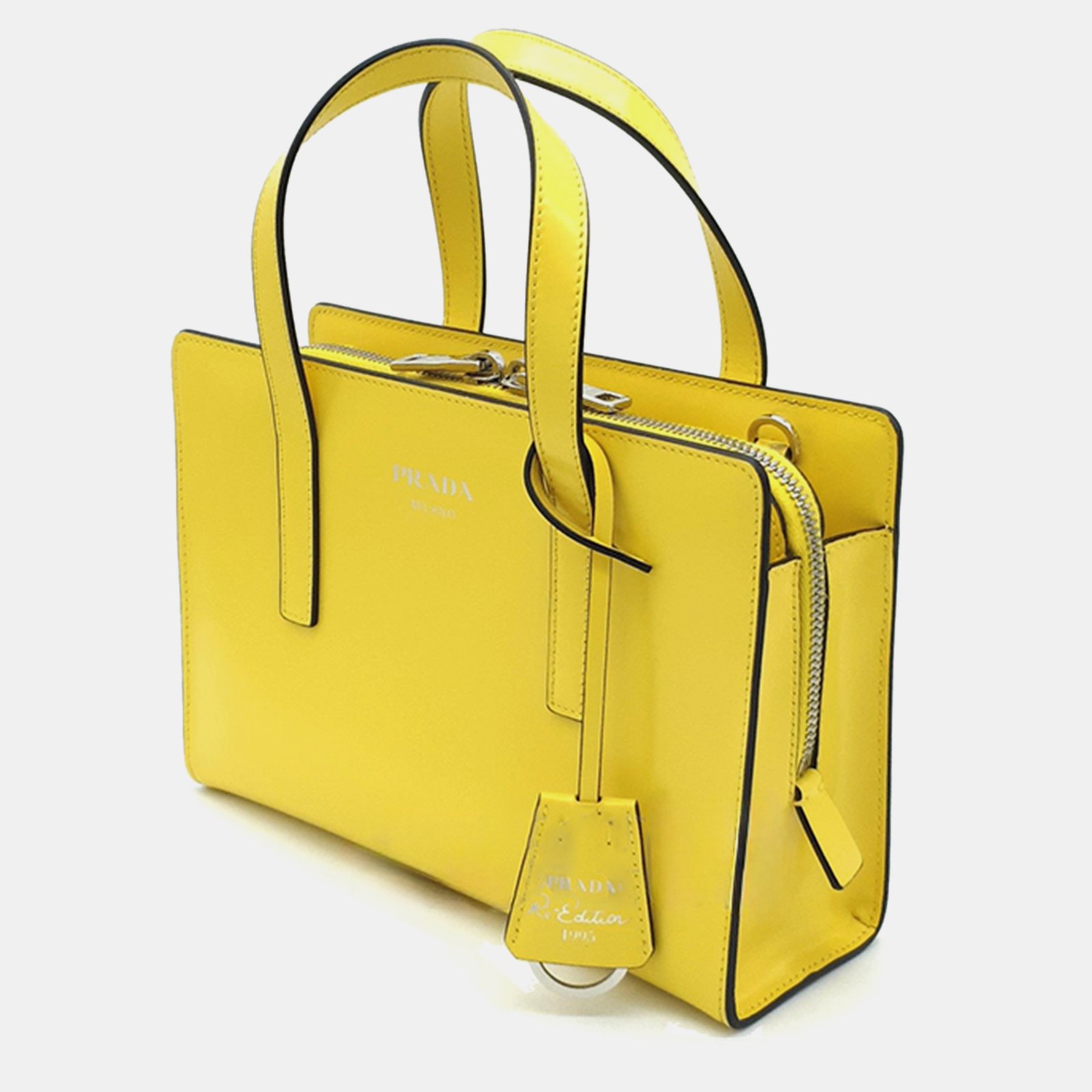 Prada Yellow leather brushed mini tote bag