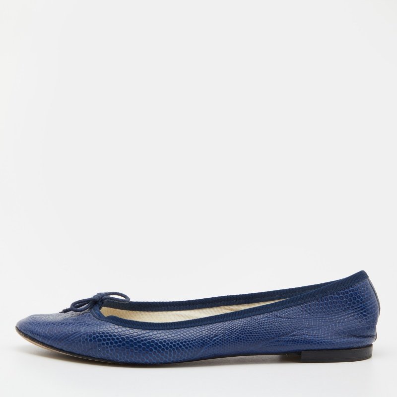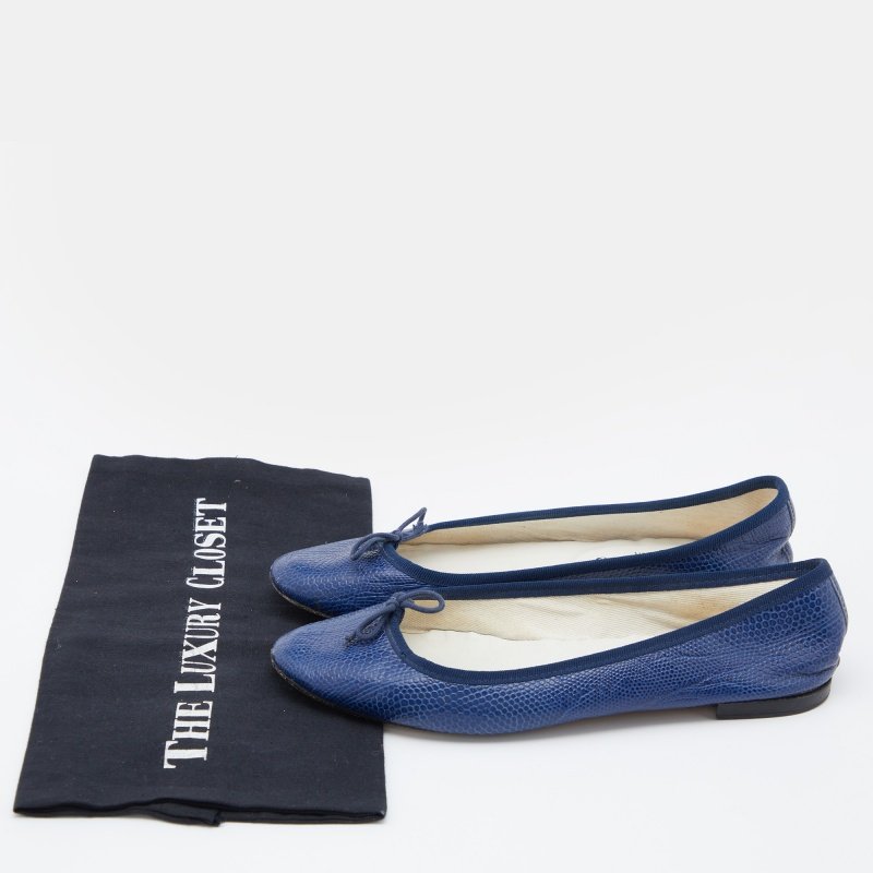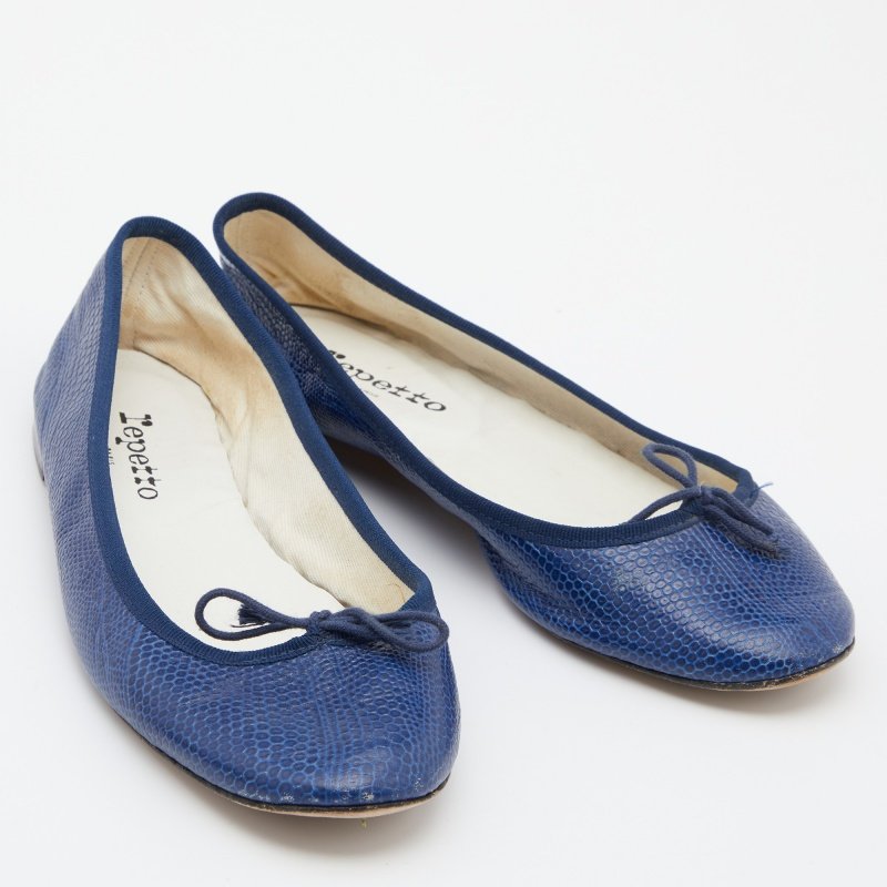 Repetto Blue Croc Embossed Leather Bow Ballet Flats Size 40
