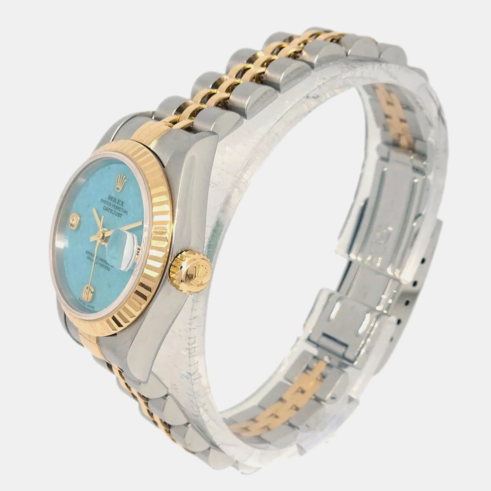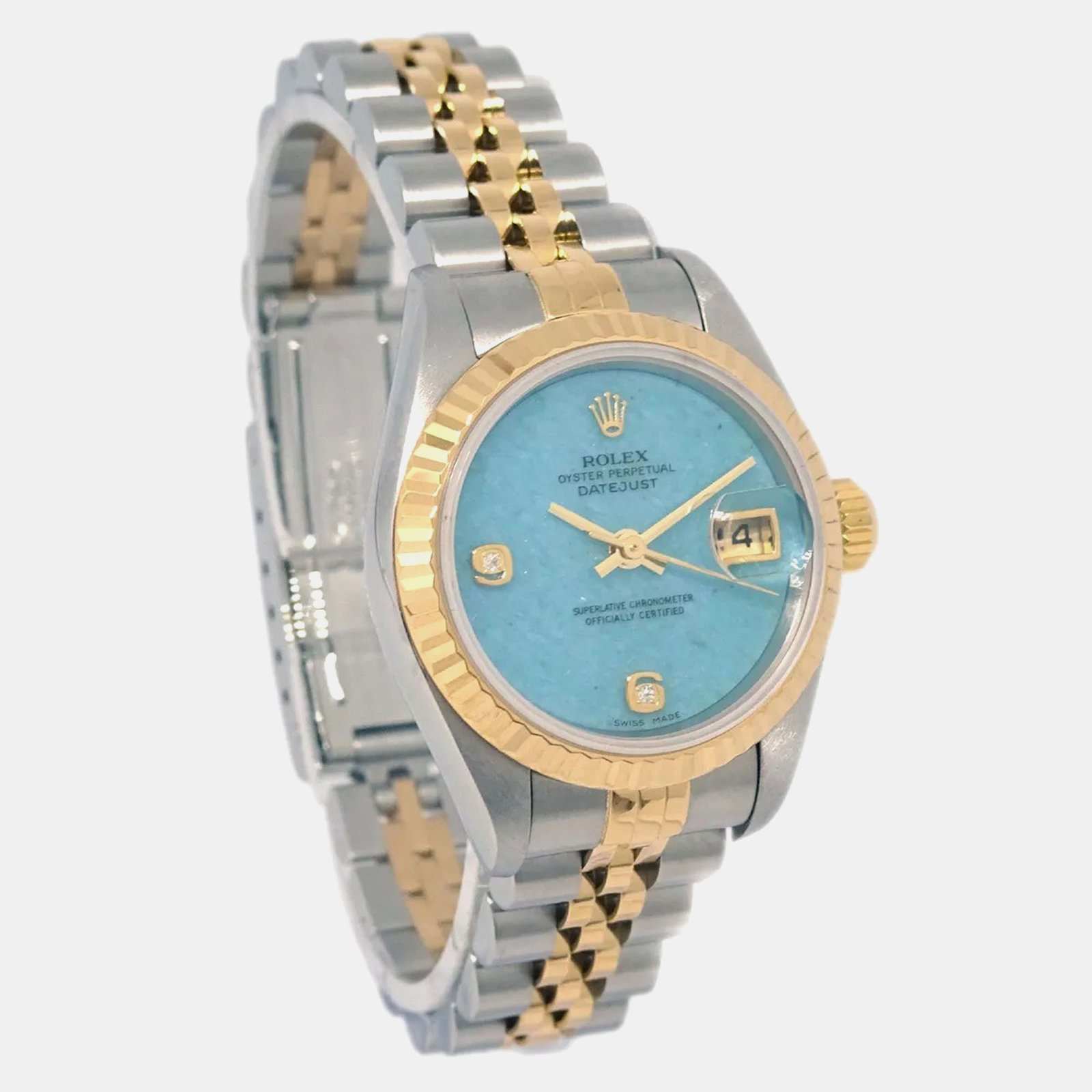 Rolex Blue Diamond 18k Yellow Gold Stainless Steel Datejust 79173 Automatic Women's Wristwatch 26 mm