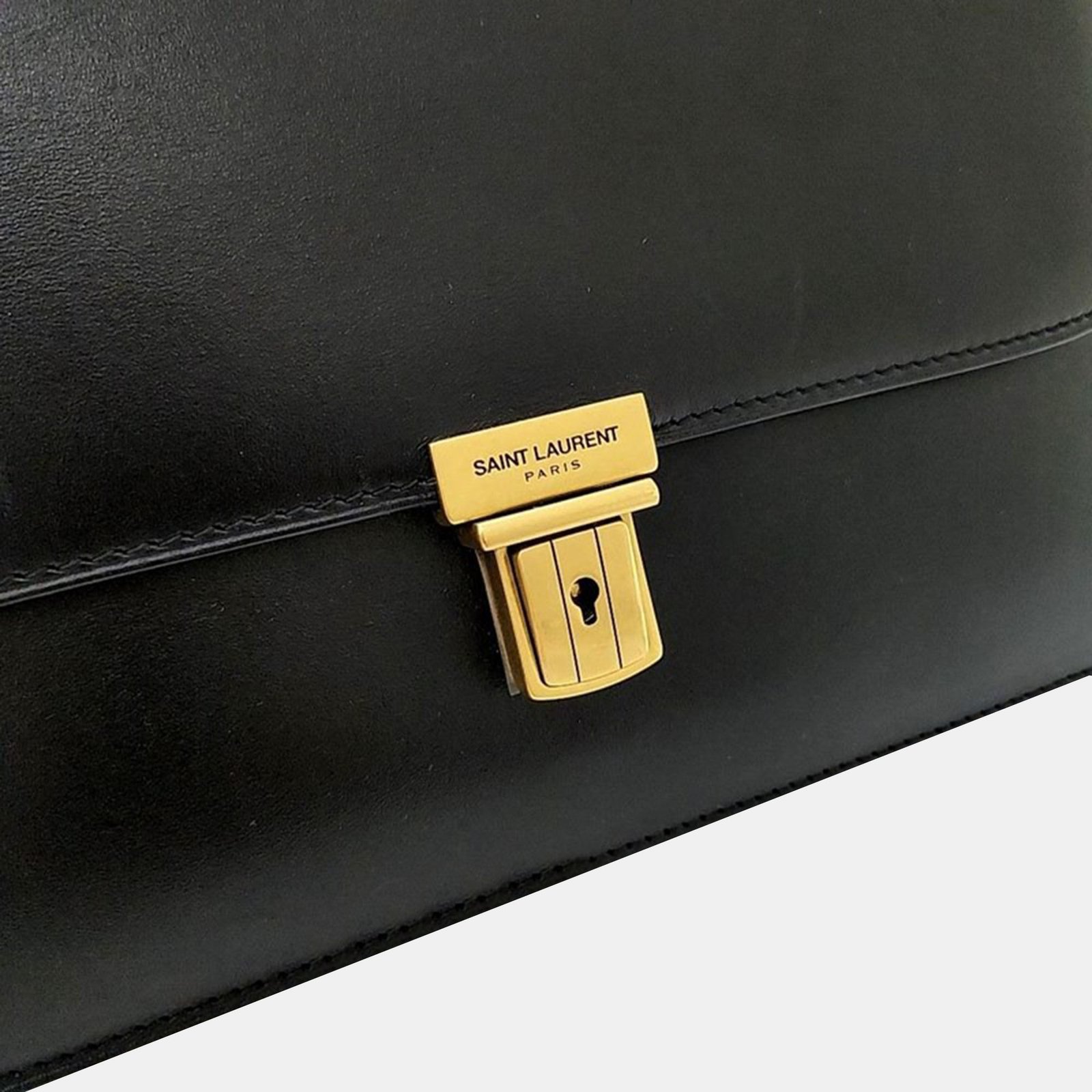 Saint Laurent Black Leather Tuc Shoulder Bag