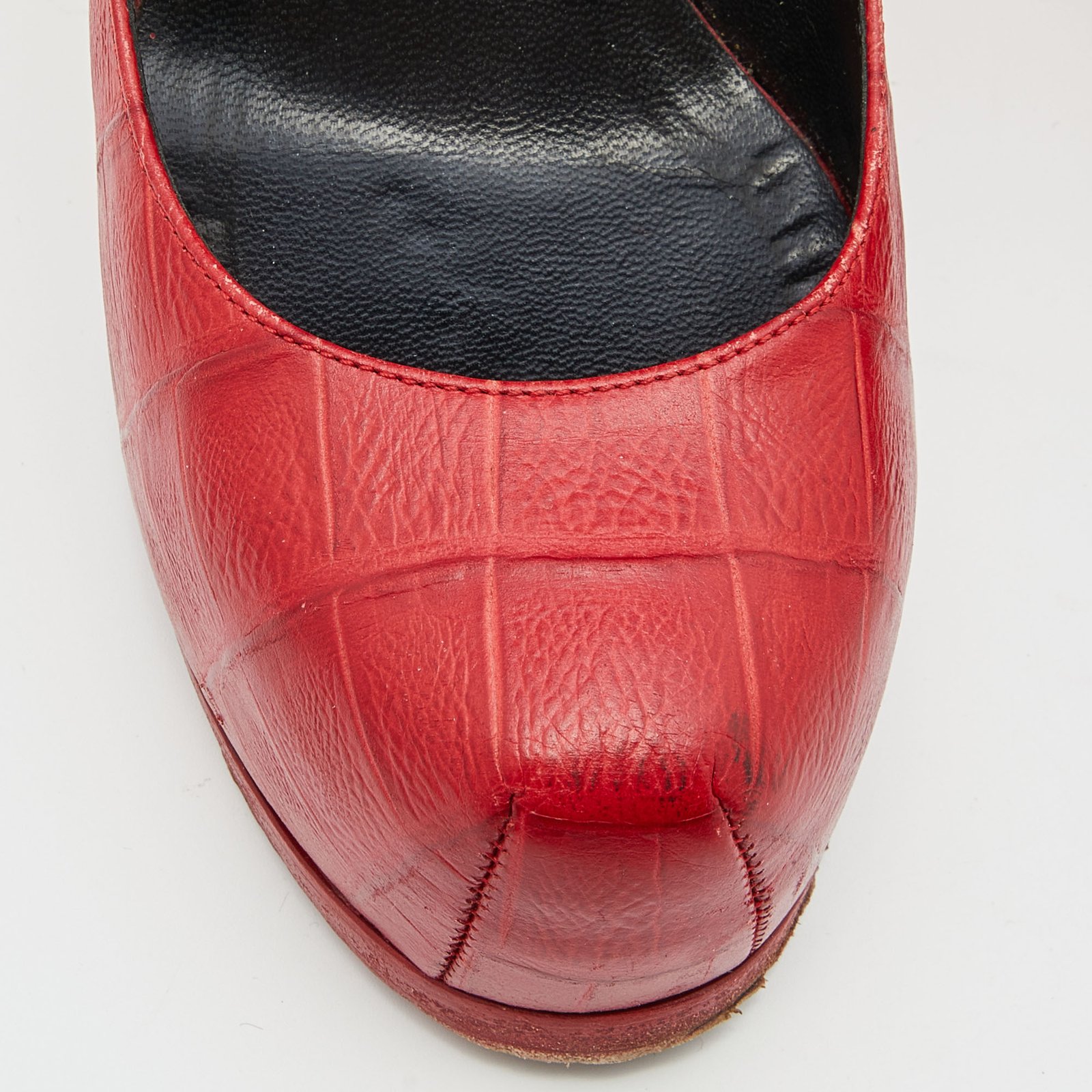 Saint Laurent Red Croc Embossed Leather Tribtoo Platform Pumps Size 37