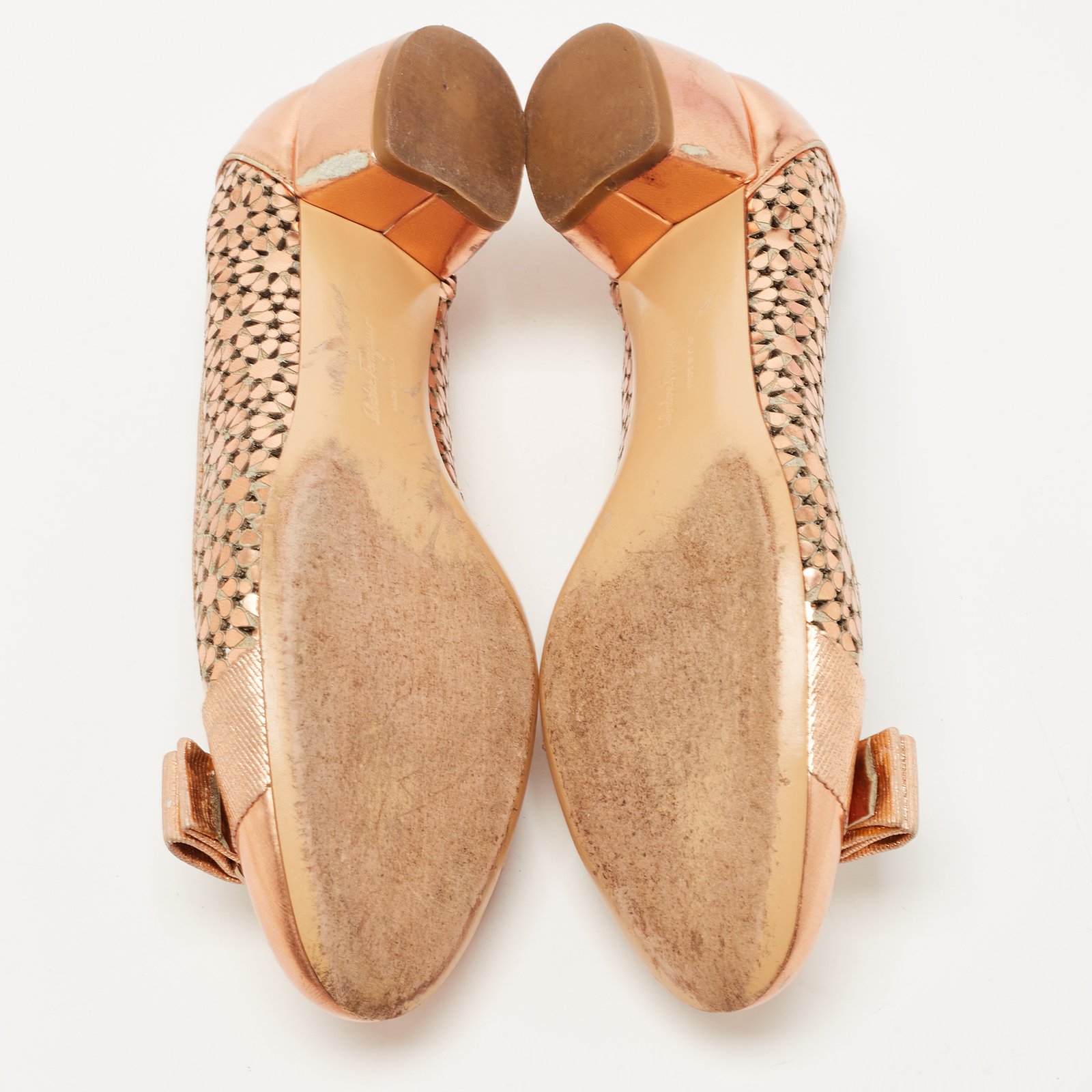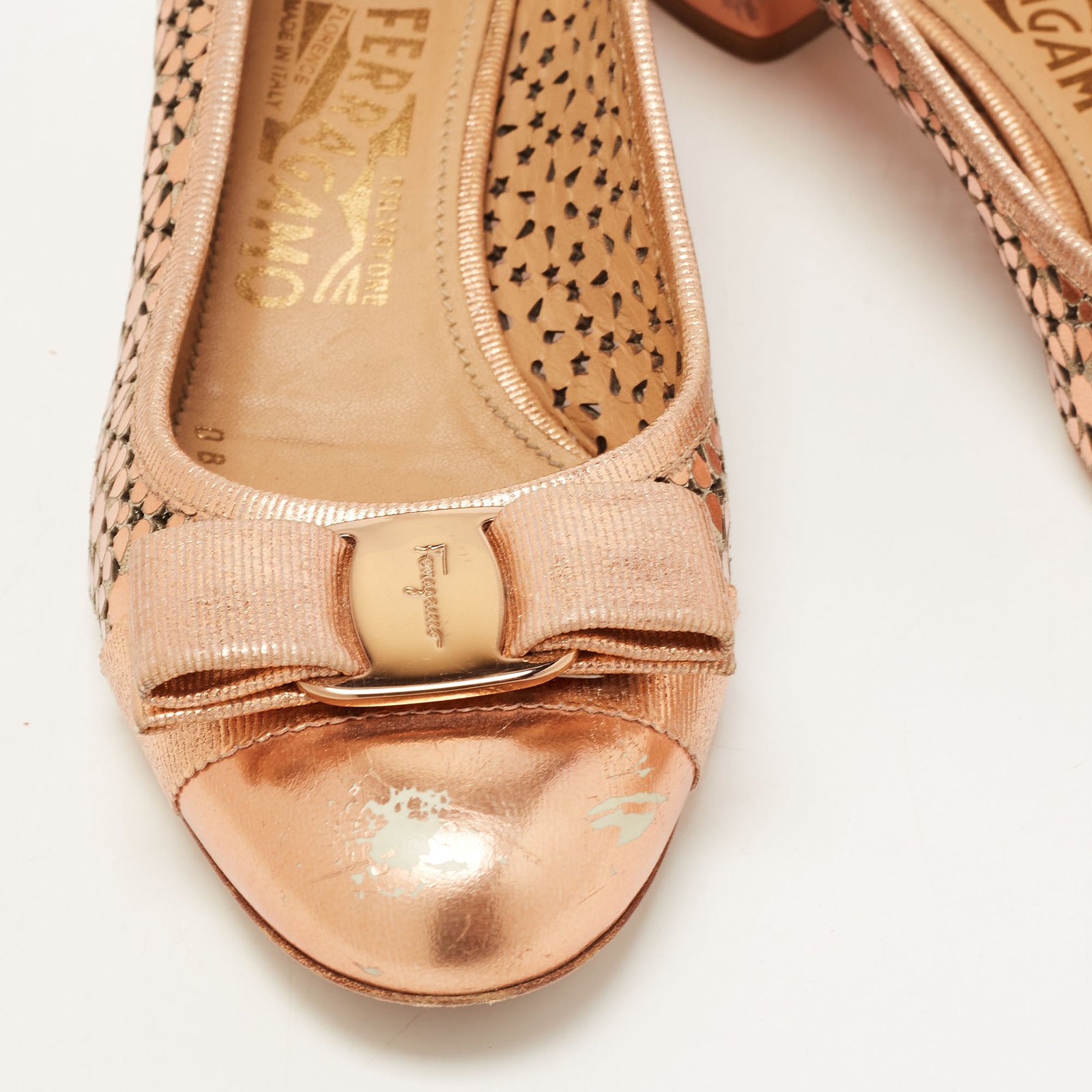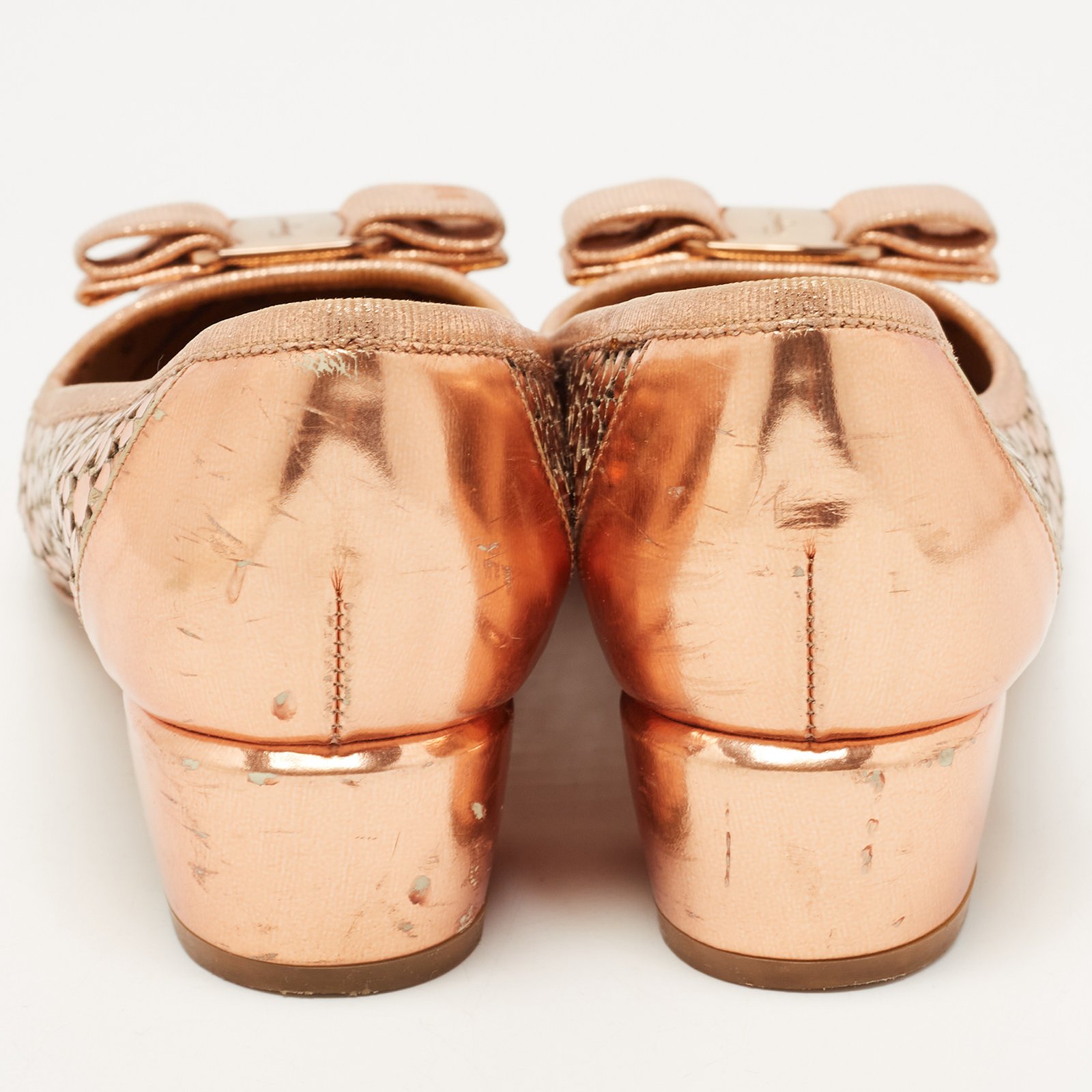 Salvatore Ferragamo Metallic Leather Laser Cut Vara Bow Pumps Size 36.5