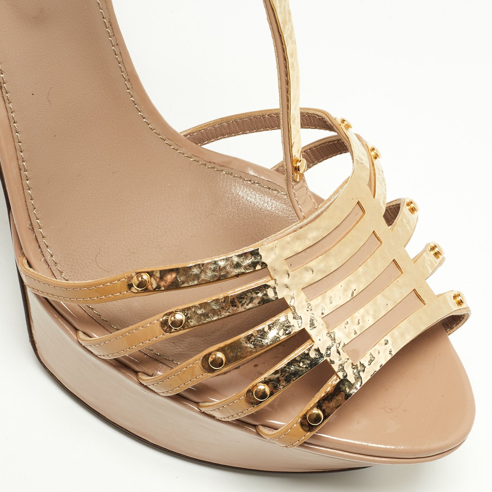 Sergio Rossi Beige Patent Leather Strappy Platform Sandals Size 40 - Image 2