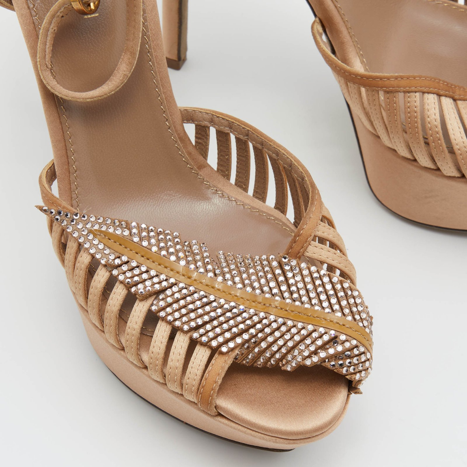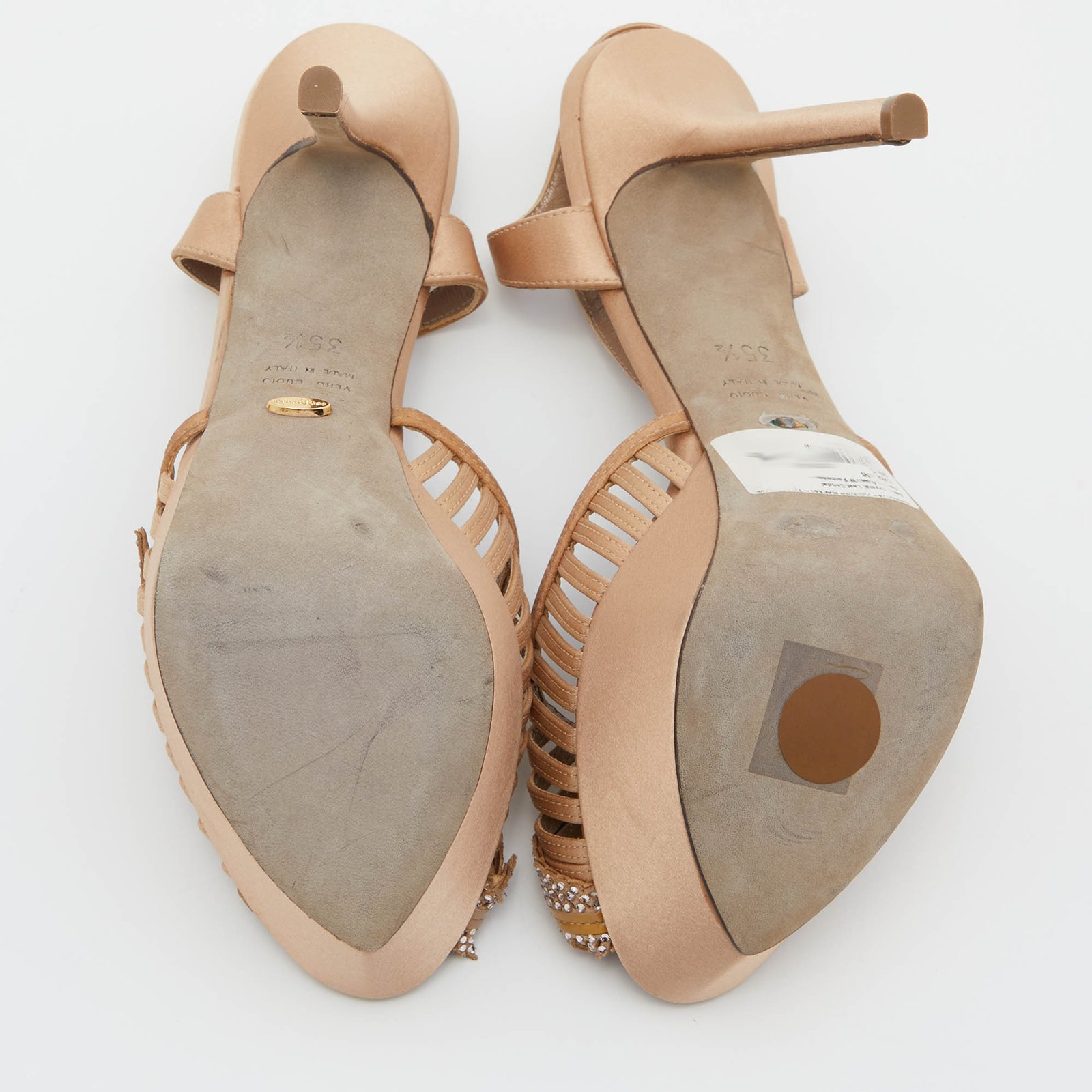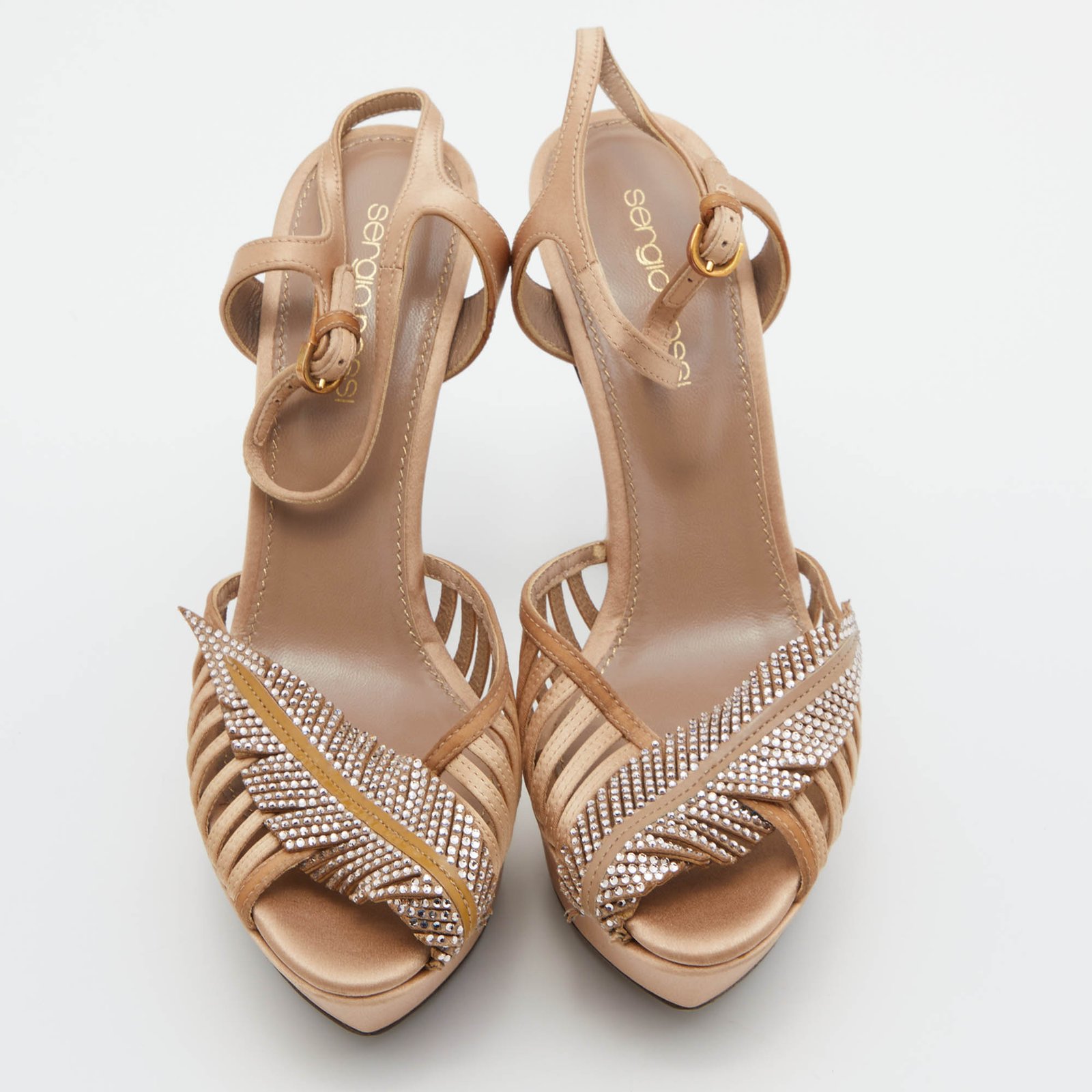Sergio Rossi Light Brown Satin Crystal Embellished Ankle Strap Sandals Size 35.5