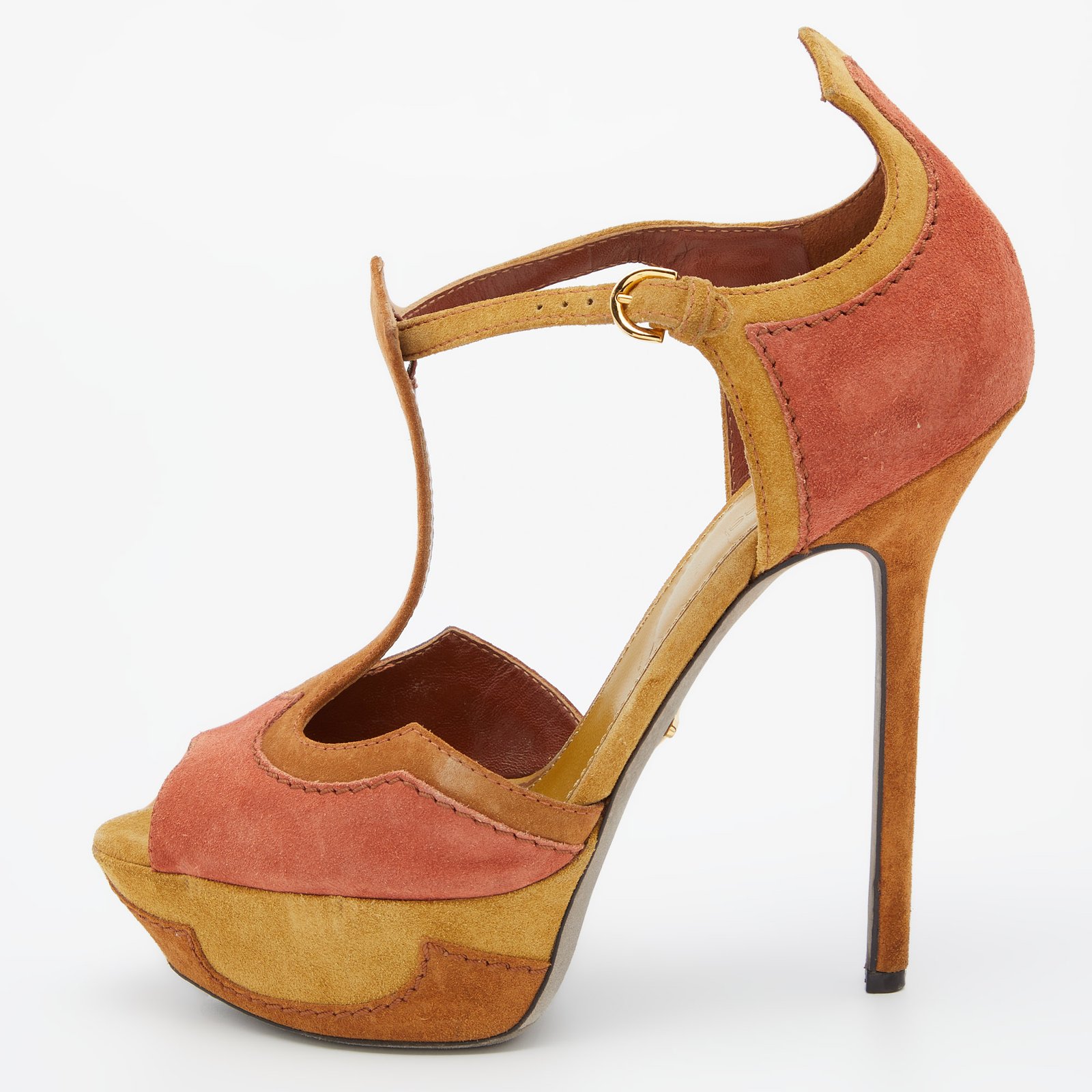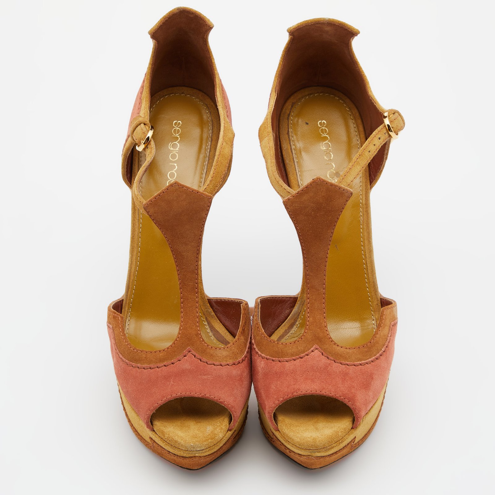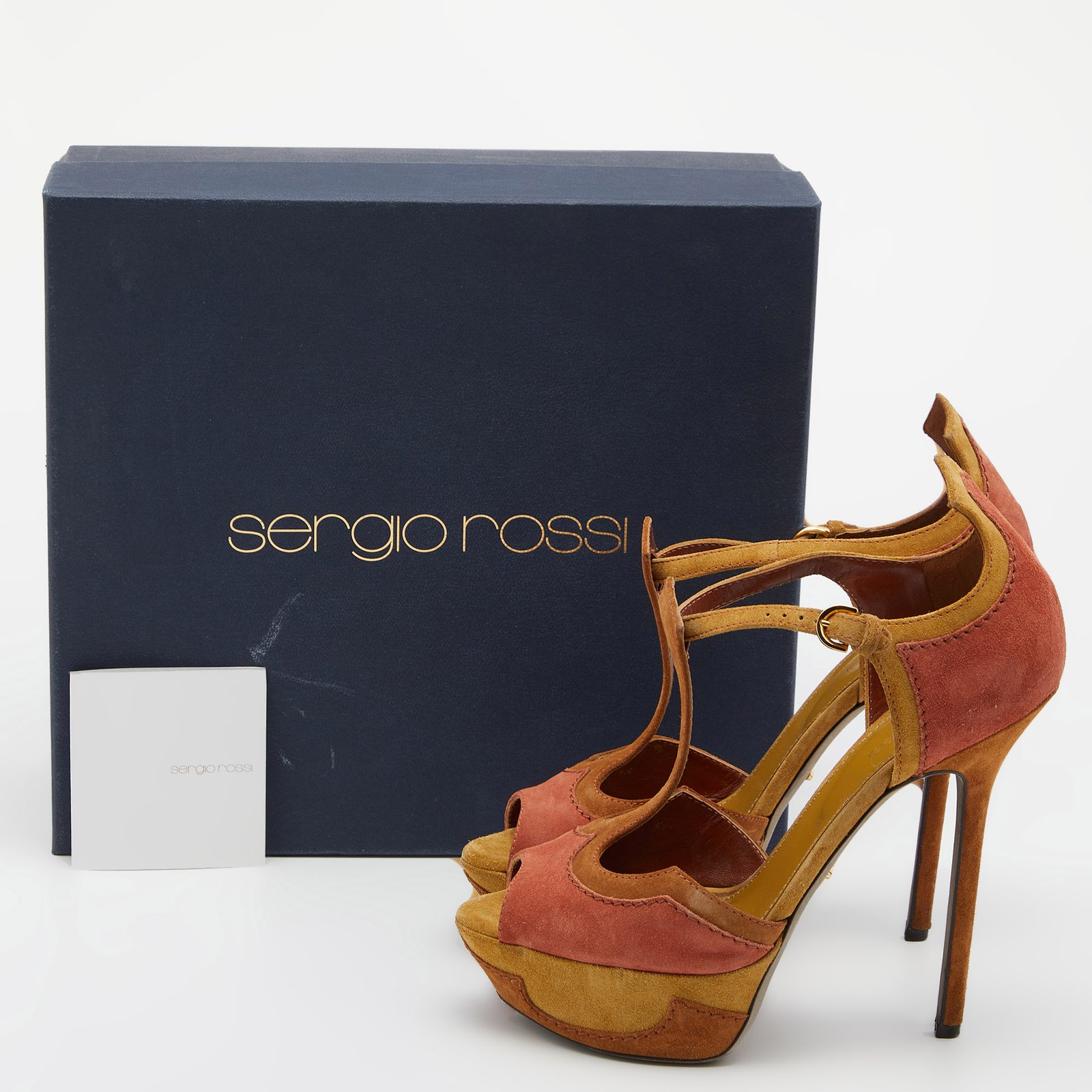 Sergio Rossi Tri Color Suede Ankle Strap Platform Sandals Size 38.5
