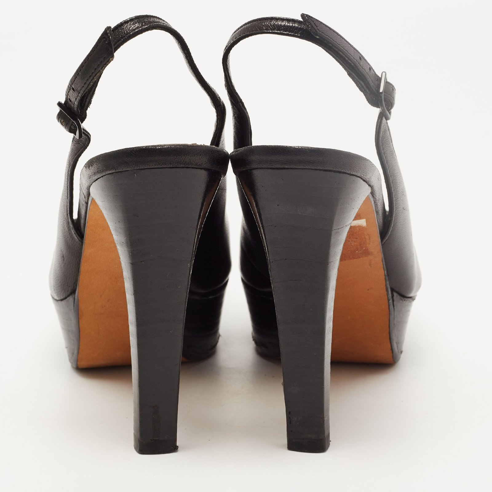 Stuart Weitzman Black Leather Platform Slingback Pumps Size 36 - Image 3