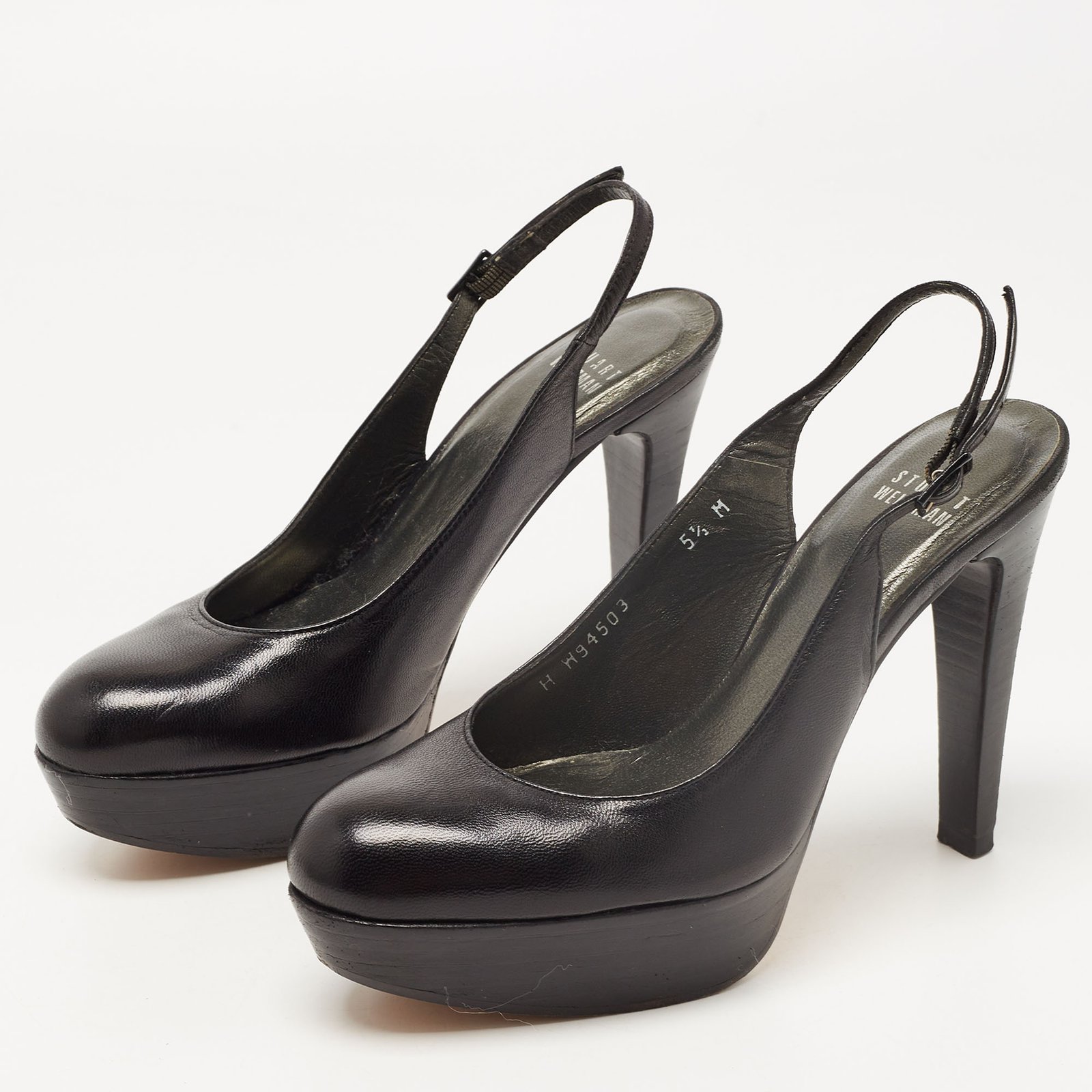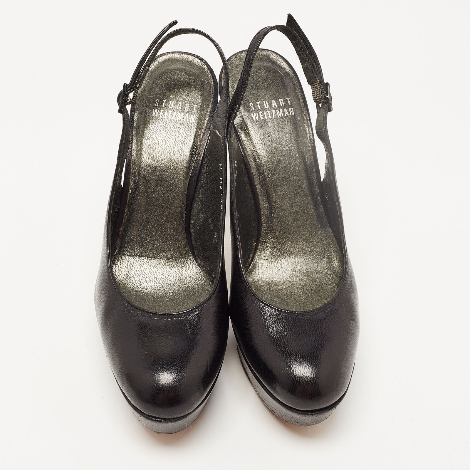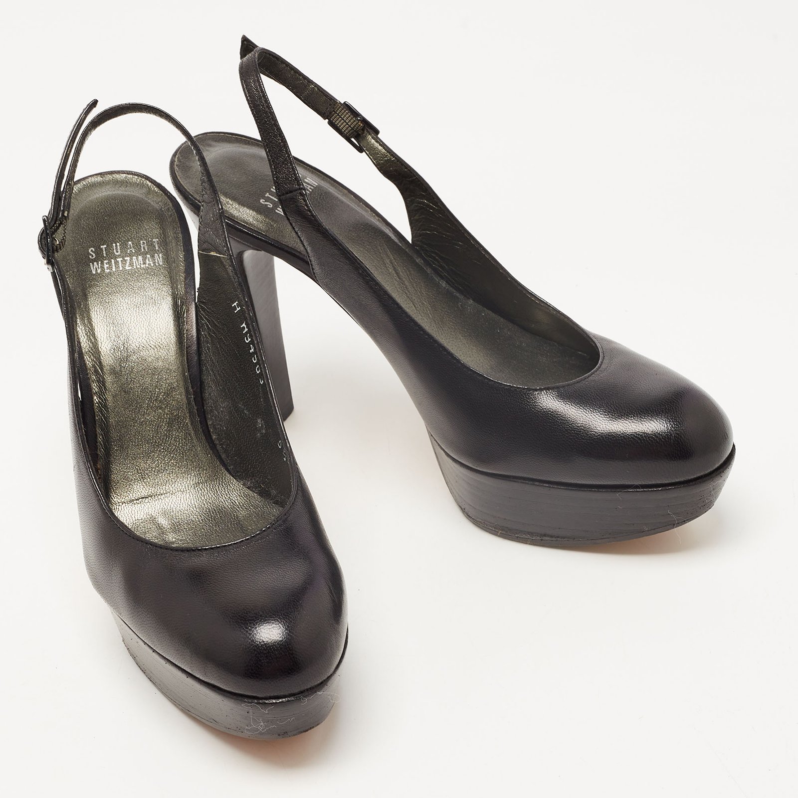 Stuart Weitzman Black Leather Platform Slingback Pumps Size 36 - Image 4