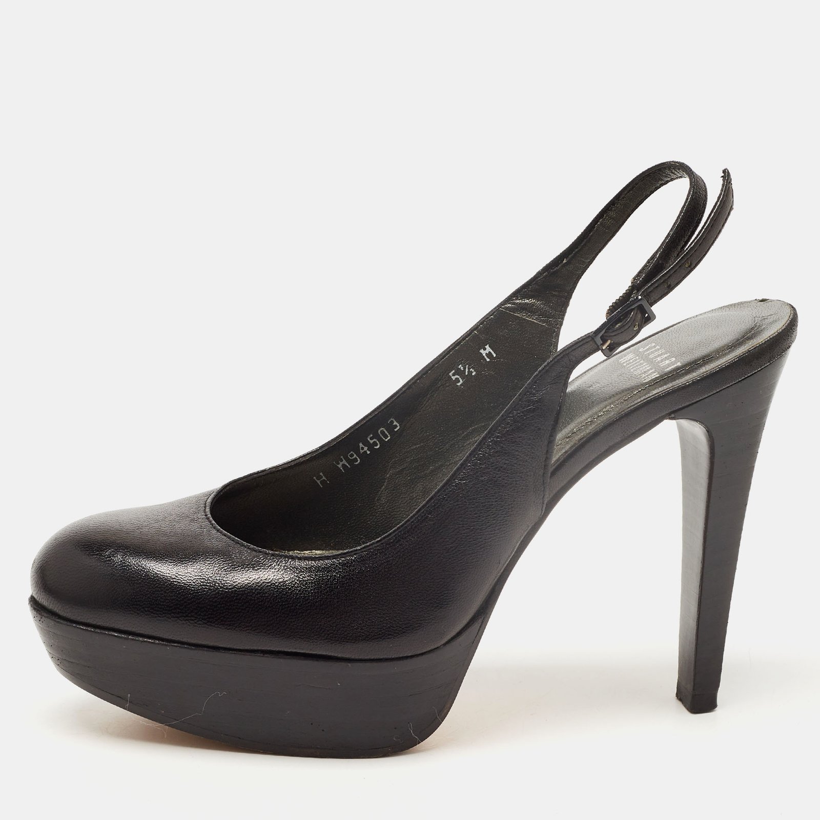 Stuart Weitzman Black Leather Platform Slingback Pumps Size 36