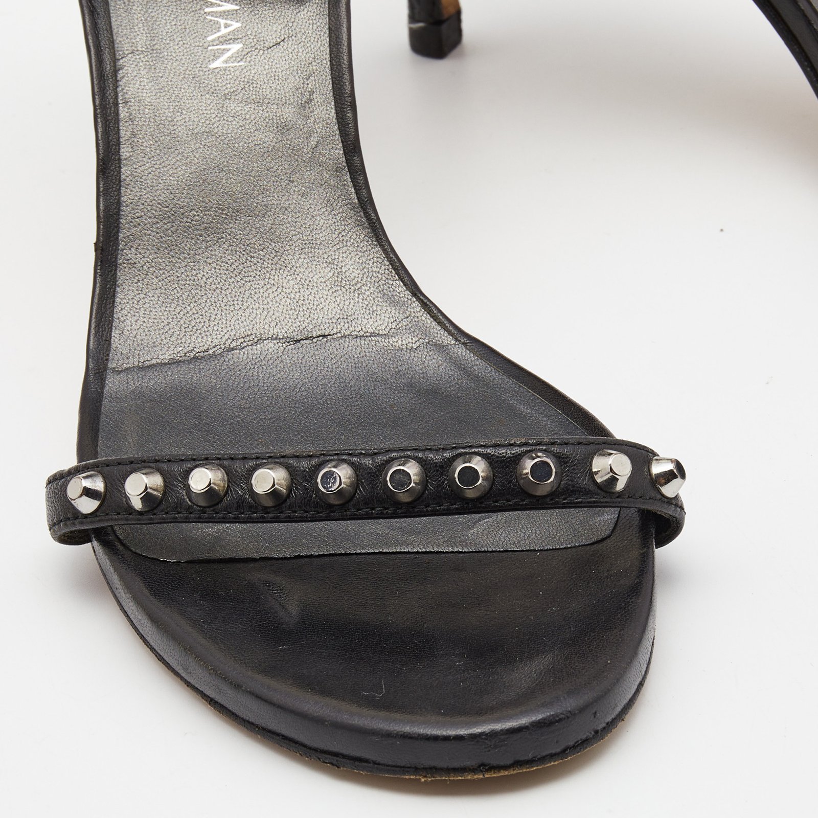 Stuart Weitzman Black Leather Studded Ankle Strap Sandals Size 39