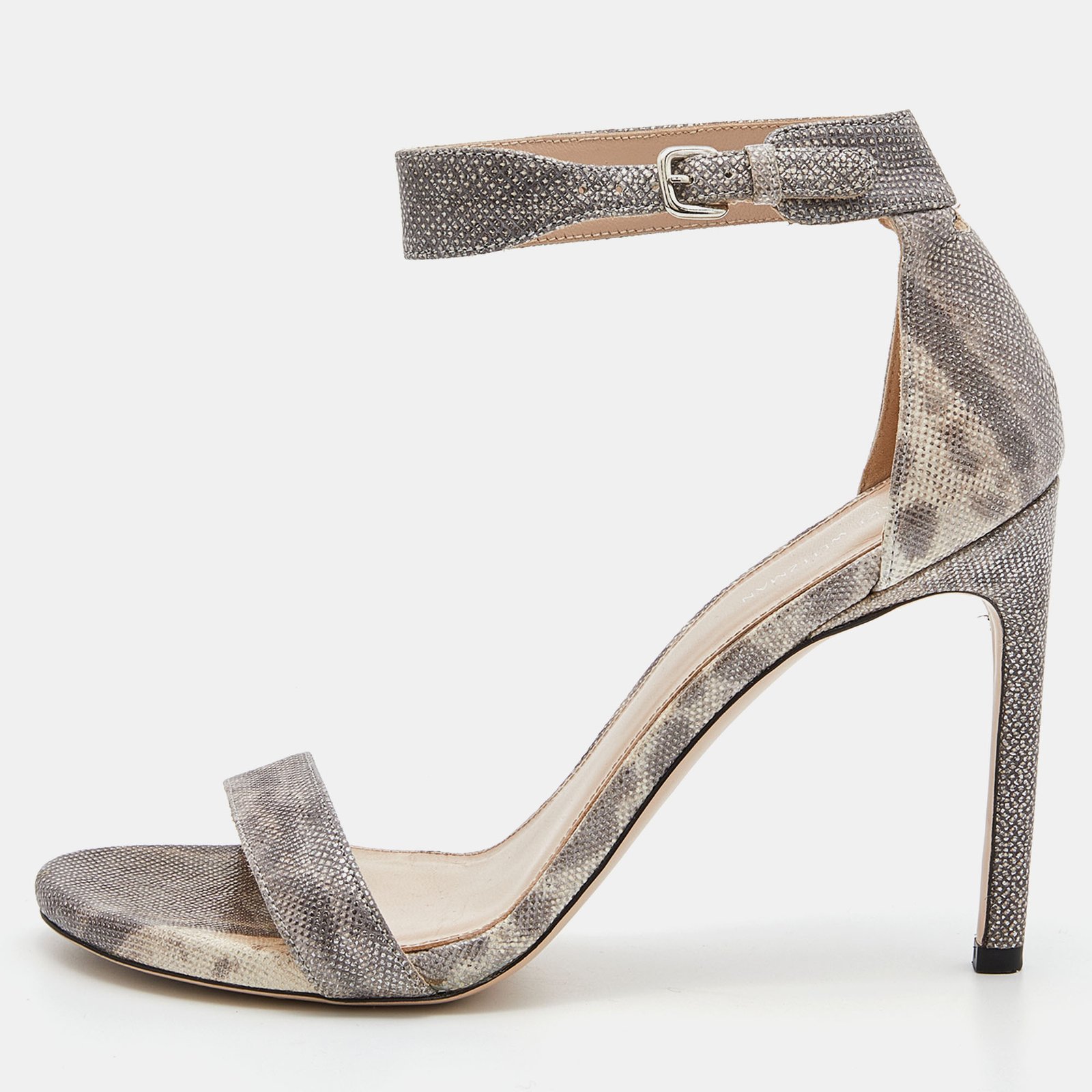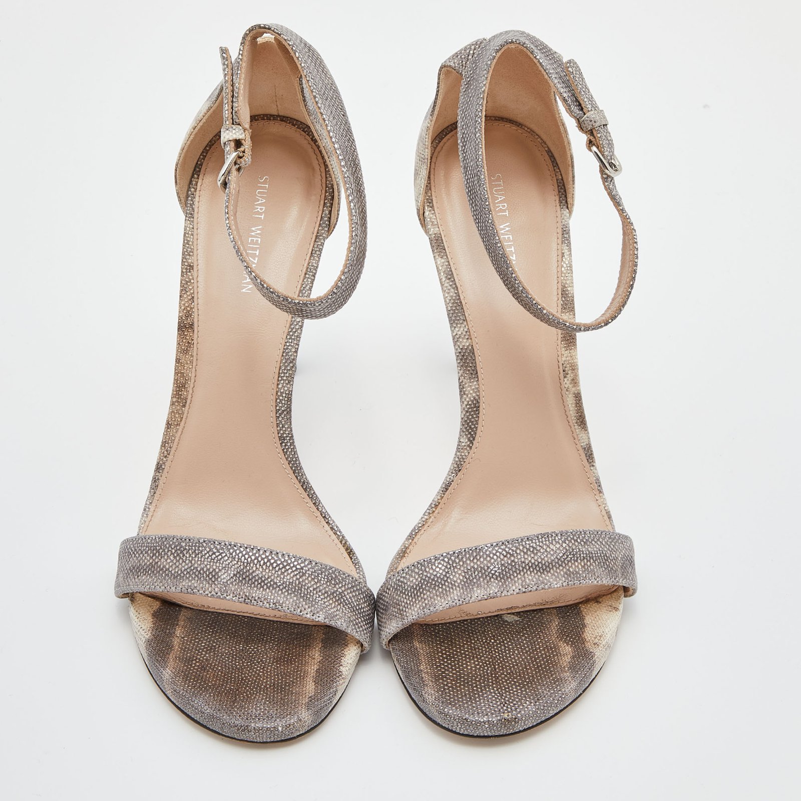 Stuart Weitzman Grey/Beige Karung Leather Ankle Strap Open Toe Sandals Size 39.5