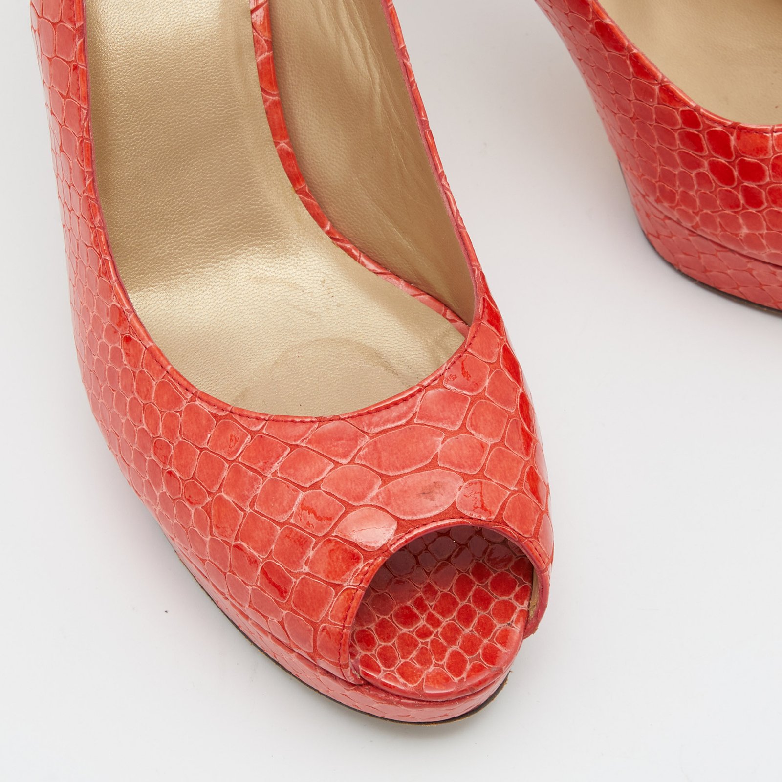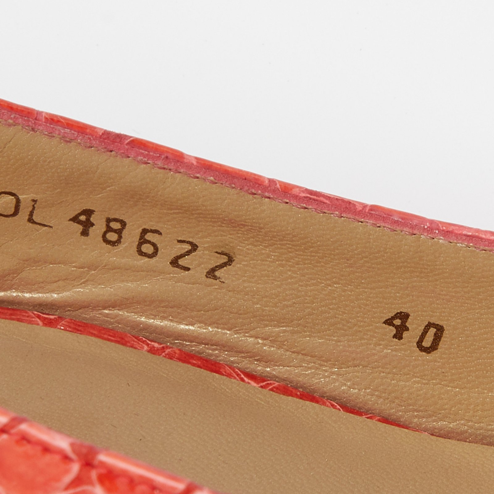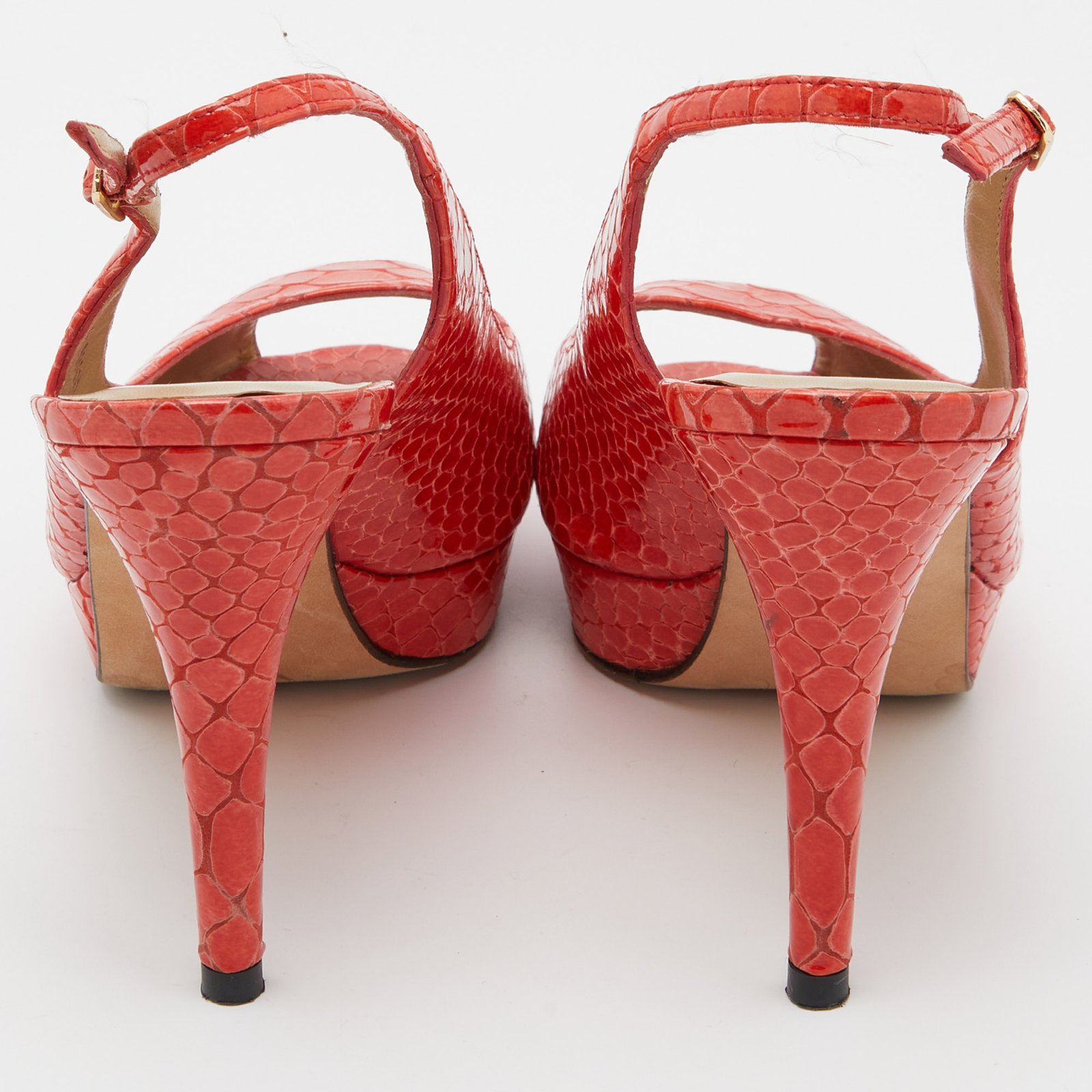 Stuart Weitzman Orange Python Embossed Leather Peep Toe Platform Slingback Pumps Size 40