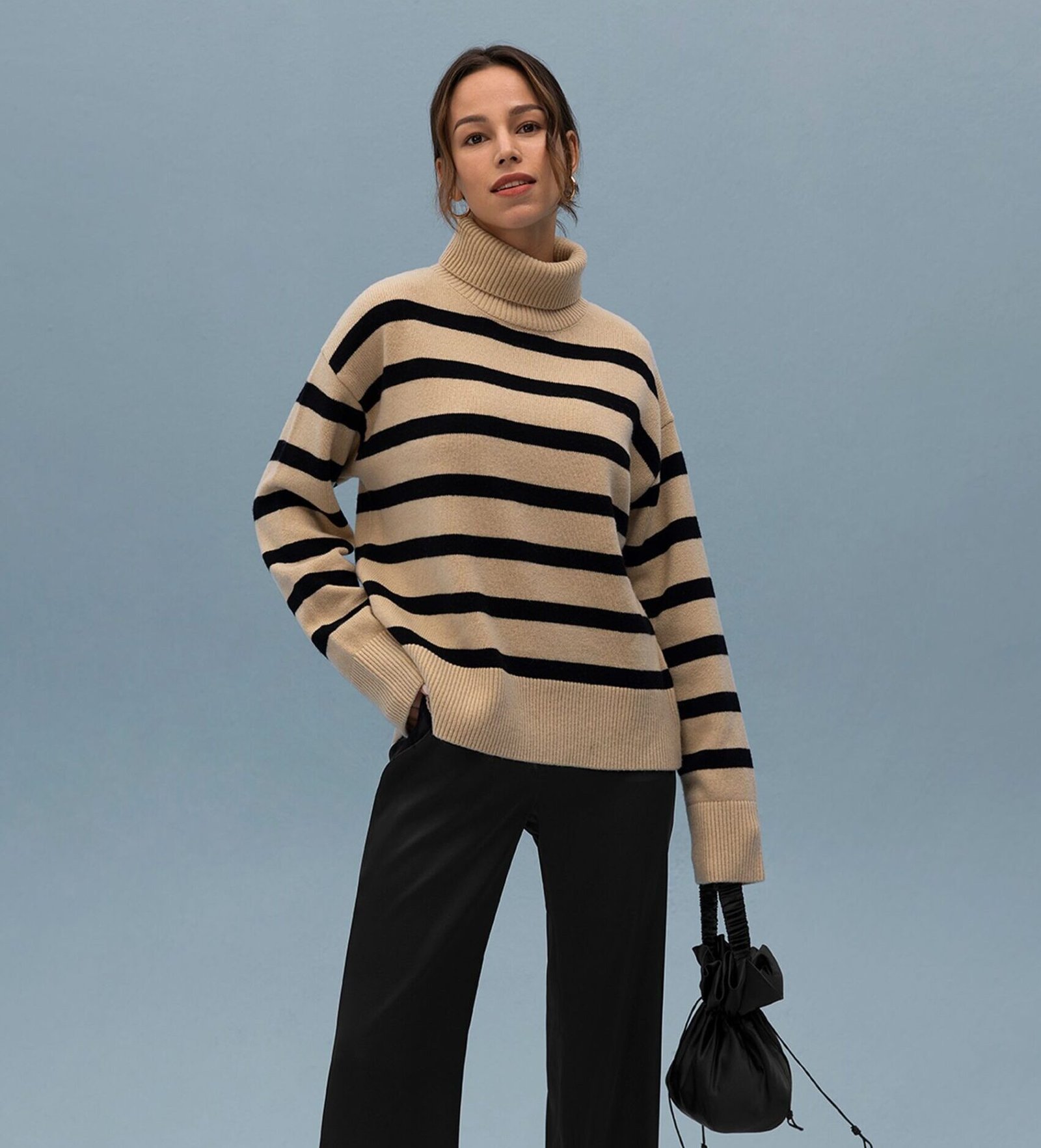 Elevate your casual style with this chic striped sweater, perfect for work or weekend outings. Ideal for the cooler months of winter, it combines comfort and flair seamlessly.
