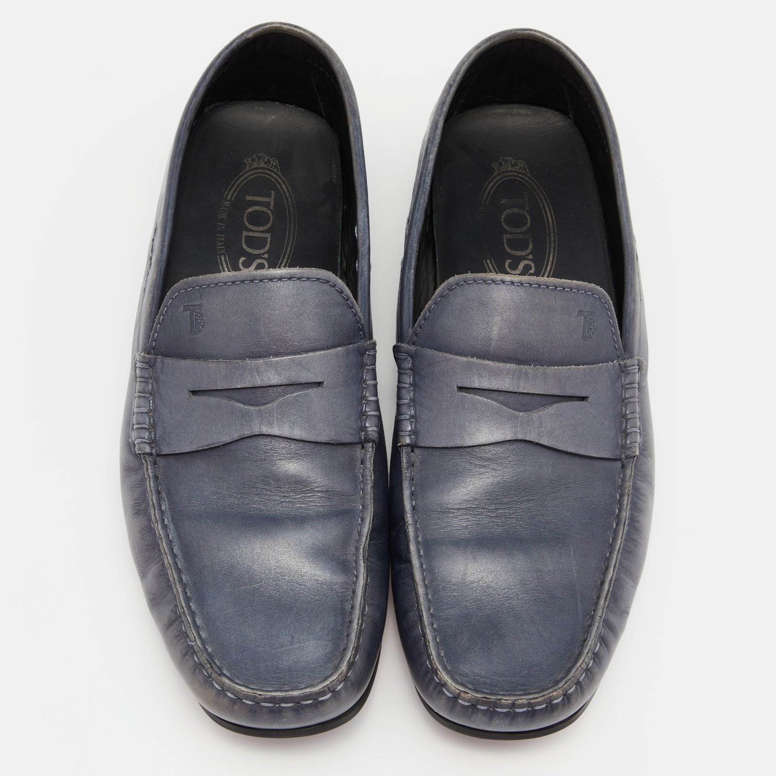 Tods Blue Leather Slip On Loafers Size 41.5