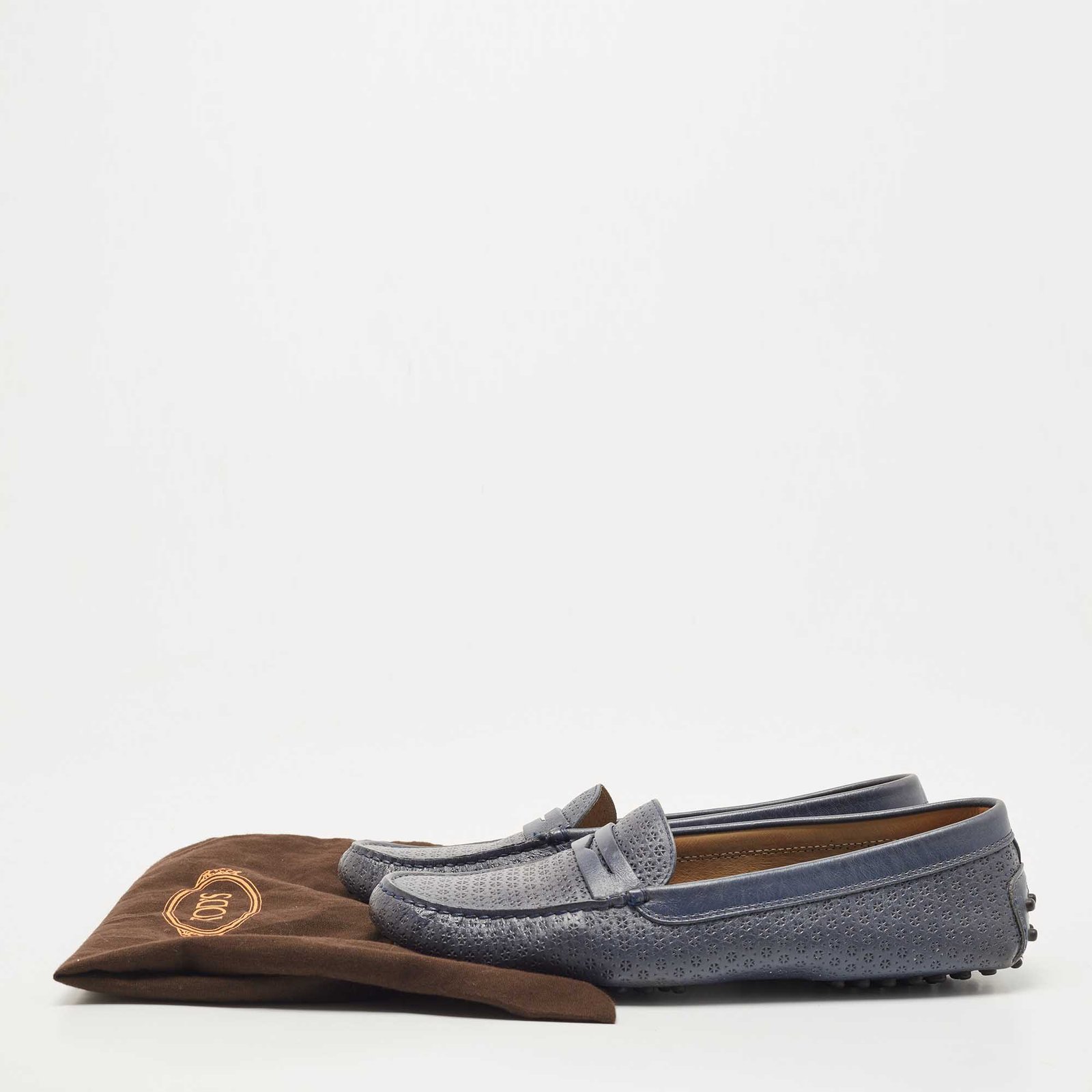 Tod's Blue Textured Leather Penny Slip On Loafers Size 40.5 - Image 8