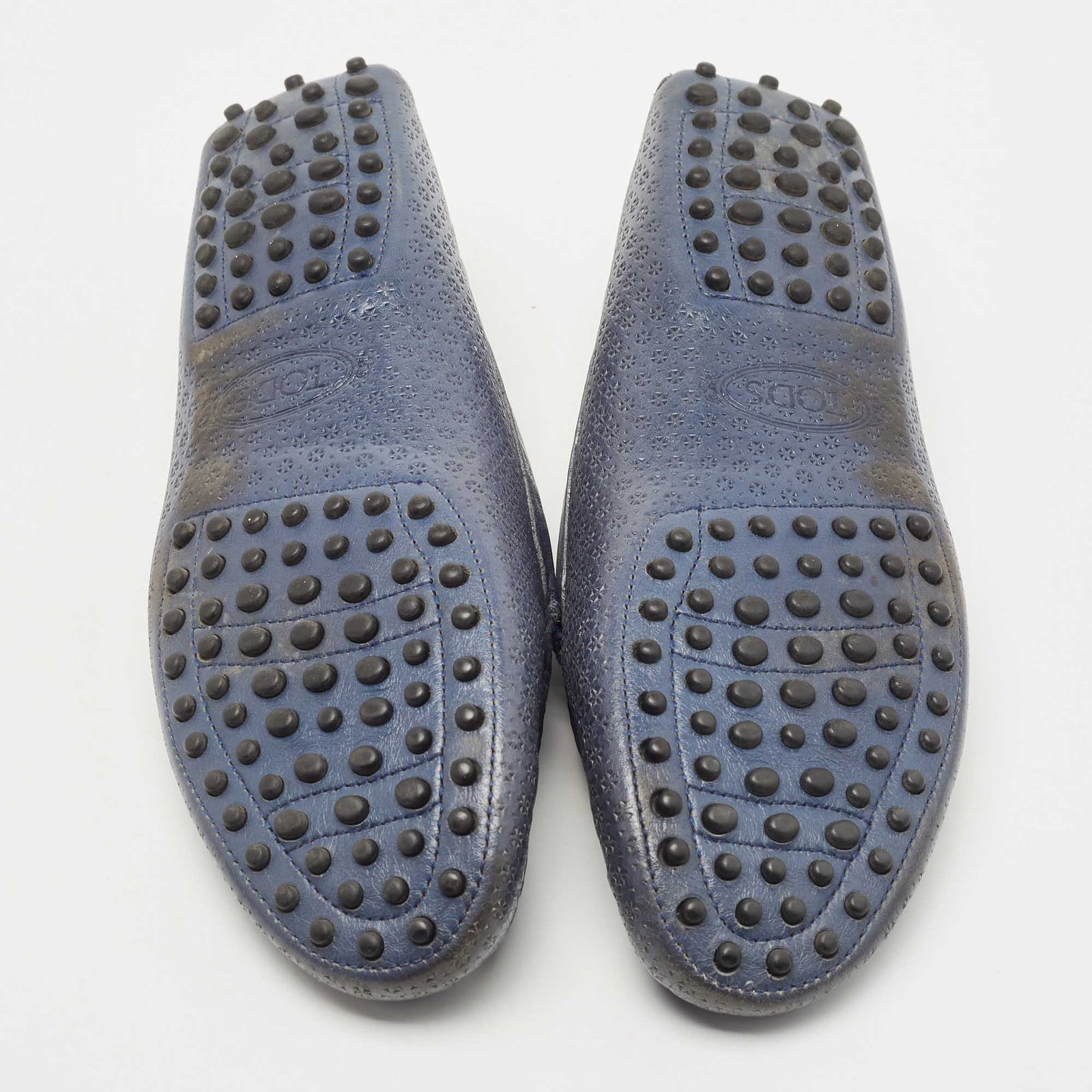 Tod's Blue Textured Leather Penny Slip On Loafers Size 40.5 - Image 9