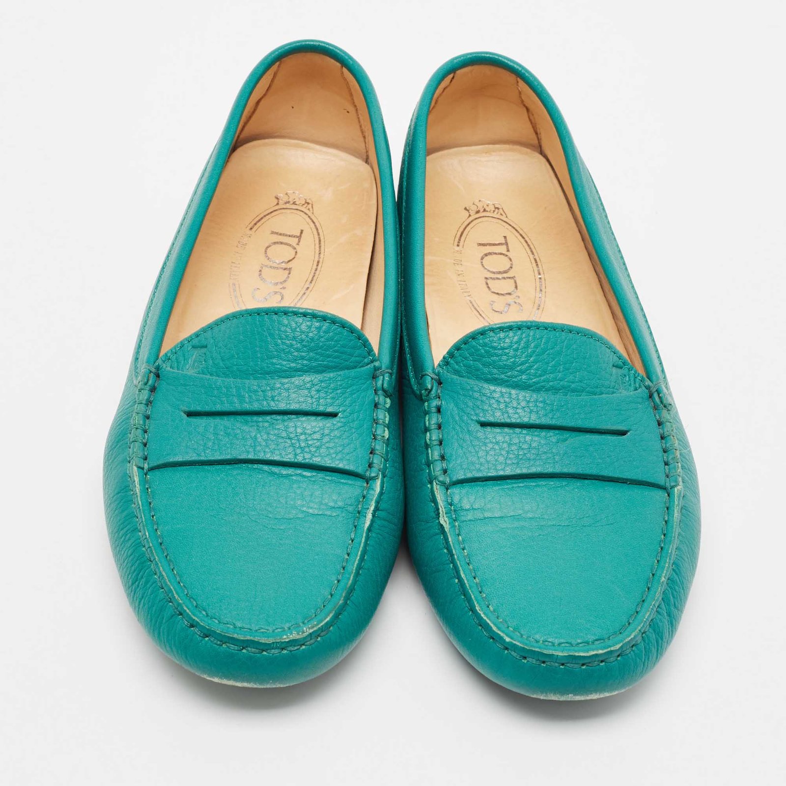 Tod’s Green Leather Gommino Slip On Loafers Size 37