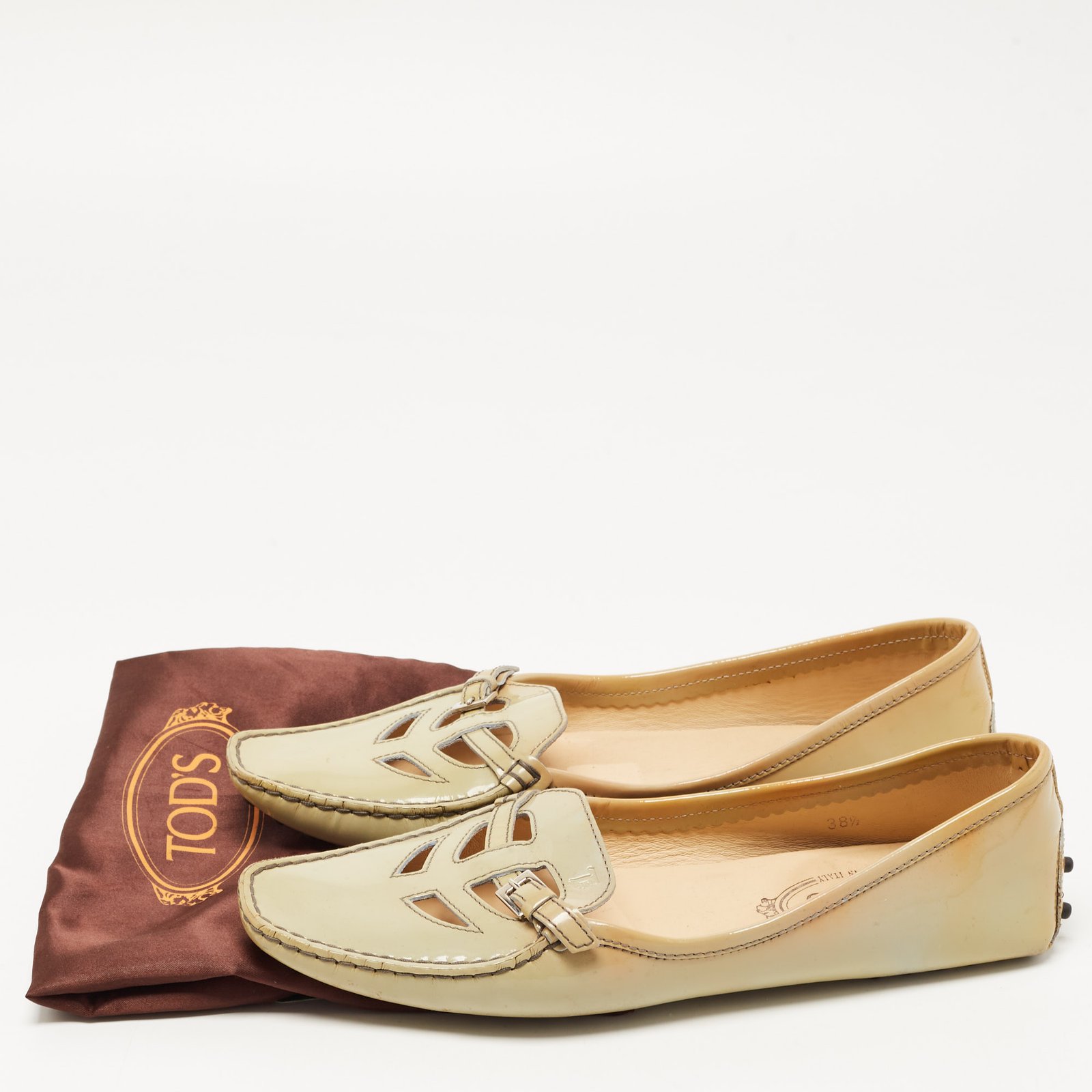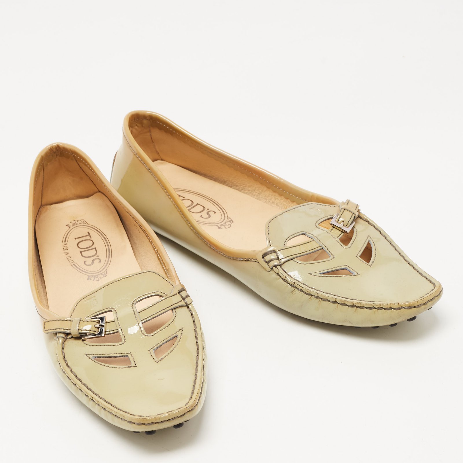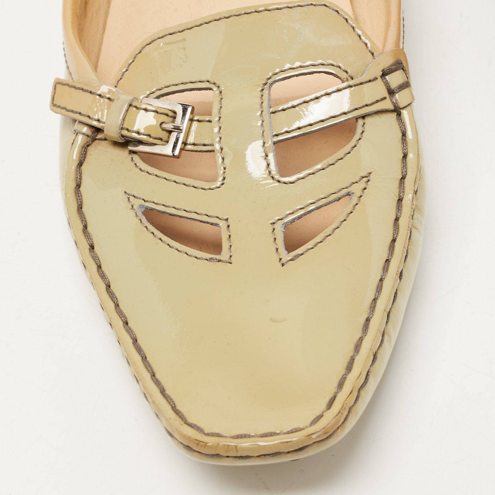 Tod’s Grey Patent Pointed Toe Buckle Loafers Size 38.5