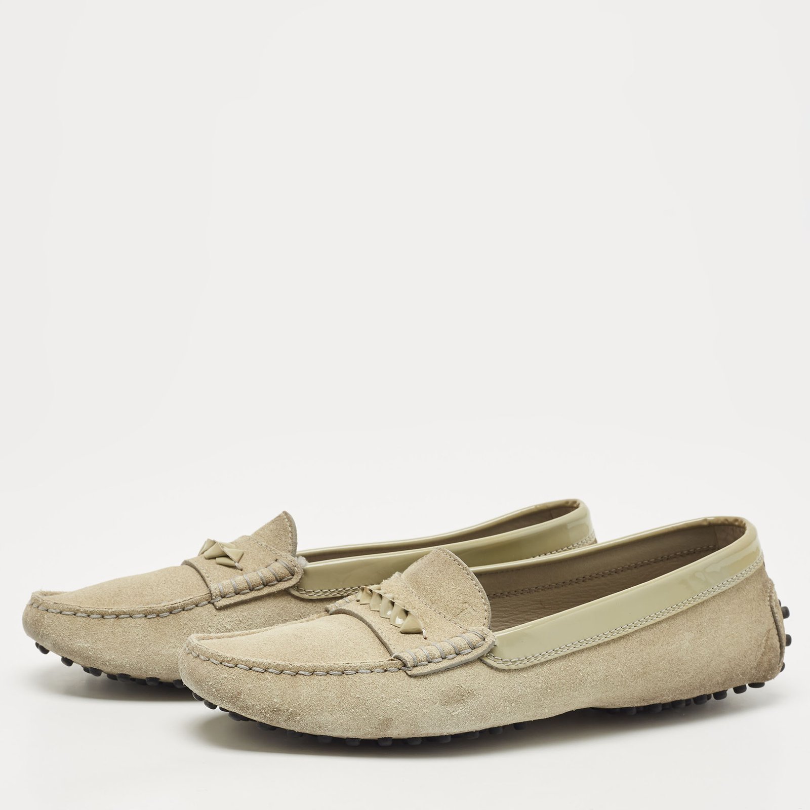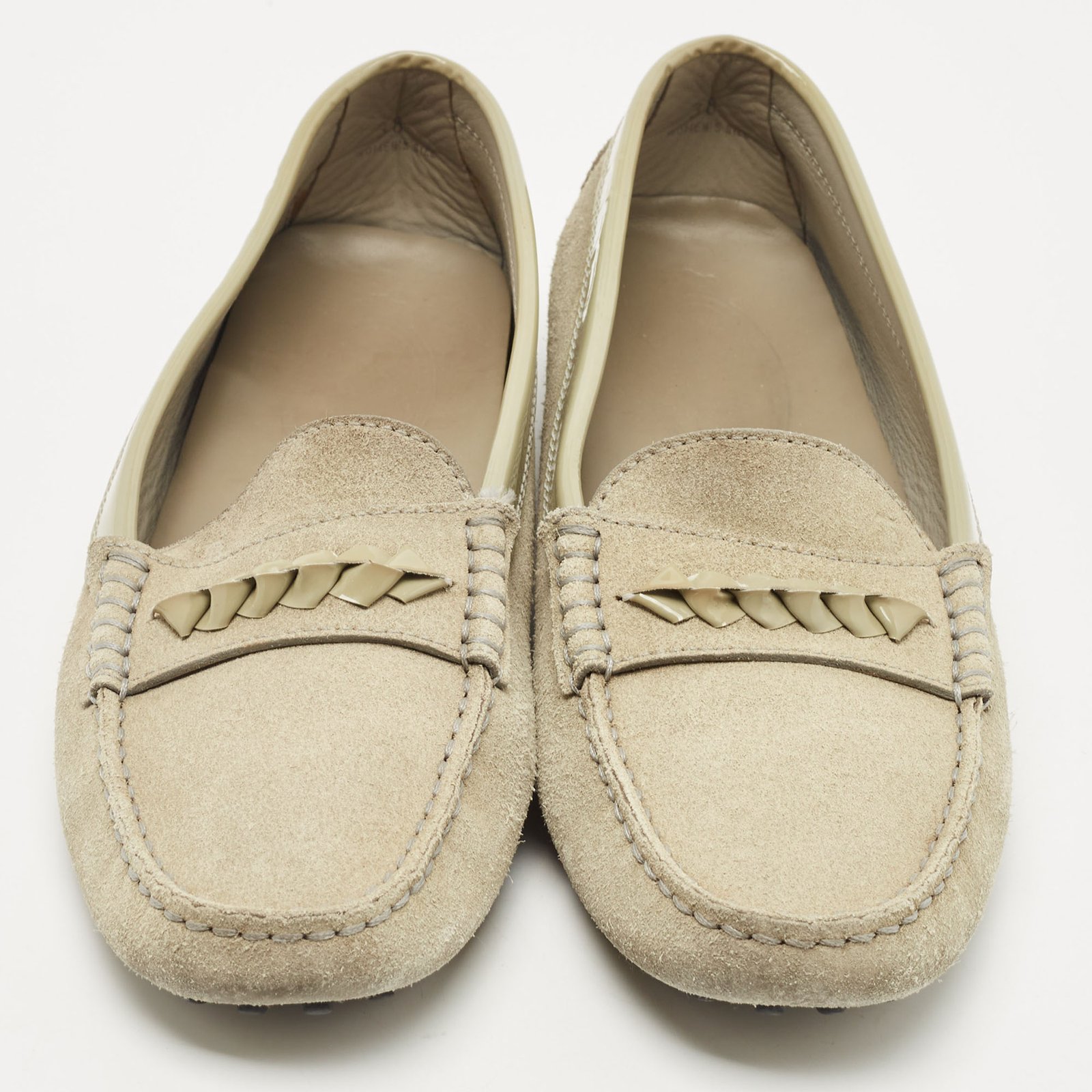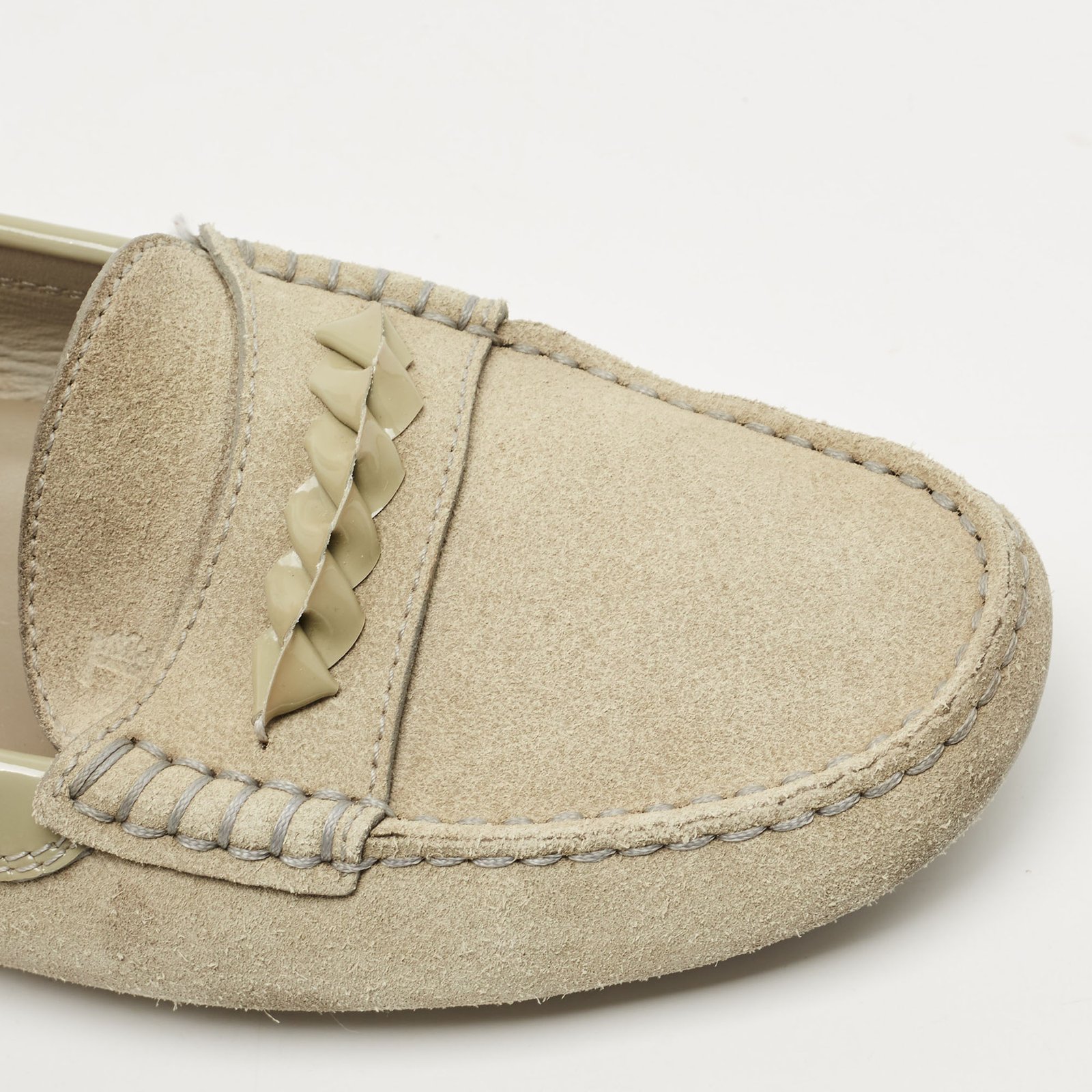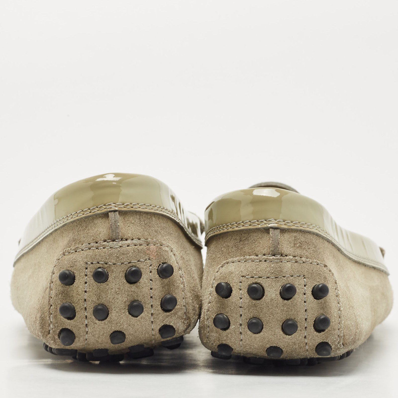 Tod’s Grey Suede and Patent Leather Slip On Loafers Size 38
