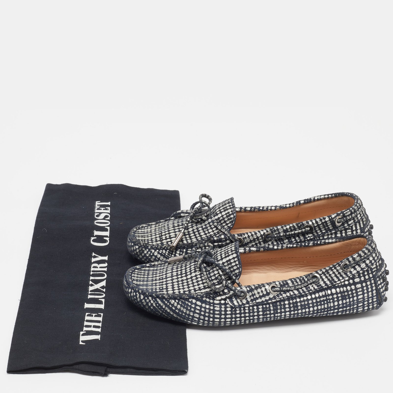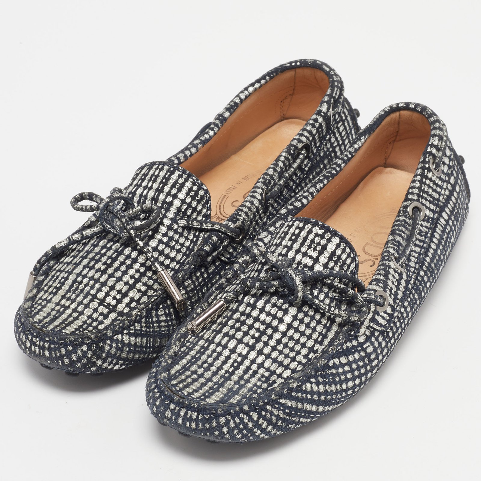 Tod’s Silver/Black Textured Suede Bow Loafers Size 36