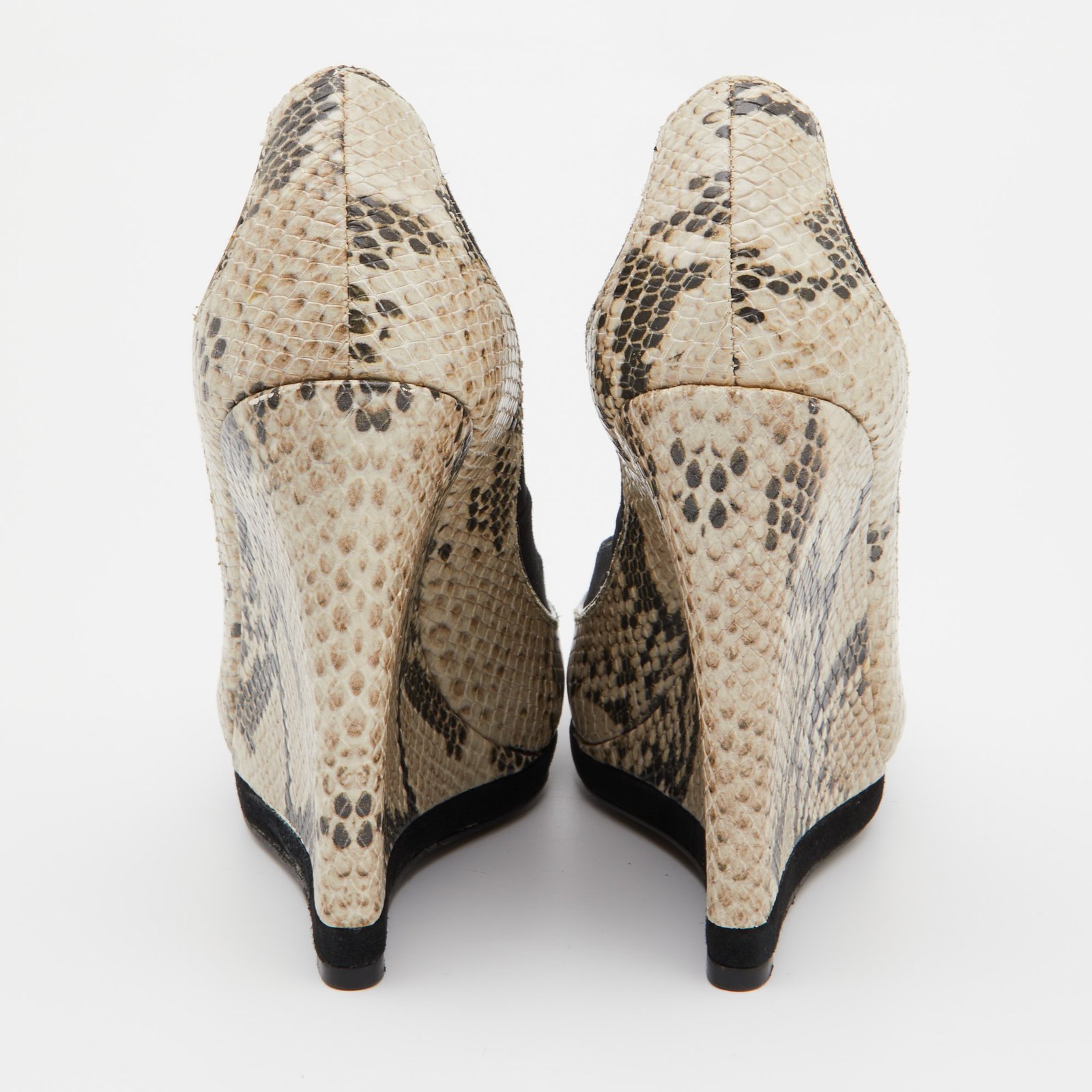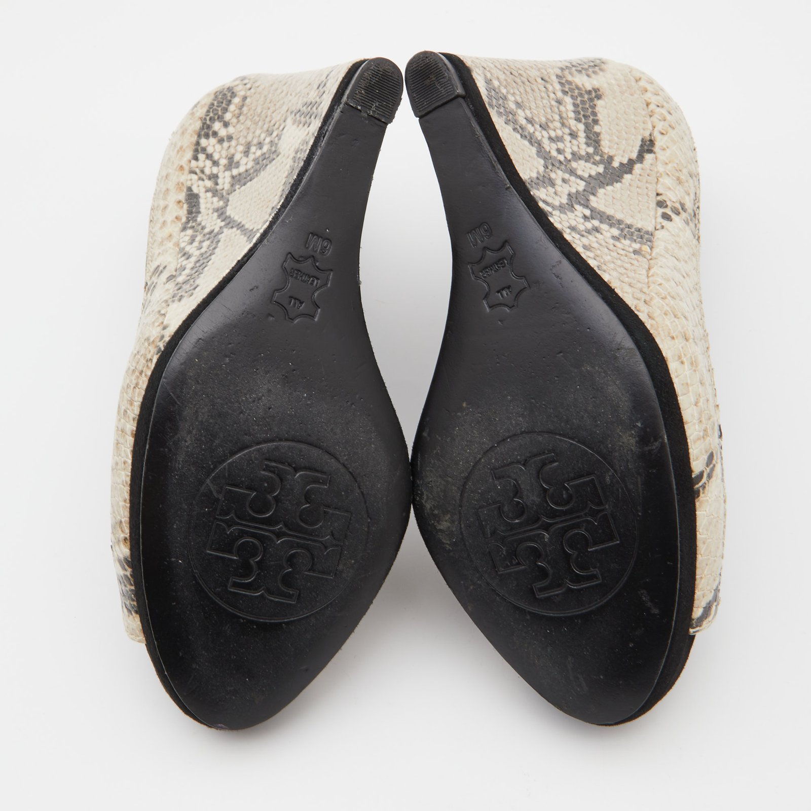 Tory Burch Black/Grey Suede and Python Embossed Leather Sandra Wedge Peep Toe Pumps Size 36.5