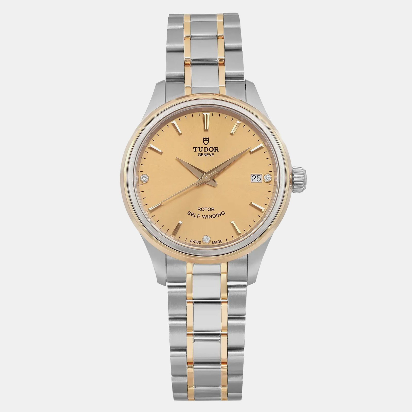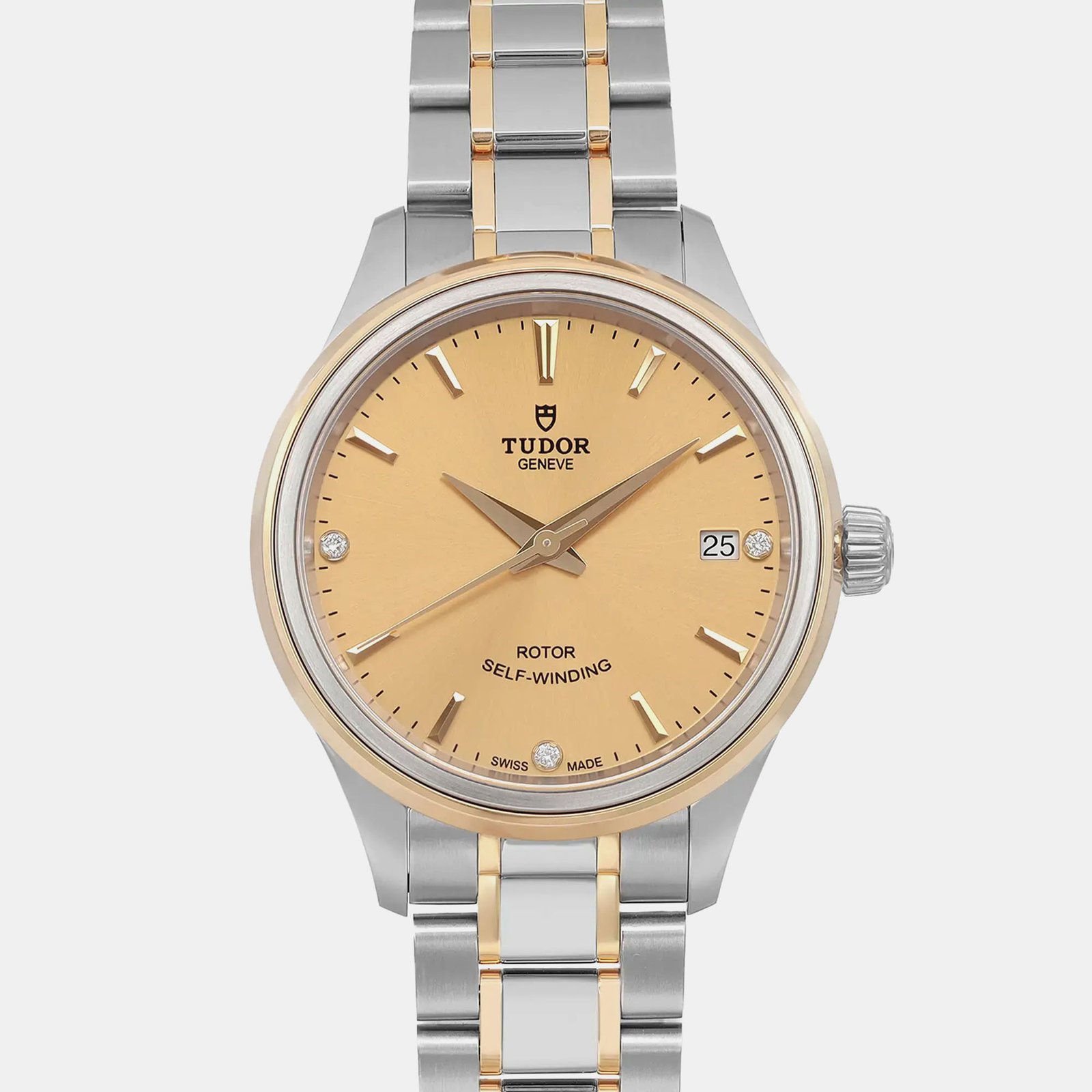 Tudor Champagne Diamond Yellow Gold Stainless Steel Style 12303-0004 Automatic Women’s Wristwatch 34 mm