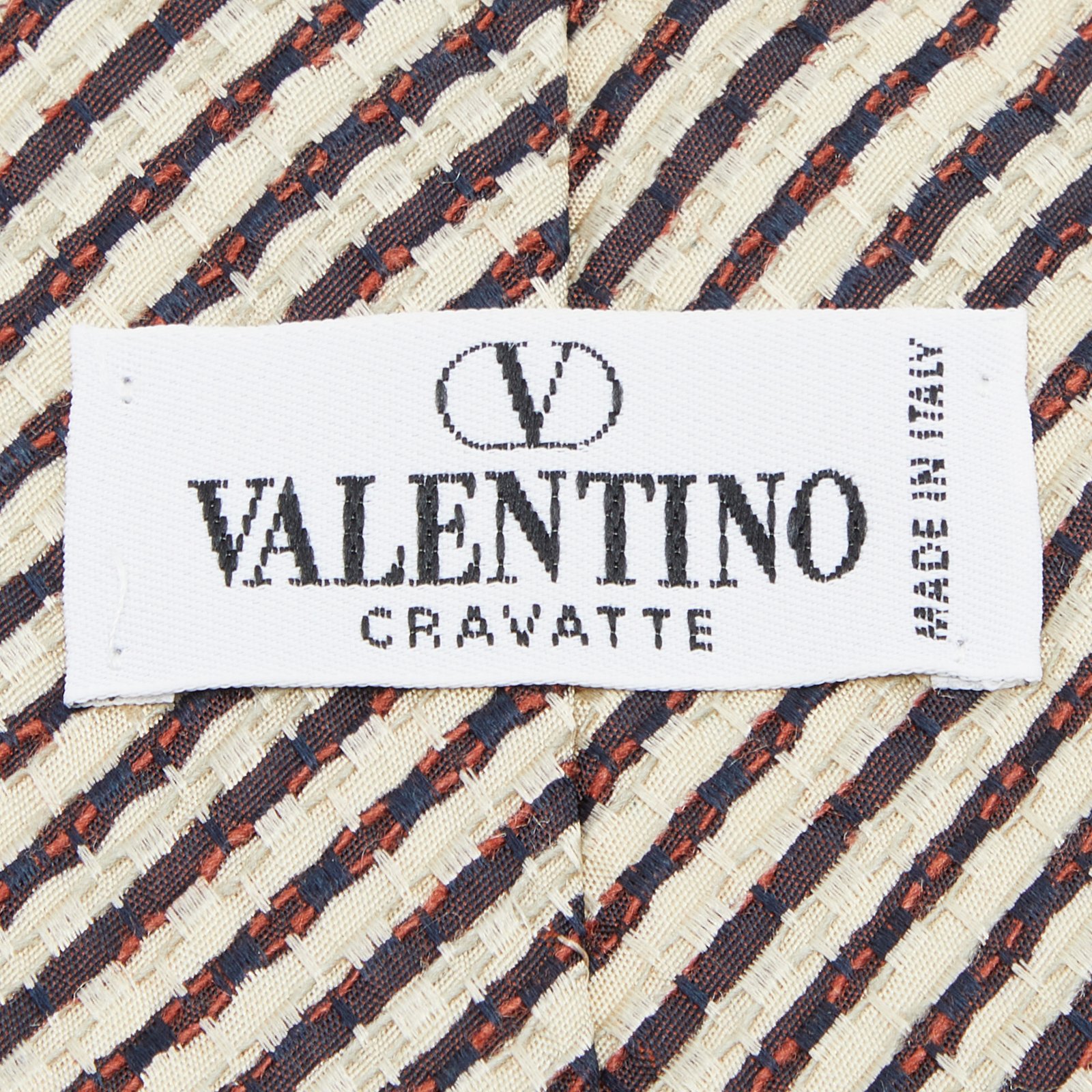 Valentino Cream & Brown Striped Silk Traditional Tie - Image 3