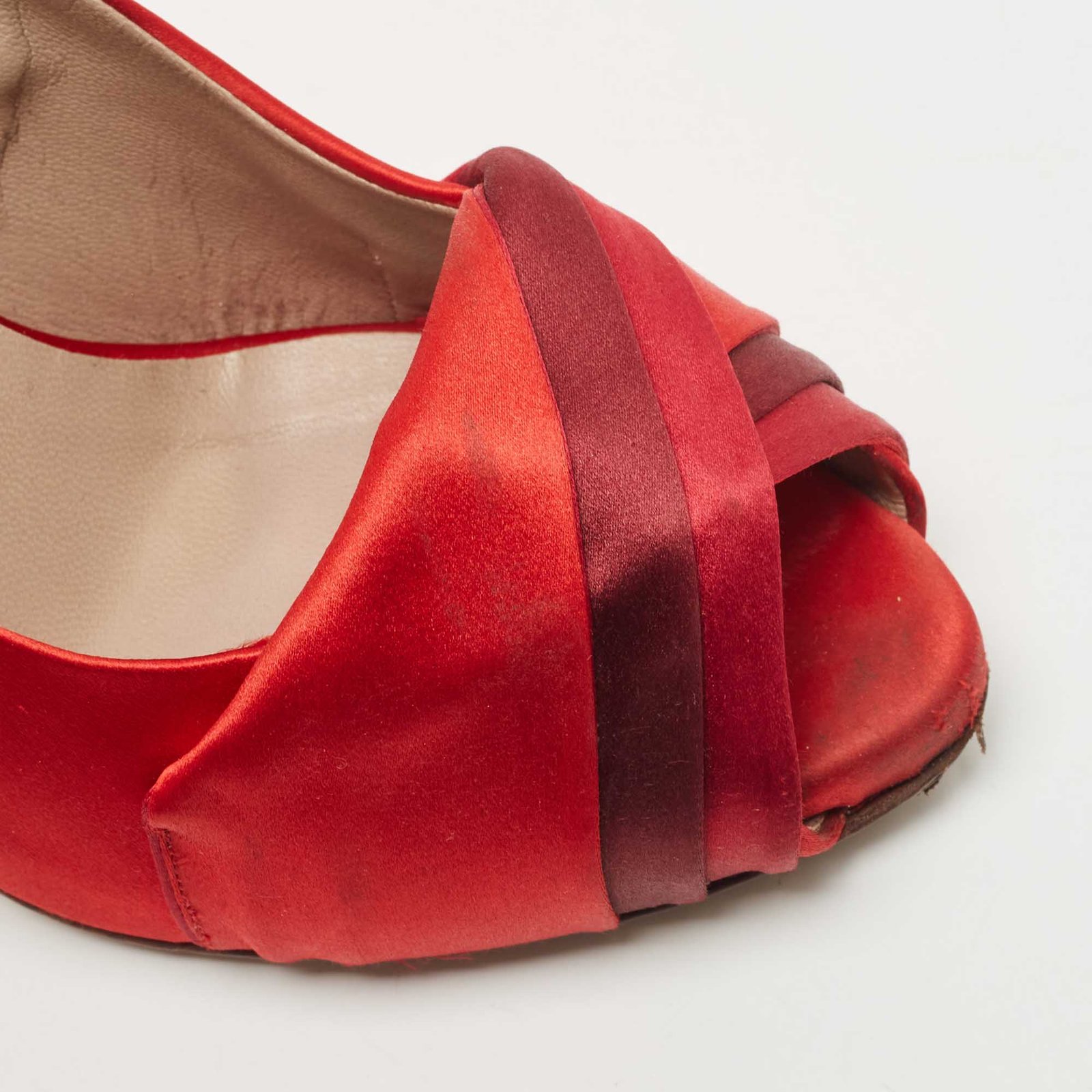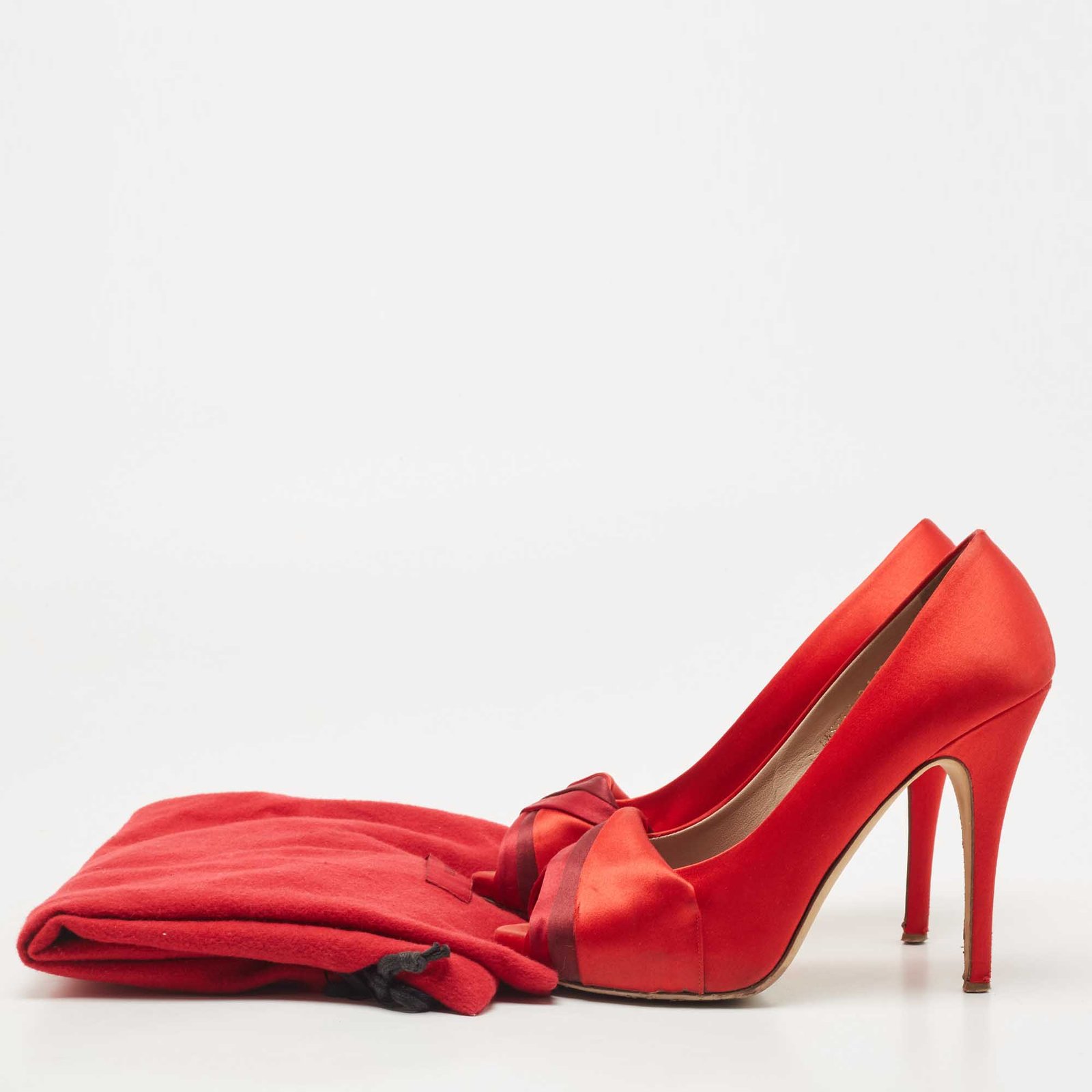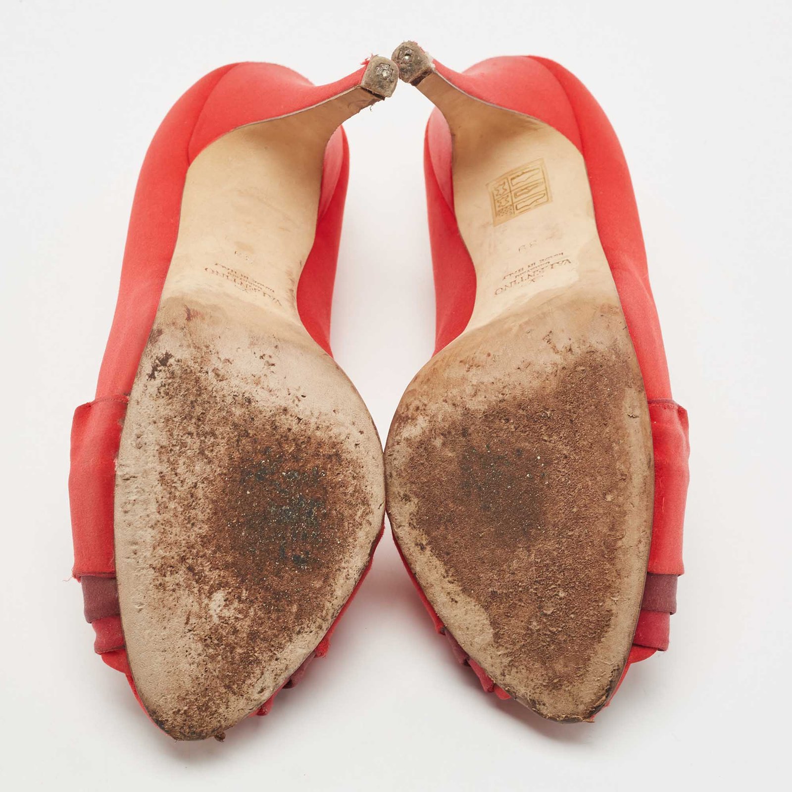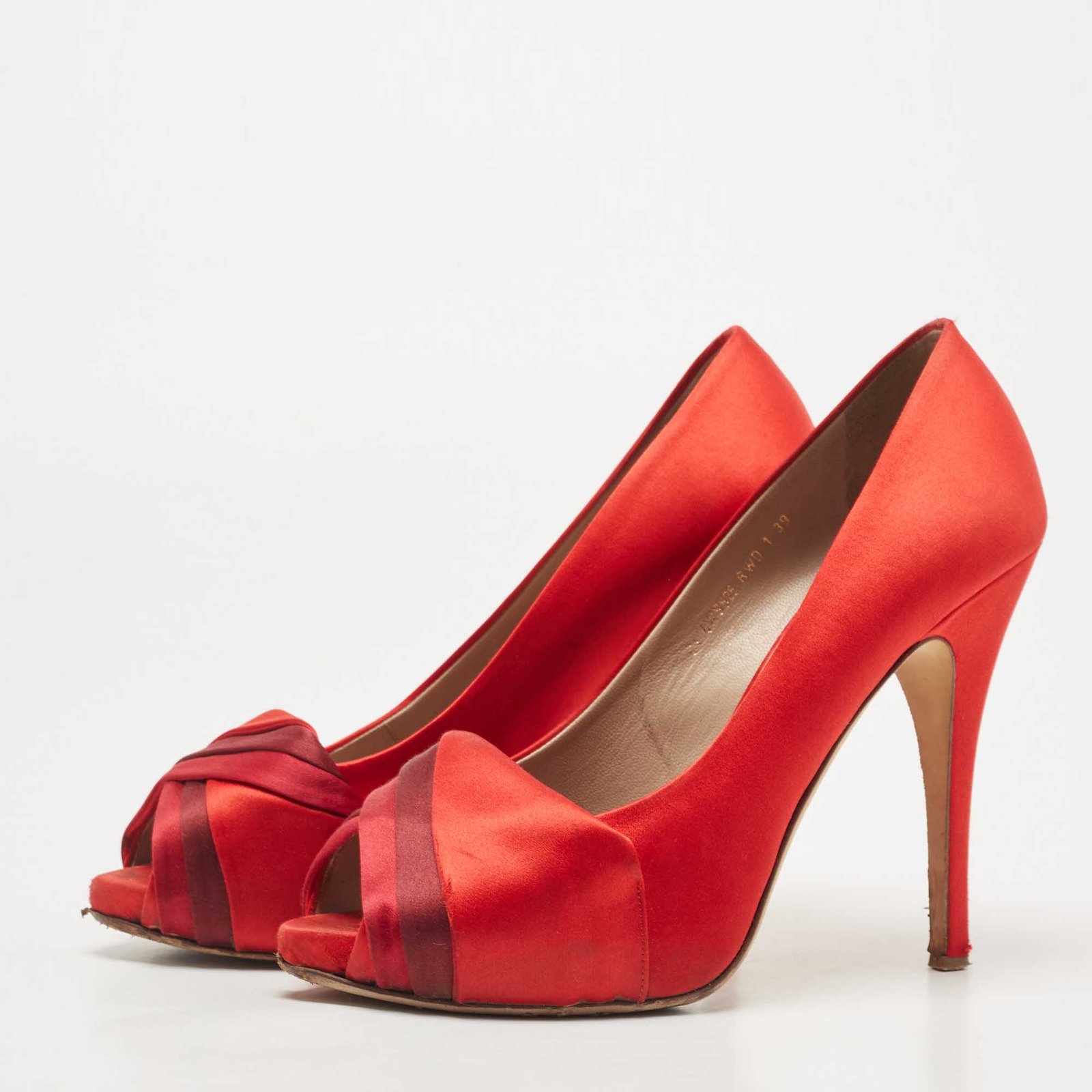 Valentino Red Pleated Satin Peep Toe Pumps Size 39