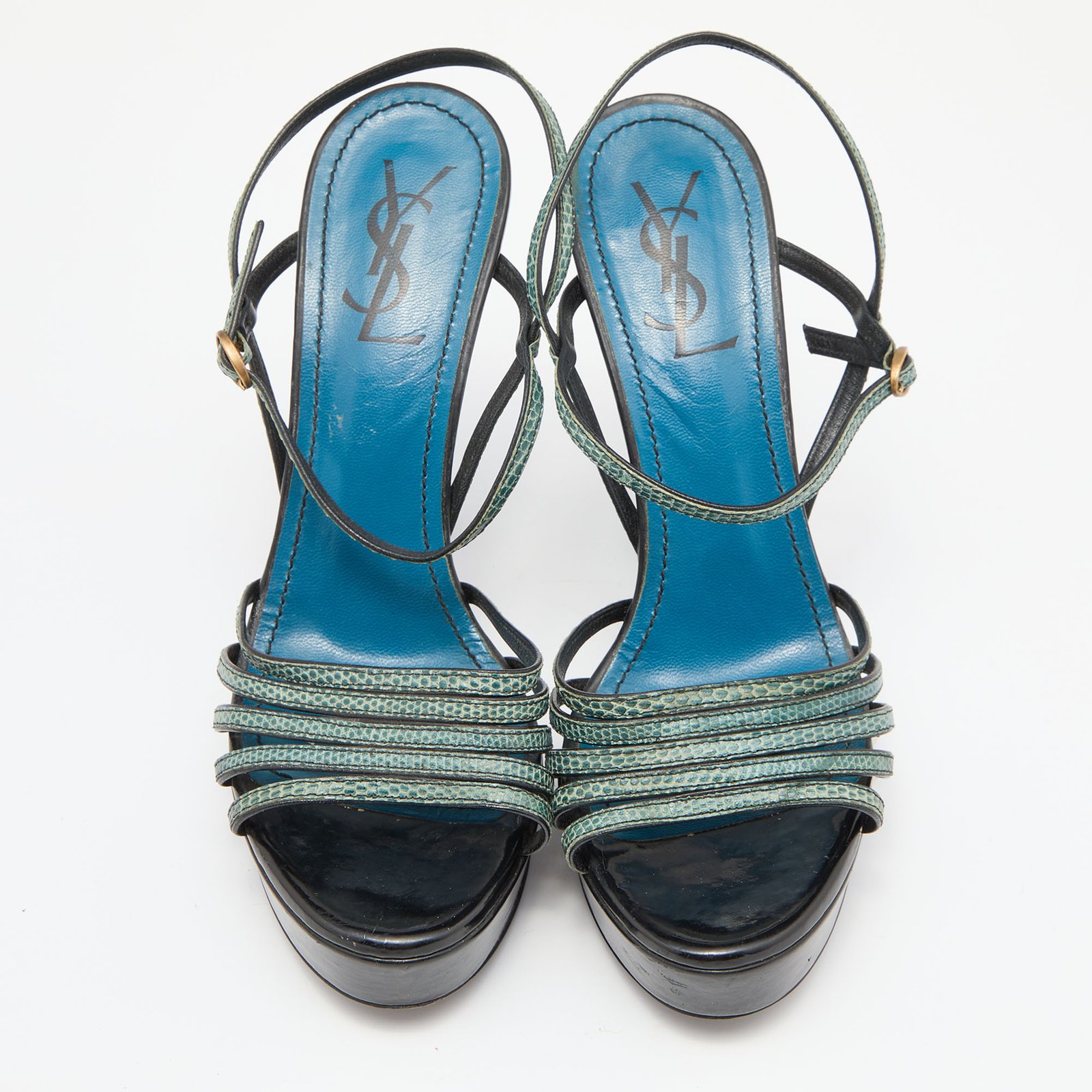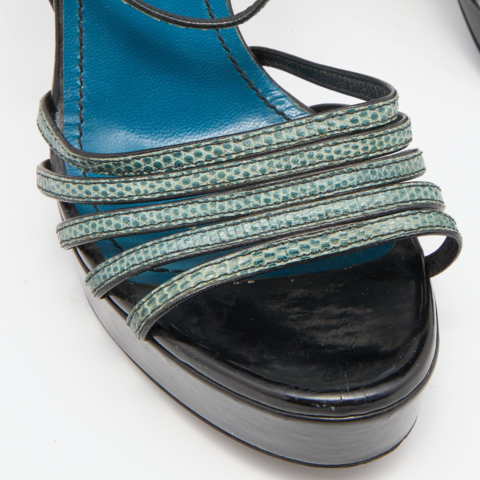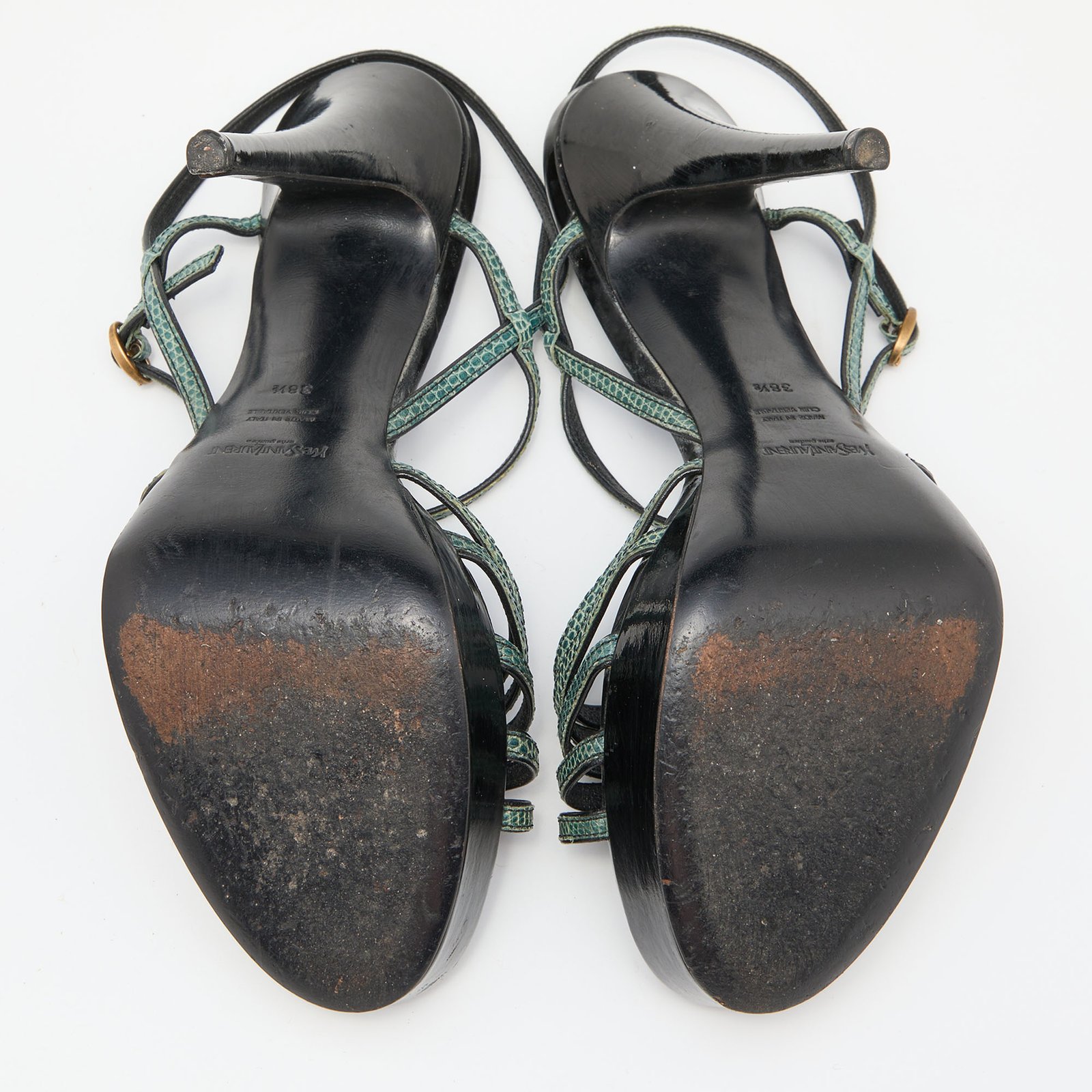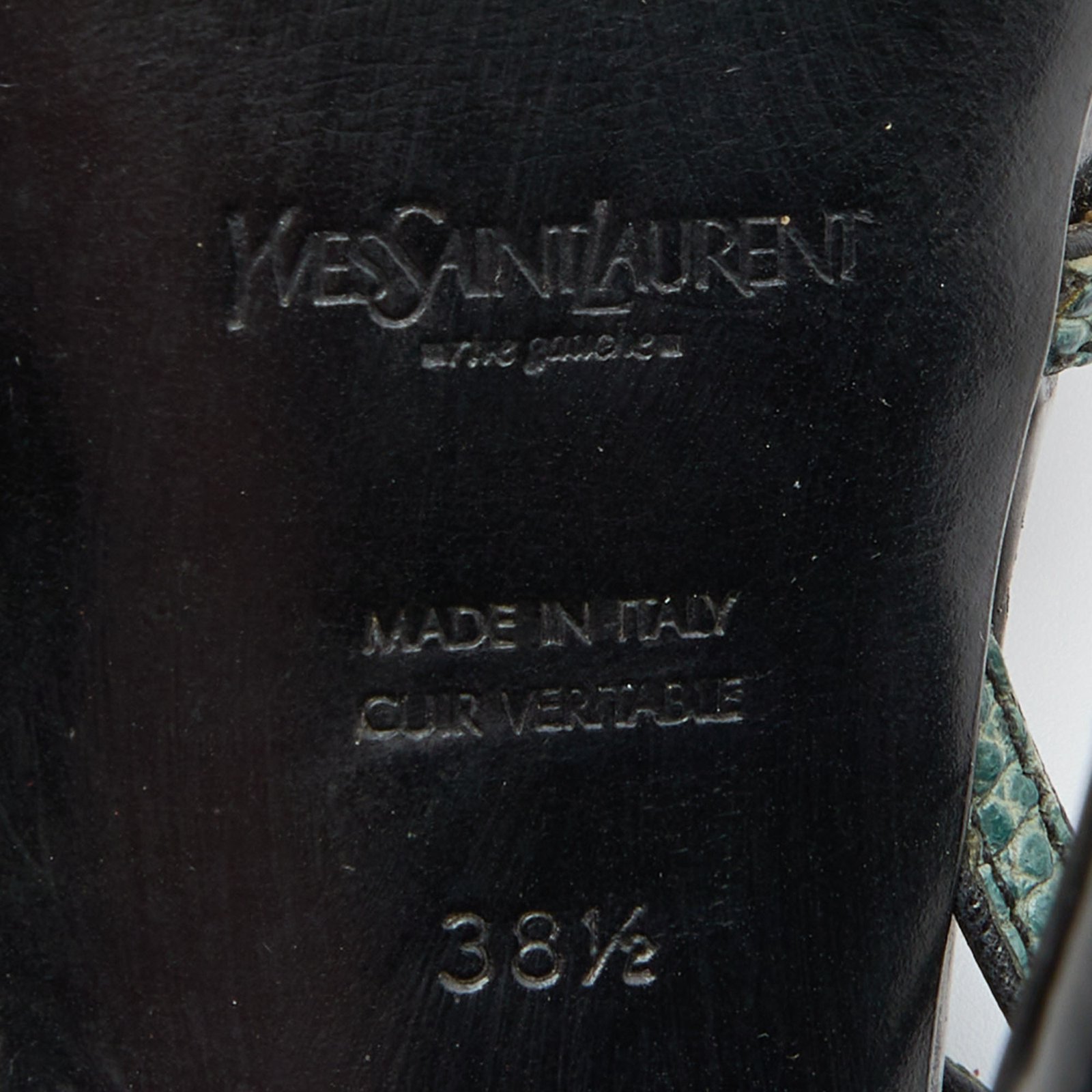 Yves Saint Laurent Green/Black Lizard Strappy Platform Sandals Size 38.5