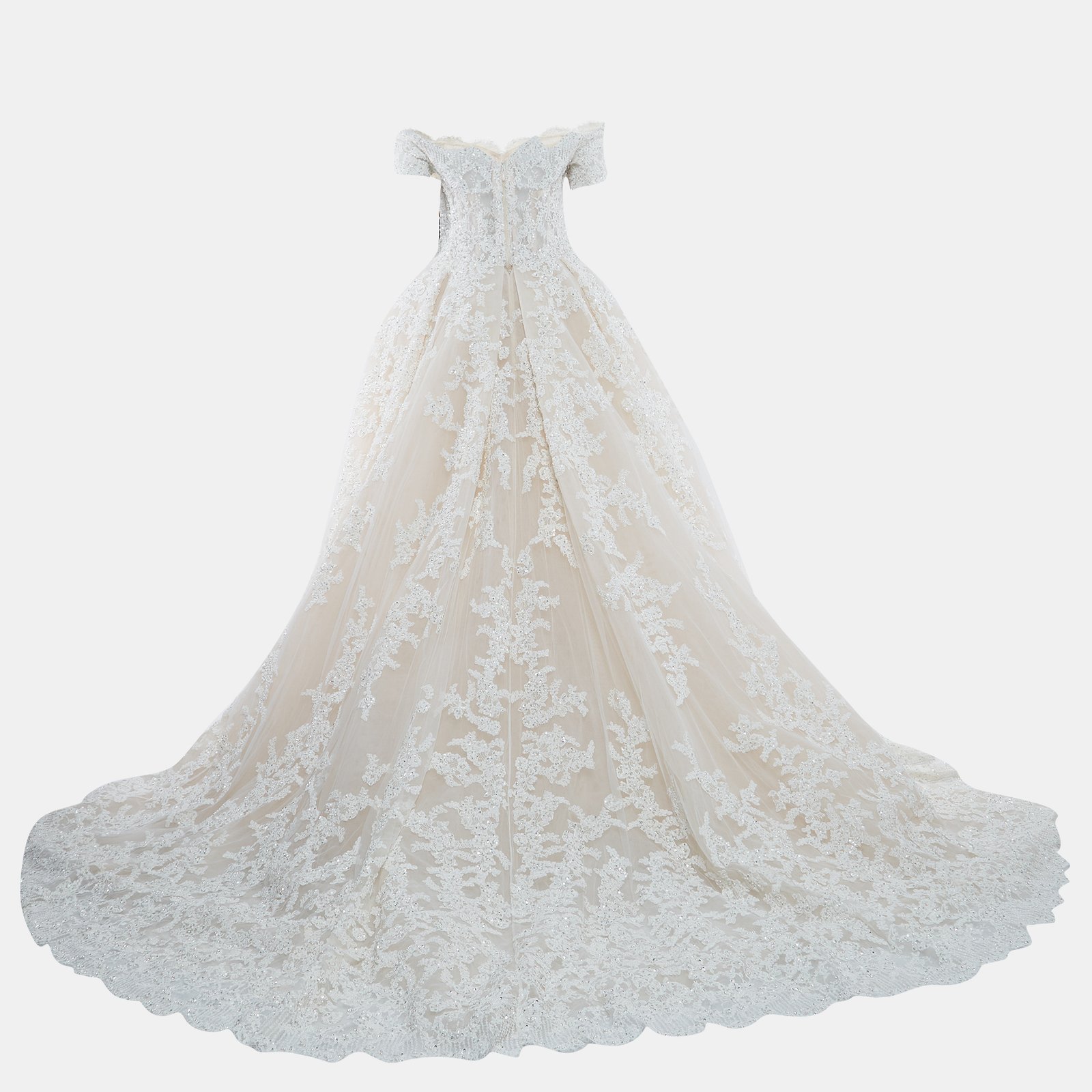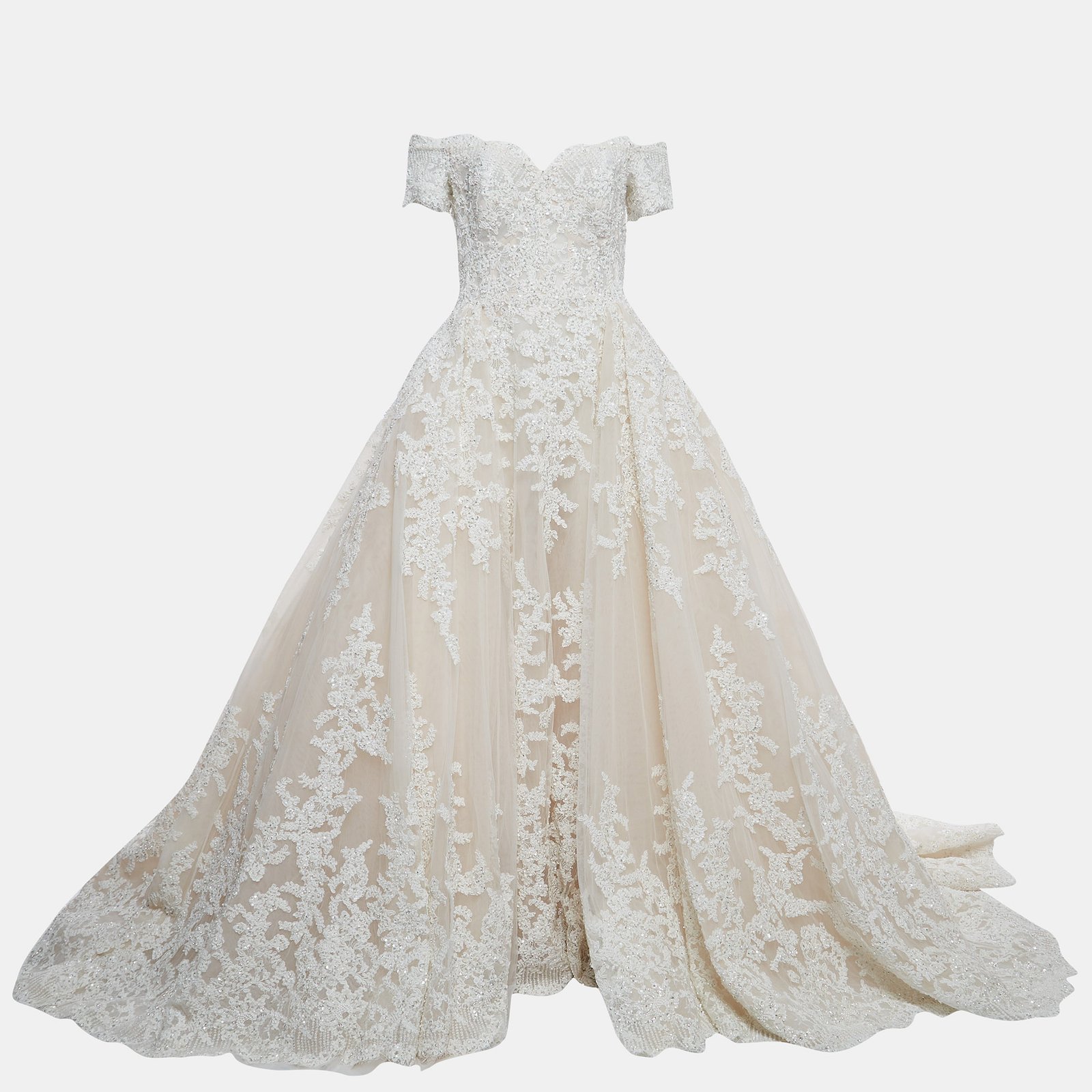 Zuhair Murad White Embroidered Tulle Wedding Gown M