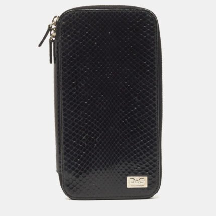 Dolce & Gabbana Black Watersnake Leather Zip Around Organizer