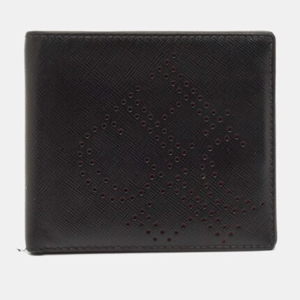 CH Carolina Herrera Black Leather Perforated Logo Bifold Wallet