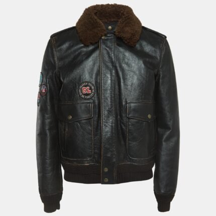 Saint Laurent Paris Brown Applique Detail Leather Jacket XL