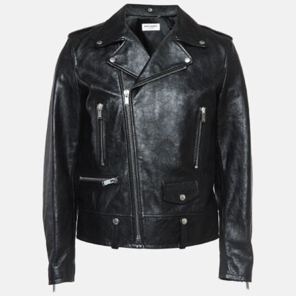 Saint Laurent Paris Black Leather Zipper Detail Biker Jacket XL