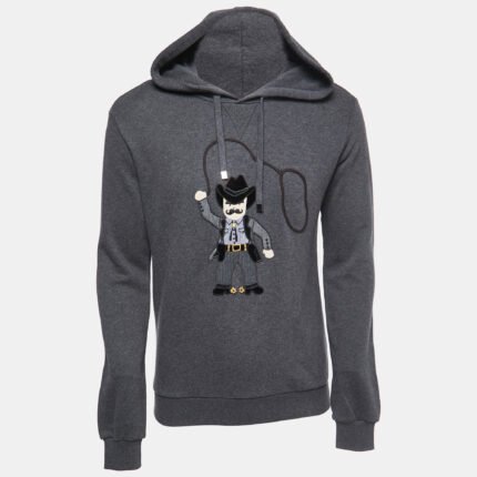 Dolce & Gabbana Grey Cowboy Patch Cotton Hoodie XS