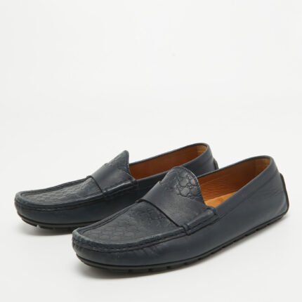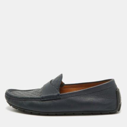 Gucci Navy Blue Guccissima Leather Slip On Loafers Size 40.5