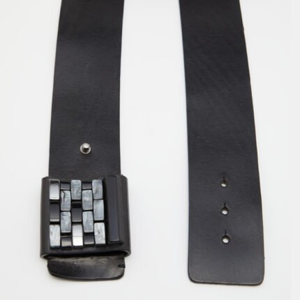 Emporio Armani Black Leather Brick Buckle Wide Belt