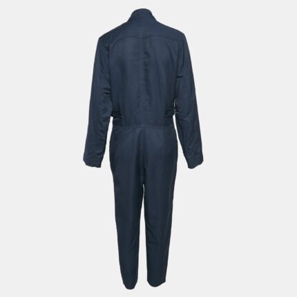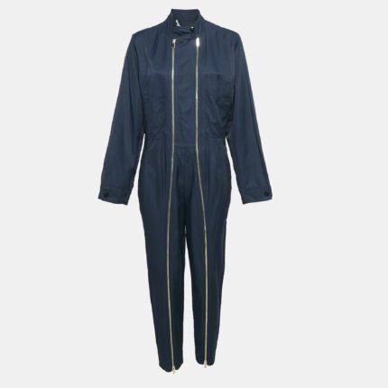 Stella McCartney Navy Blue Cotton Blend Zip Detailed Cargo Jumpsuit S