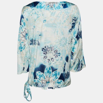 Class by Roberto Cavalli Blue Printed jersey Waist Tie Detail Top L